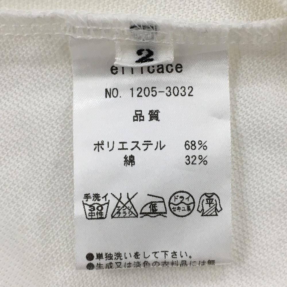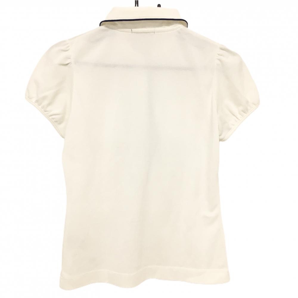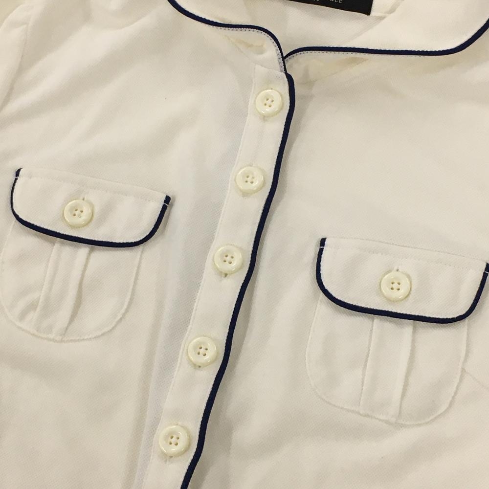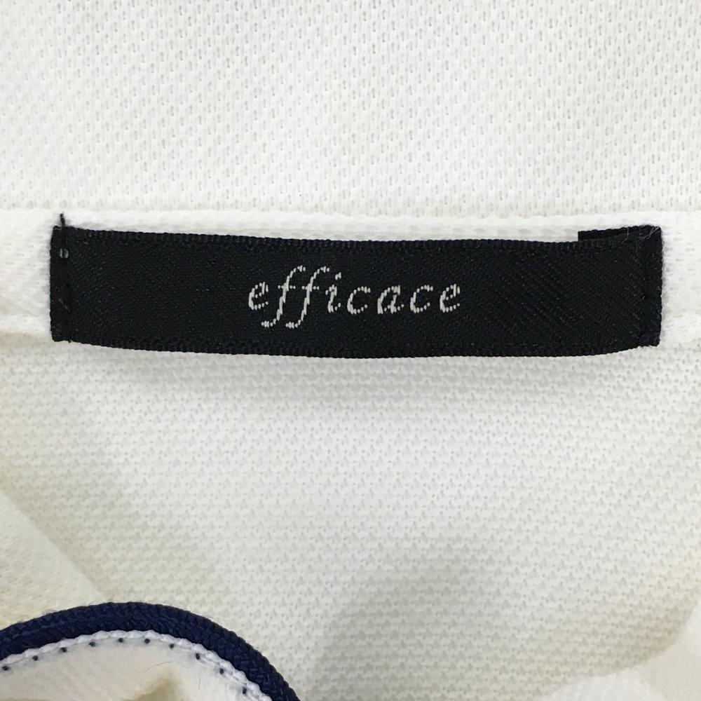 【超美品】エフィカス 半袖ポロシャツ 白 パイピングネイビー 胸ポケット レディース 2(M) ゴルフウェア efficace