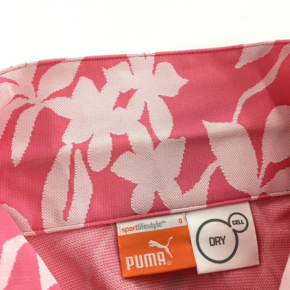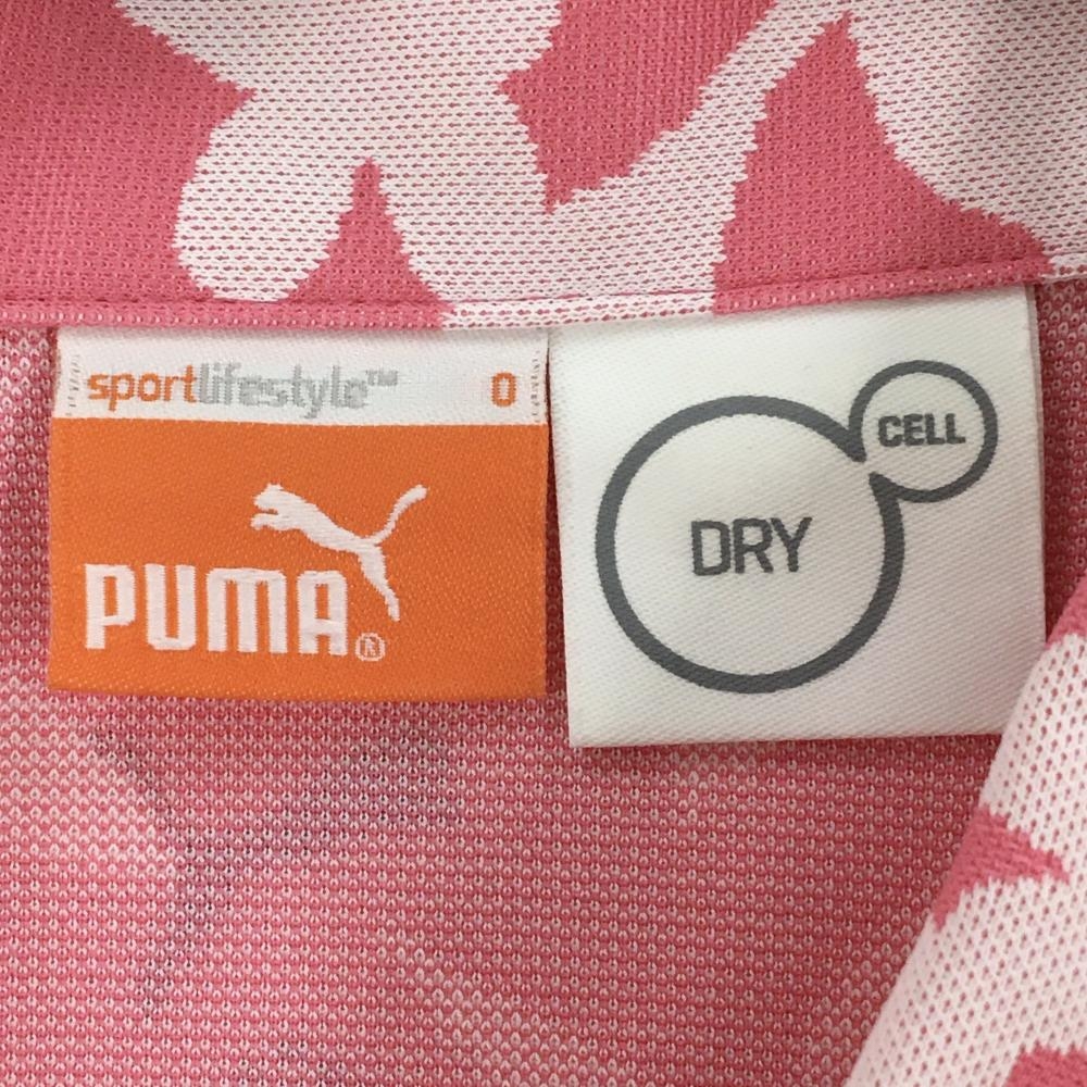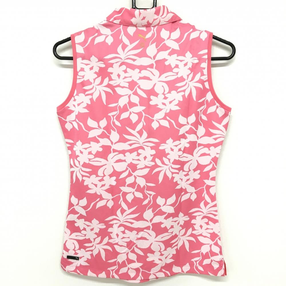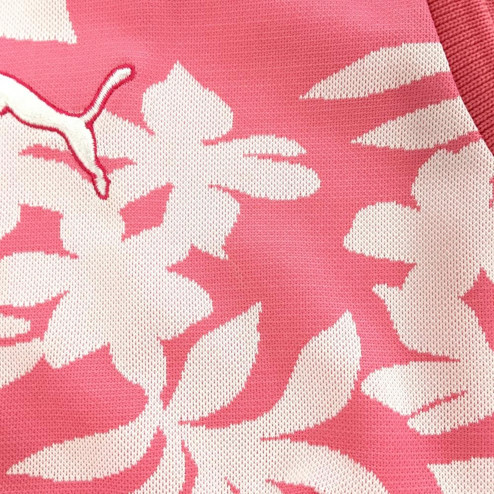 プーマ ノースリーブポロシャツ ピンク×白 総柄 ロゴ刺しゅう レディース O ゴルフウェア PUMA