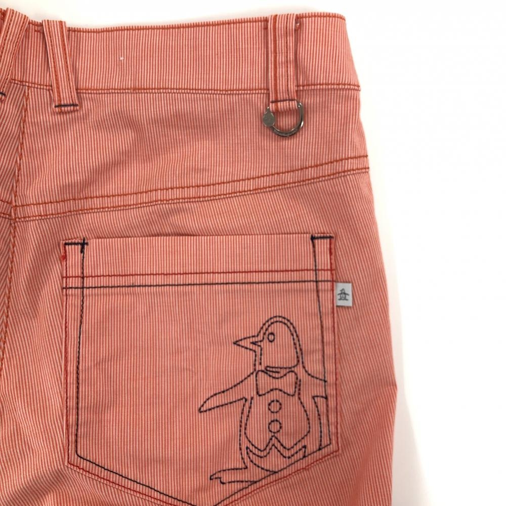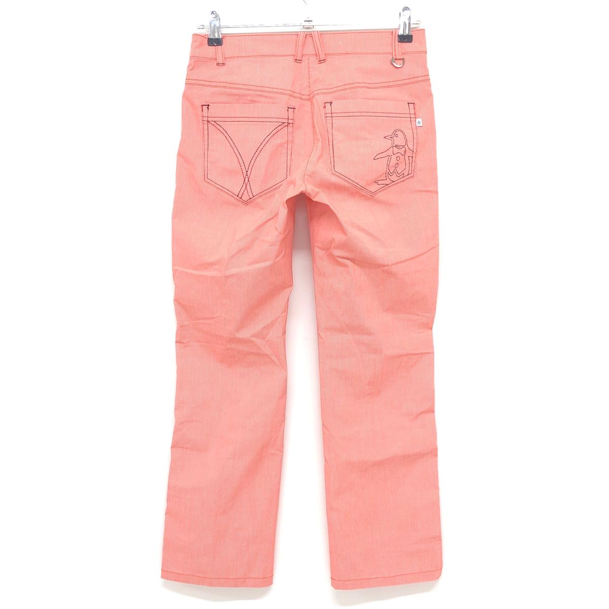 マンシングウェア パンツ オレンジ×白 細ストライプ ストレッチ レディース 9 ゴルフウェア Munsingwear
