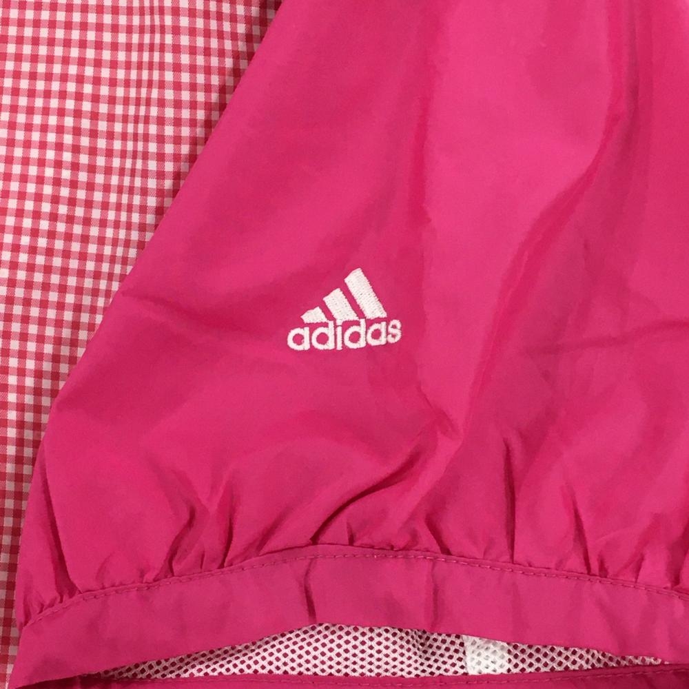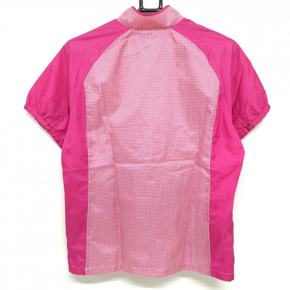 【超美品】アディダス 半袖ブルゾン ピンク×白 チェック柄 裏地メッシュ 袖口ボタン レディース OT/XG ゴルフウェア adidas