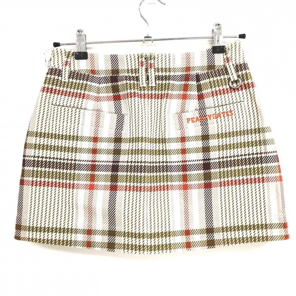 【超美品】パーリーゲイツ スカート カーキ×オレンジ チェック レディース 0(S) ゴルフウェア PEARLY GATES