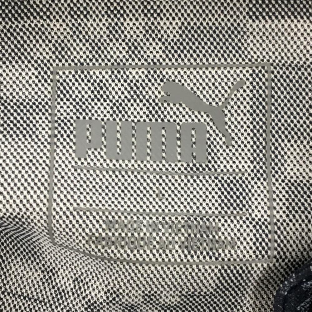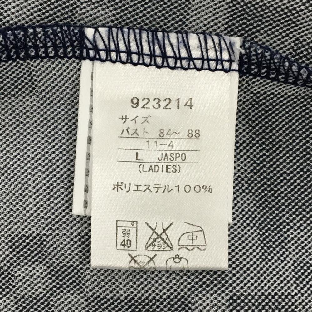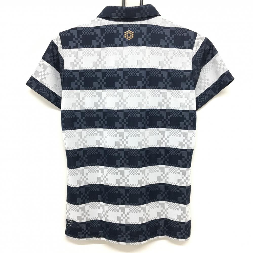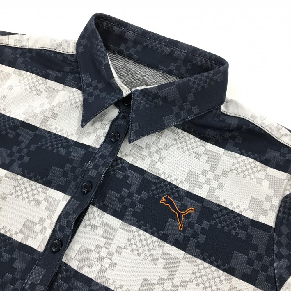 【超美品】プーマ 半袖ポロシャツ ネイビー×ライトグレー ボーダー 総柄地模様 ロゴ刺しゅう レディース L ゴルフウェア PUMA