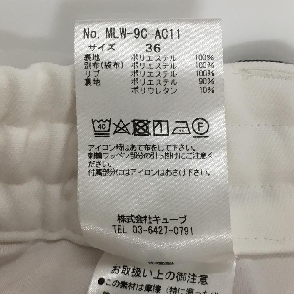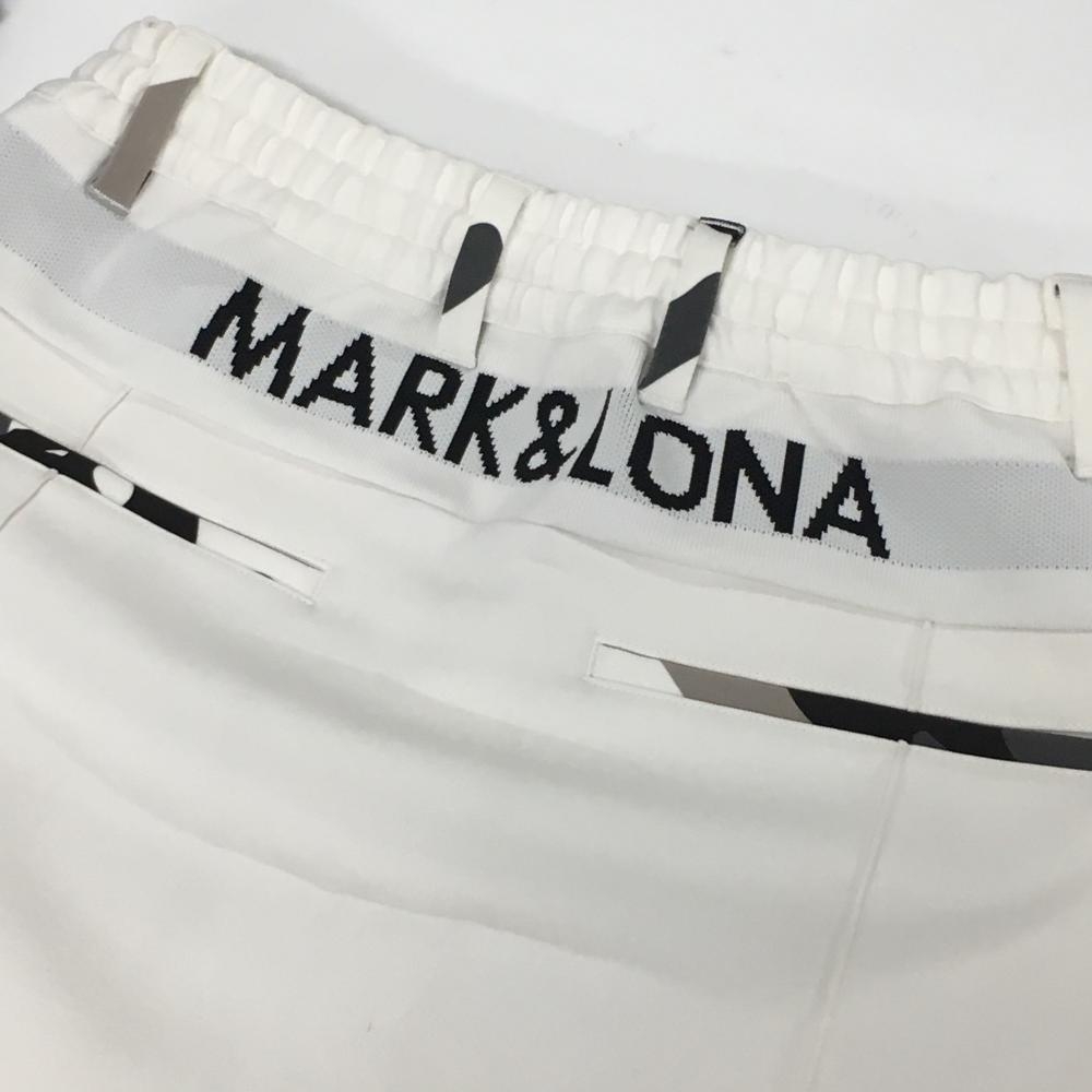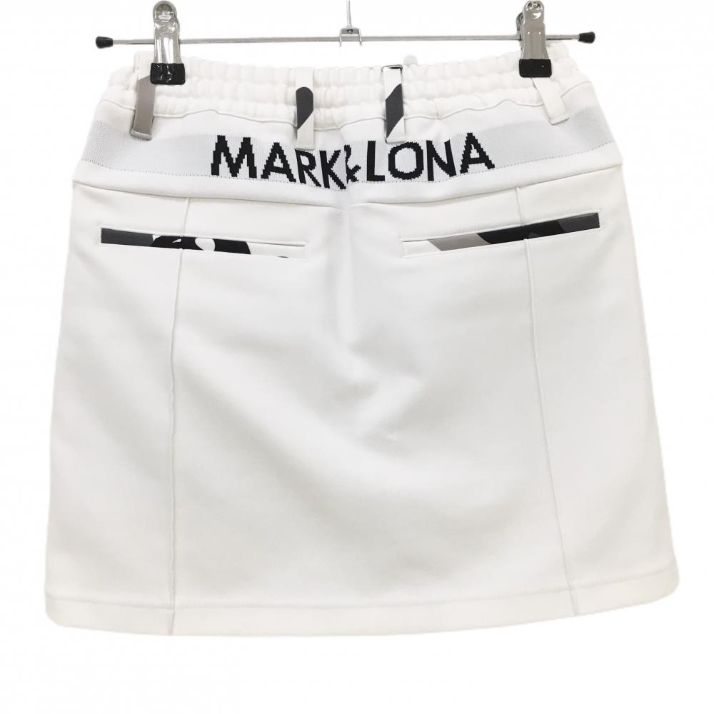 【美品】マークアンドロナ スカート 白 ベルトループ柄 ストレッチ ウエストゴム レディース 36(S) ゴルフウェア MARK&LONA