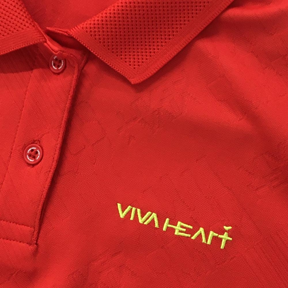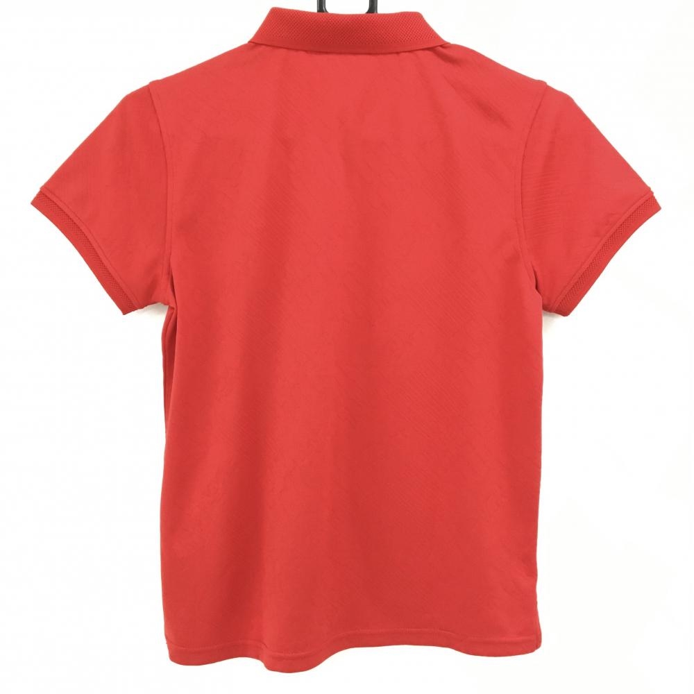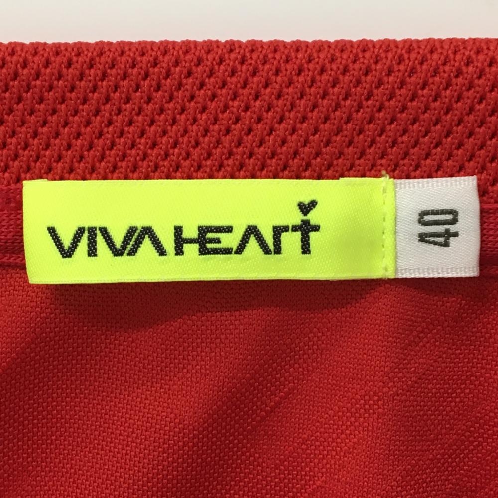 【超美品】ビバハート 半袖ポロシャツ レッド ロゴイエロー ロゴ地模様 襟メッシュ レディース 40(M) ゴルフウェア VIVA HEART