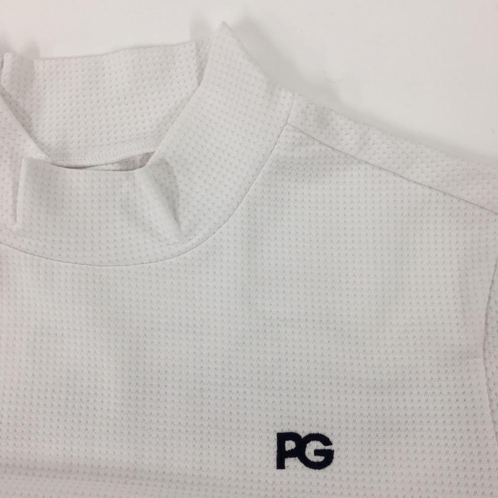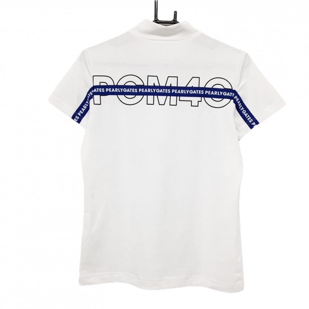 【超美品】パーリーゲイツ 半袖ハイネックシャツ 白 織生地 背面ロゴ レディース 2(L) ゴルフウェア PEARLY GATES