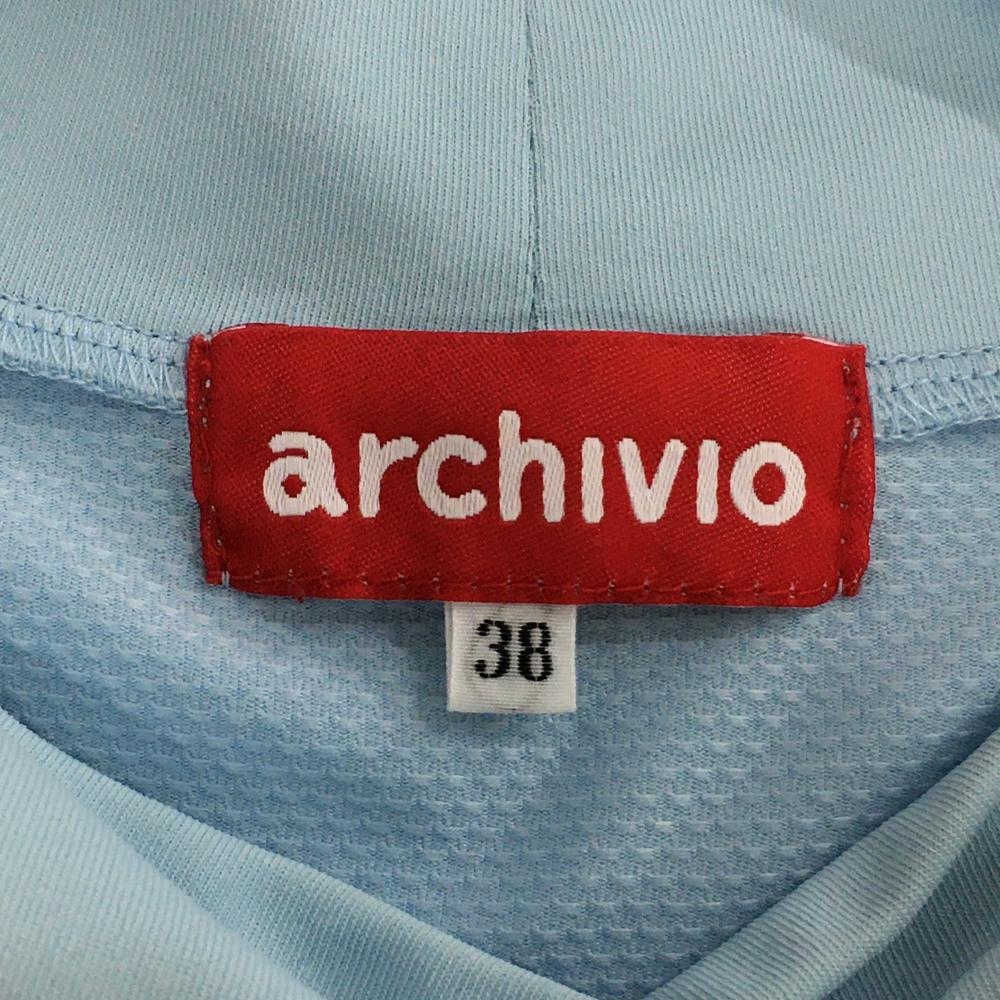 アルチビオ 長袖ハイネックシャツ ライトブルー×白 ロゴシルバー レディース 38(M) ゴルフウェア archivio