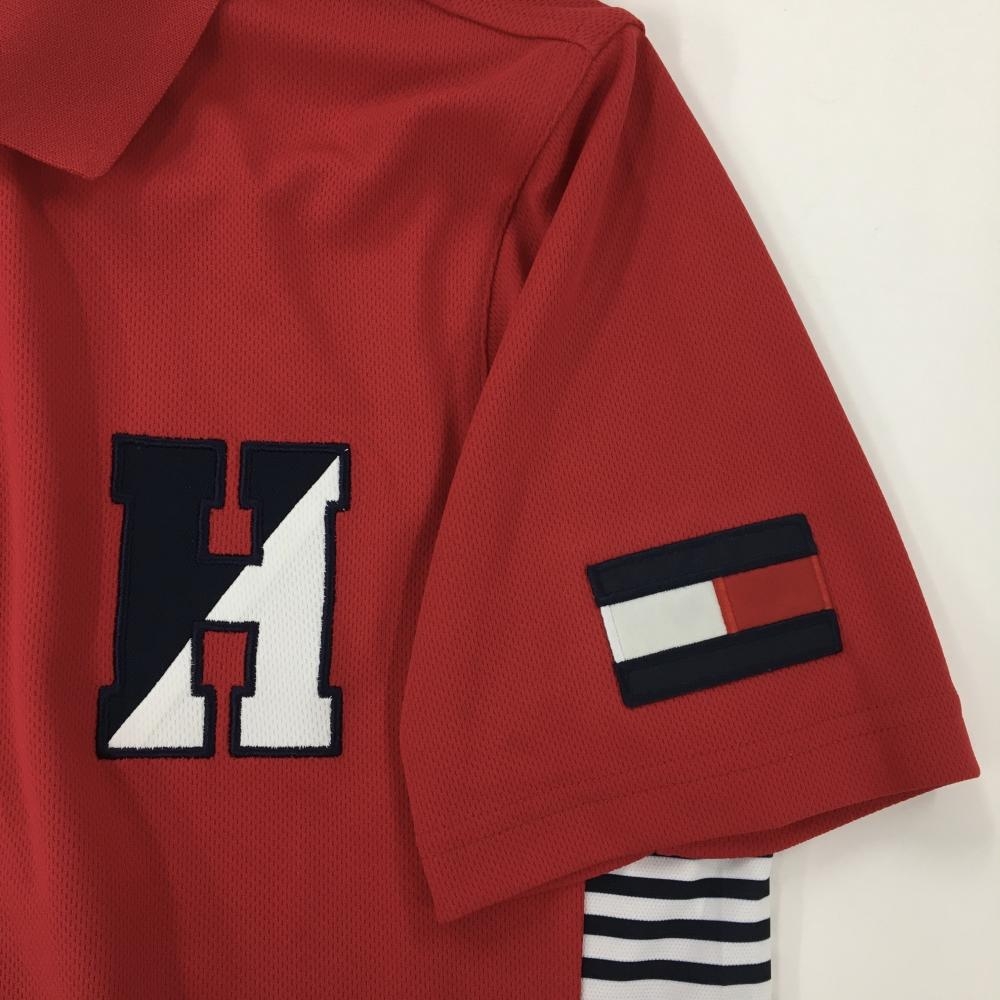 【超美品】トミーヒルフィガーゴルフ 半袖ポロシャツ レッド×ネイビー サイドボーダー メンズ M ゴルフウェア Tommy Hilfiger Golf