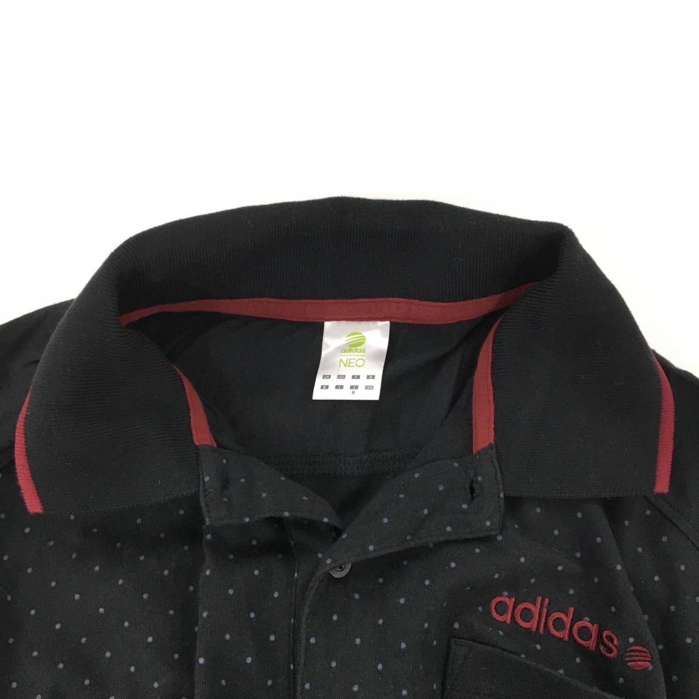 アディダス 半袖ポロシャツ 黒×グレー ドット 胸ポケット メンズ M ゴルフウェア adidas