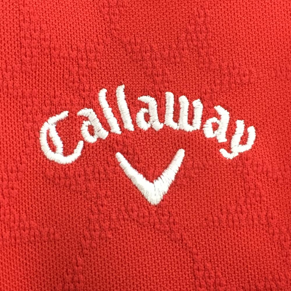 【美品】キャロウェイ 半袖ハイネックシャツ レッド 星総柄地模様 レディース M ゴルフウェア Callaway