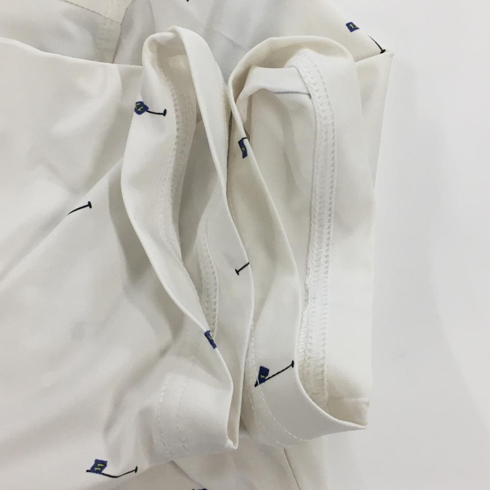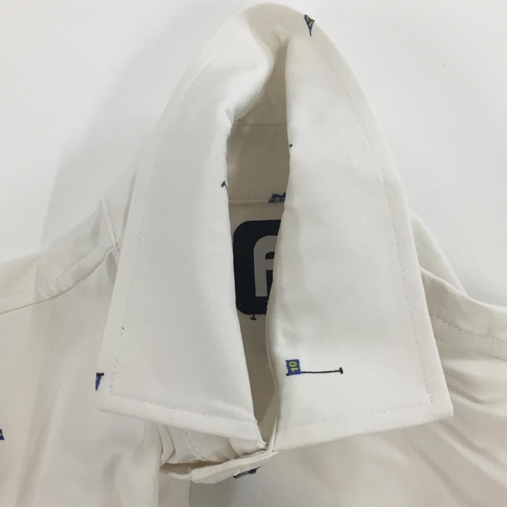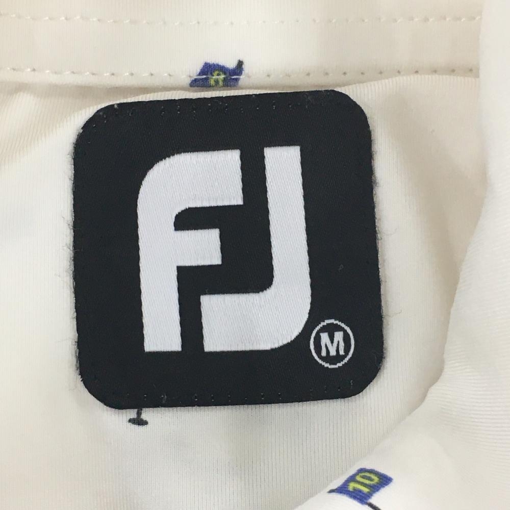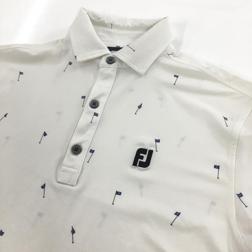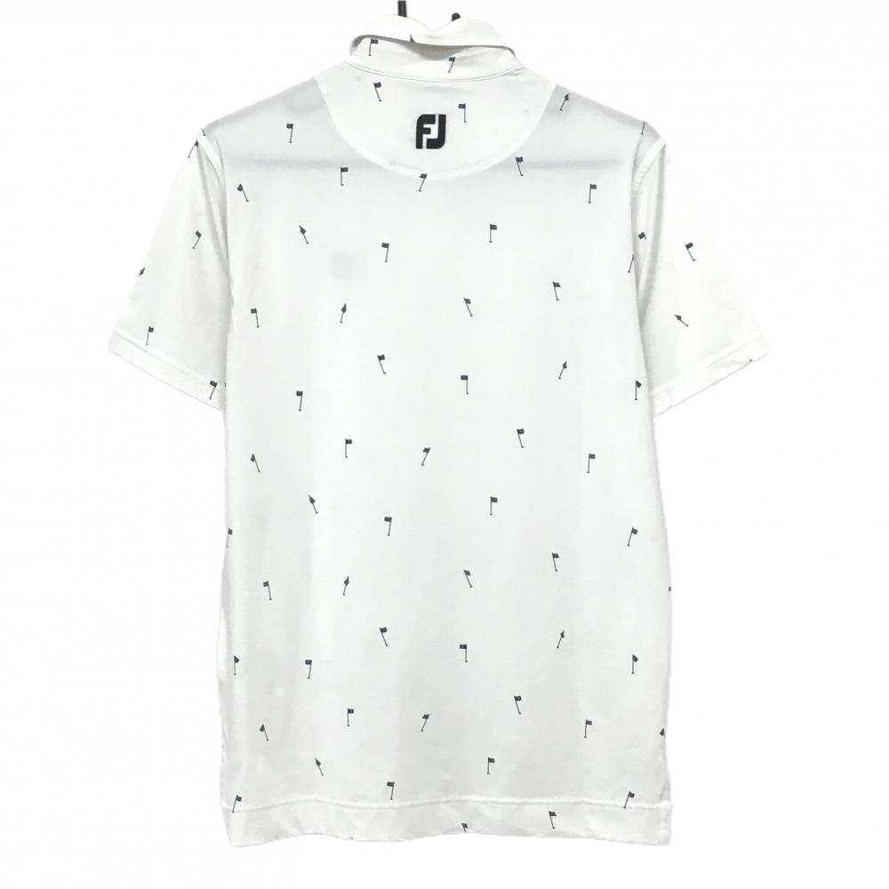 フットジョイ 半袖ポロシャツ 白×黒 総柄 ピンフラッグ ロゴ刺しゅう メンズ M ゴルフウェア FootJoy