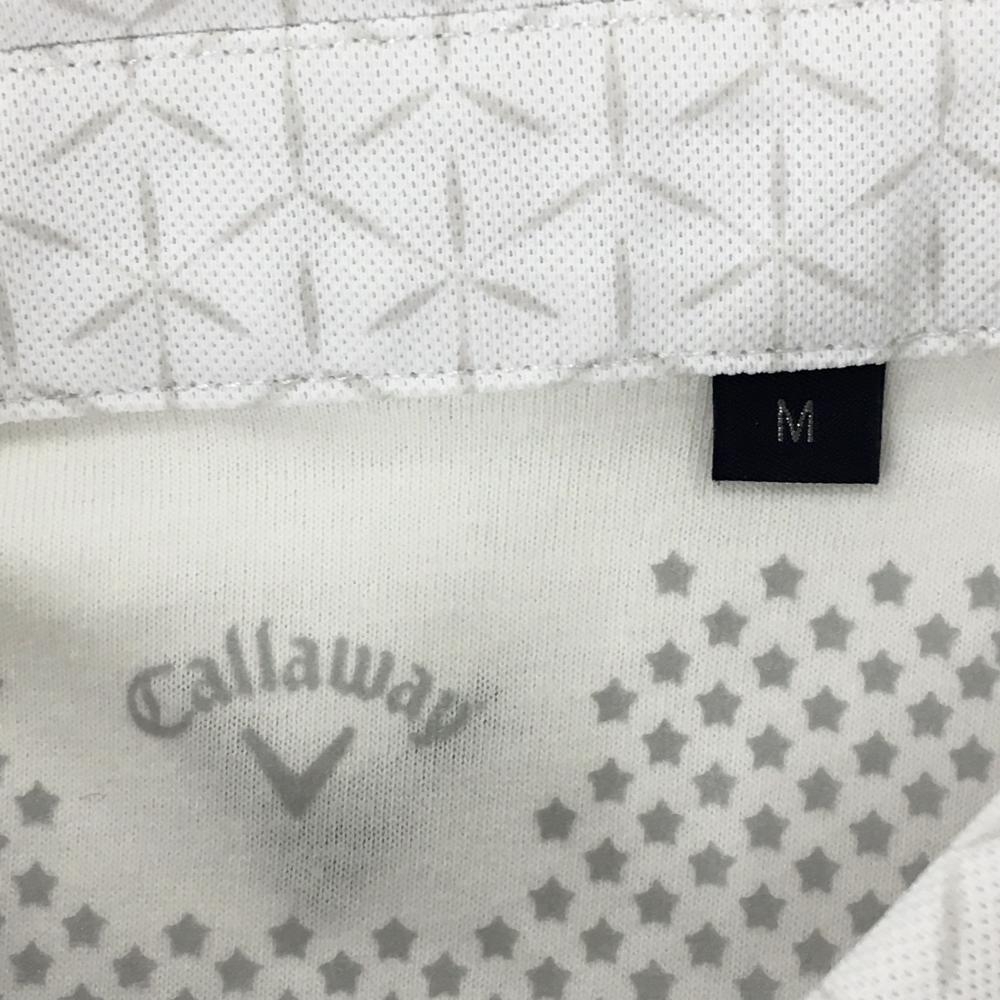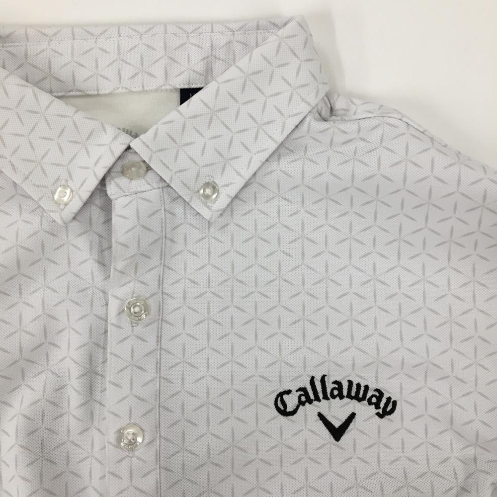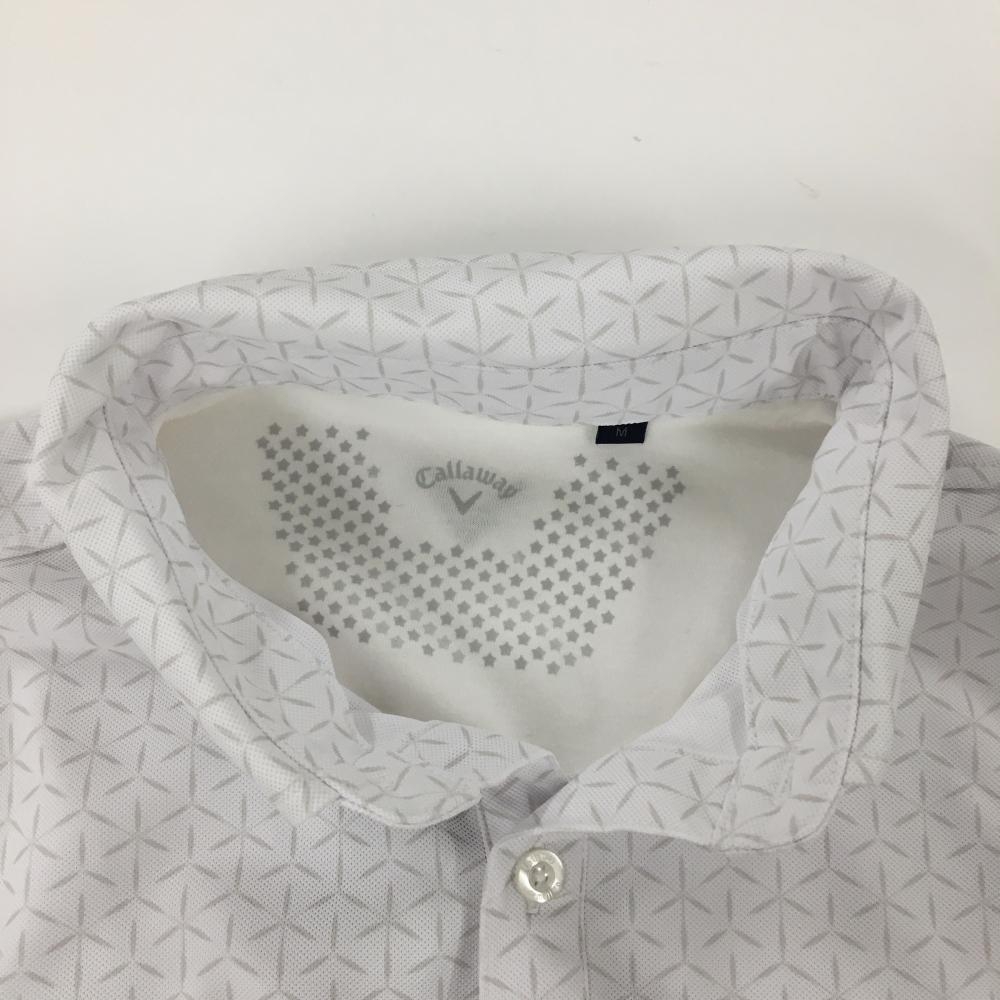 【美品】キャロウェイ 半袖ポロシャツ 白×グレー 星柄風 ボタンダウン メンズ M ゴルフウェア Callaway