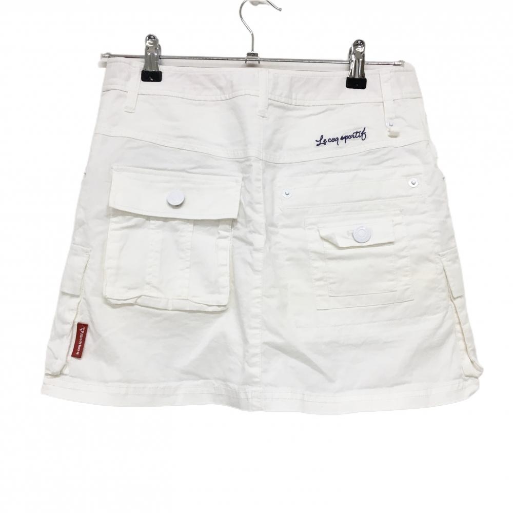 【美品】ルコックゴルフ カーゴスカート 白 ロゴピンク 内側インナーパンツ レディース 9 ゴルフウェア le coq sportif