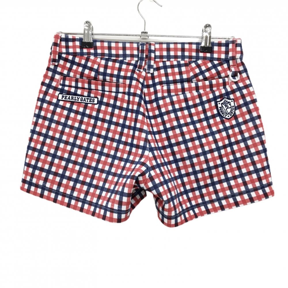 【美品】パーリーゲイツ ショートパンツ レッド×ネイビー×白 チェック レディース 0(S) ゴルフウェア PEARLY GATES
