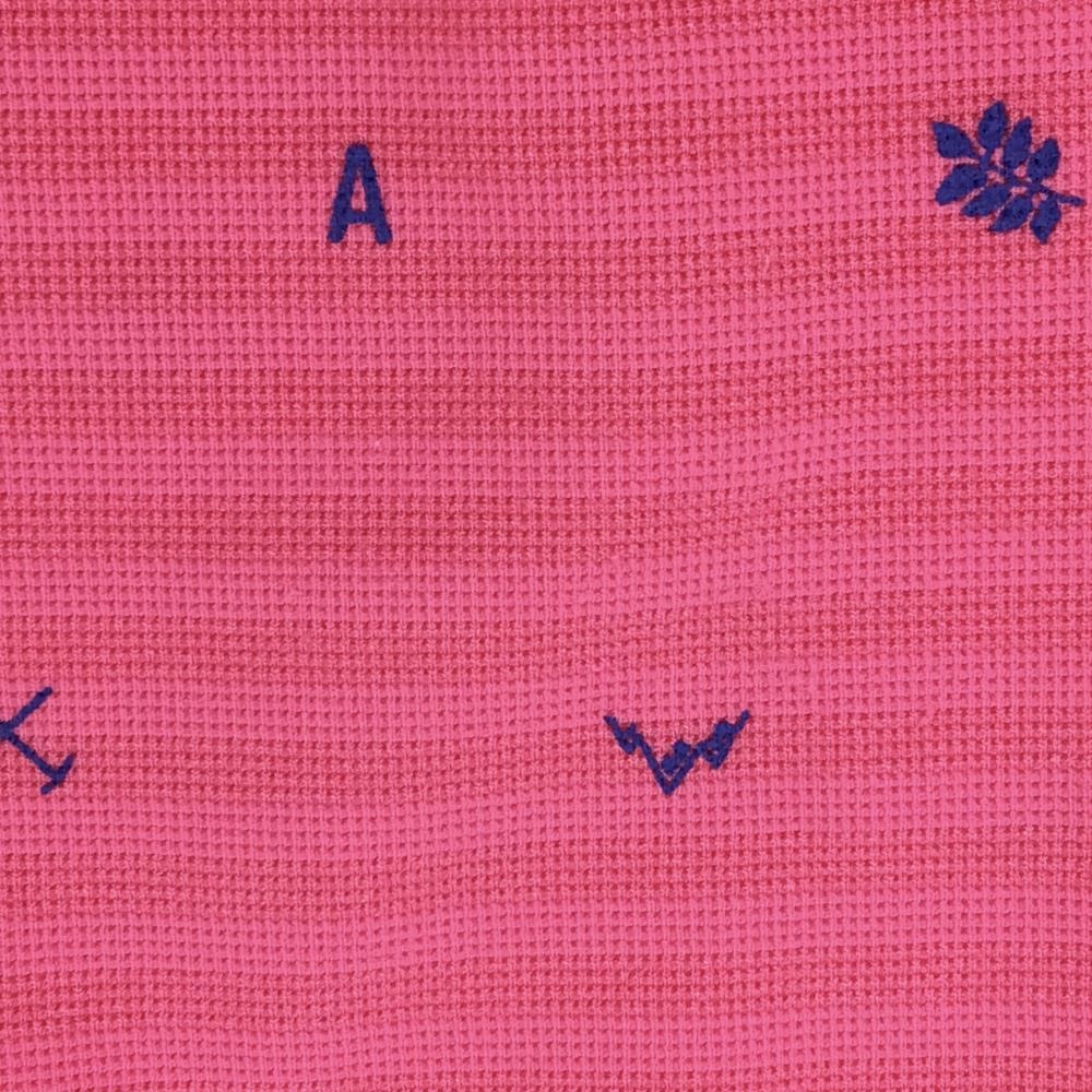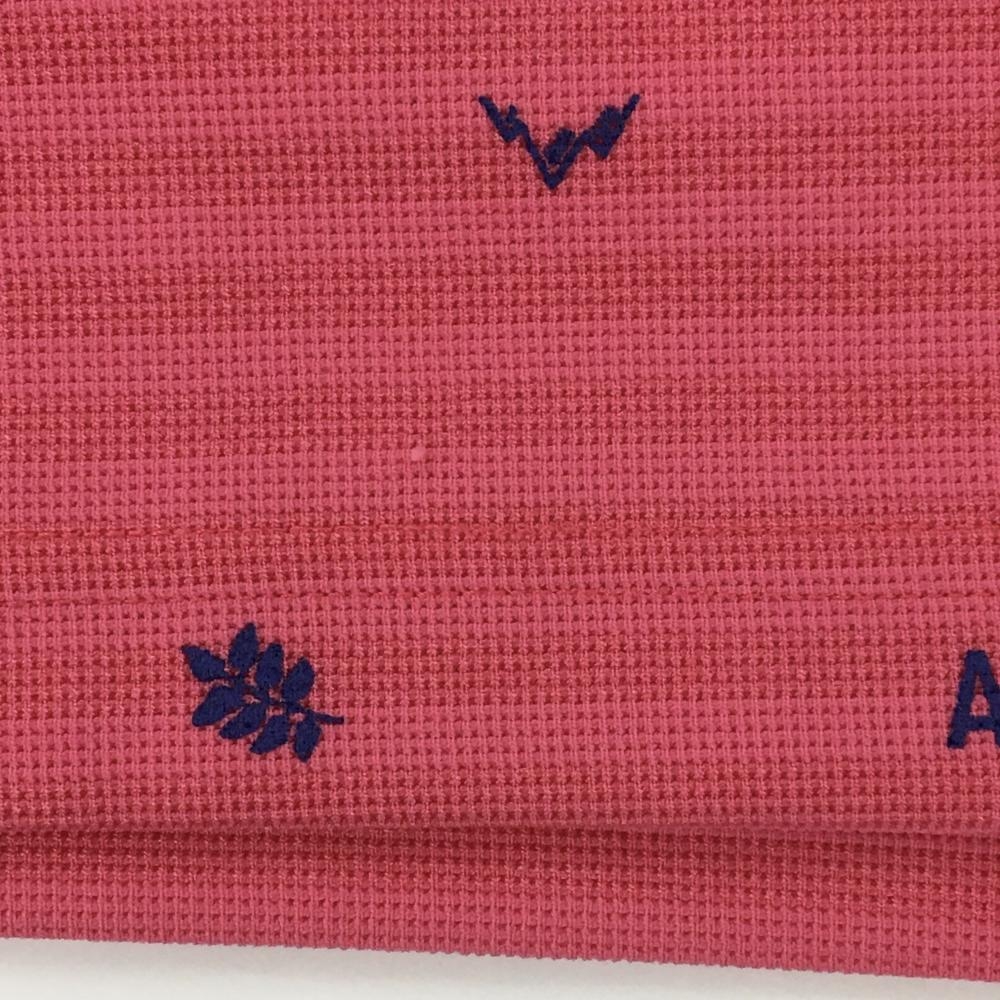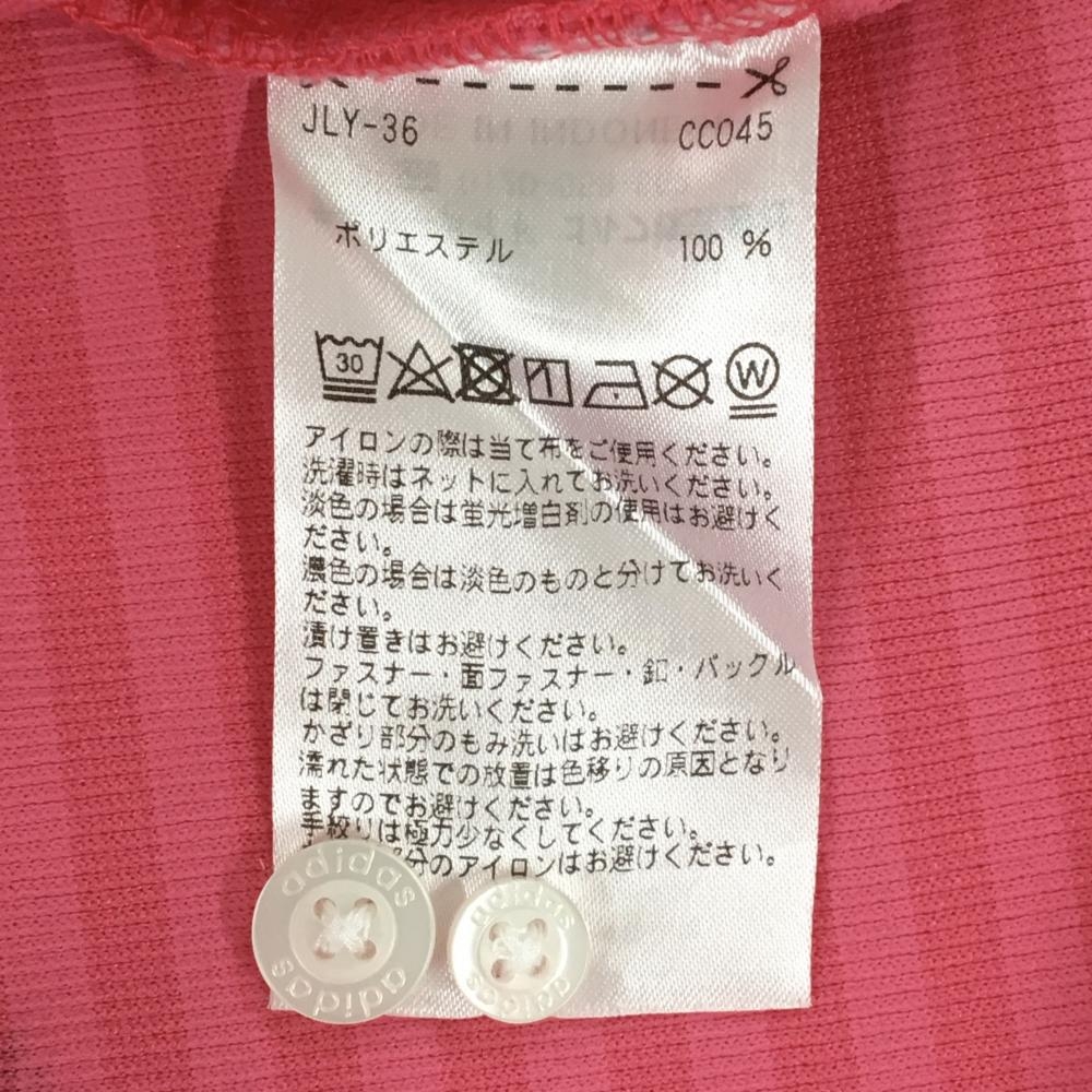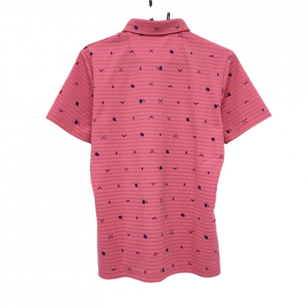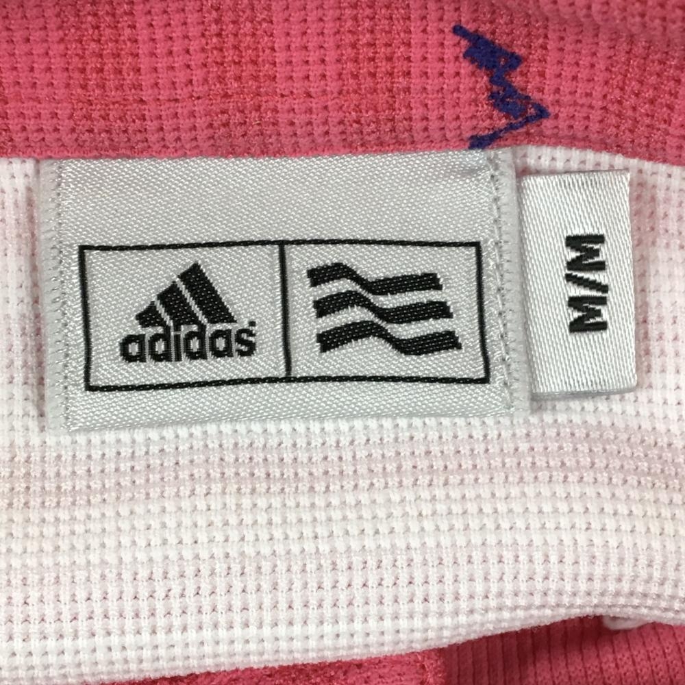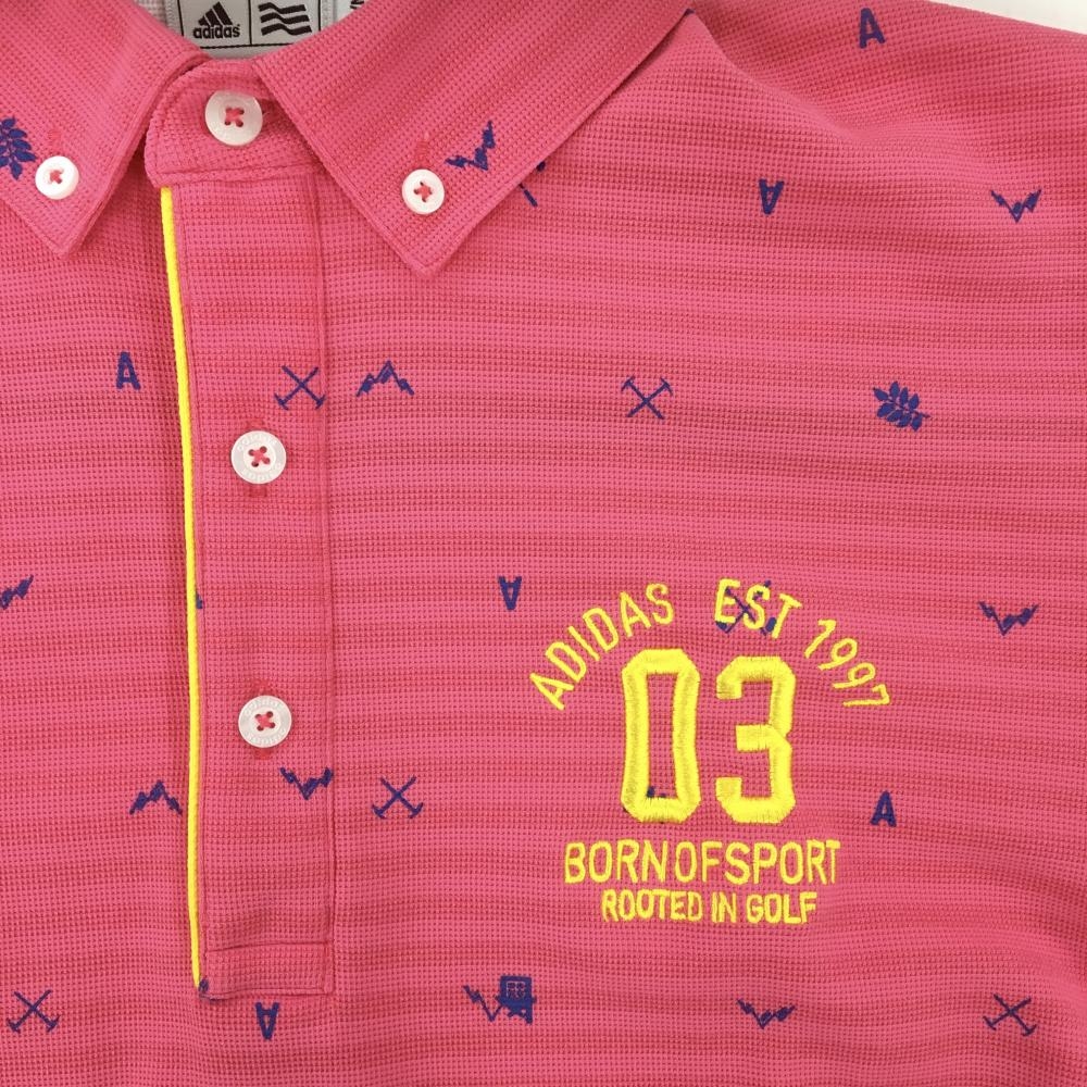 【美品】アディダス 半袖ポロシャツ ピンク×ブルー ボーダー×総柄 ボタンダウン メンズ M/M(M) ゴルフウェア adidas