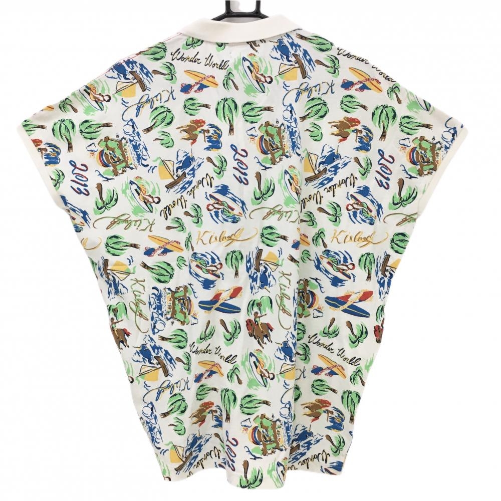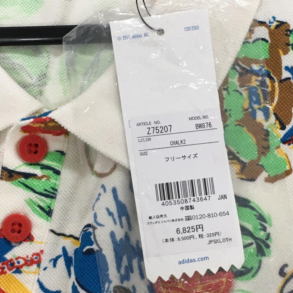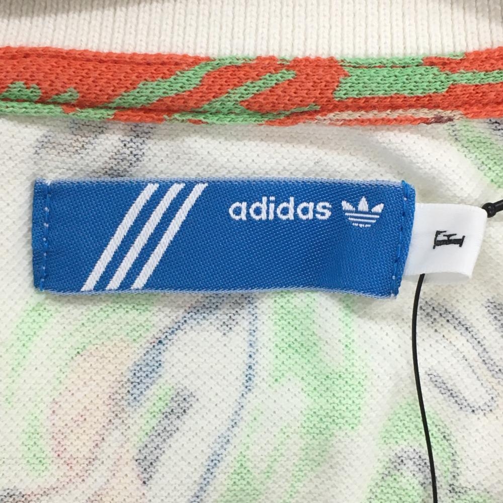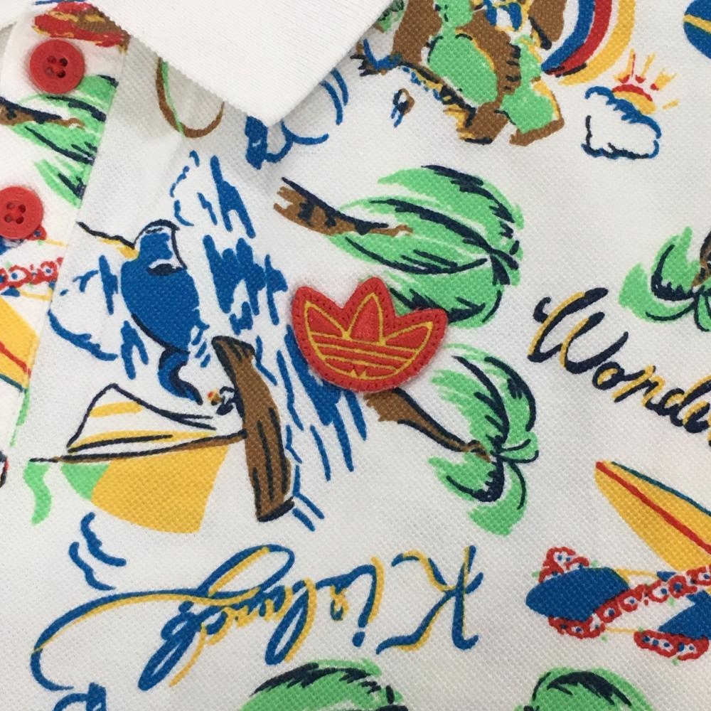 【新品】アディダス 半袖ポロシャツ 白×マルチカラー ヤシの木総柄 メンズ F ゴルフウェア adidas