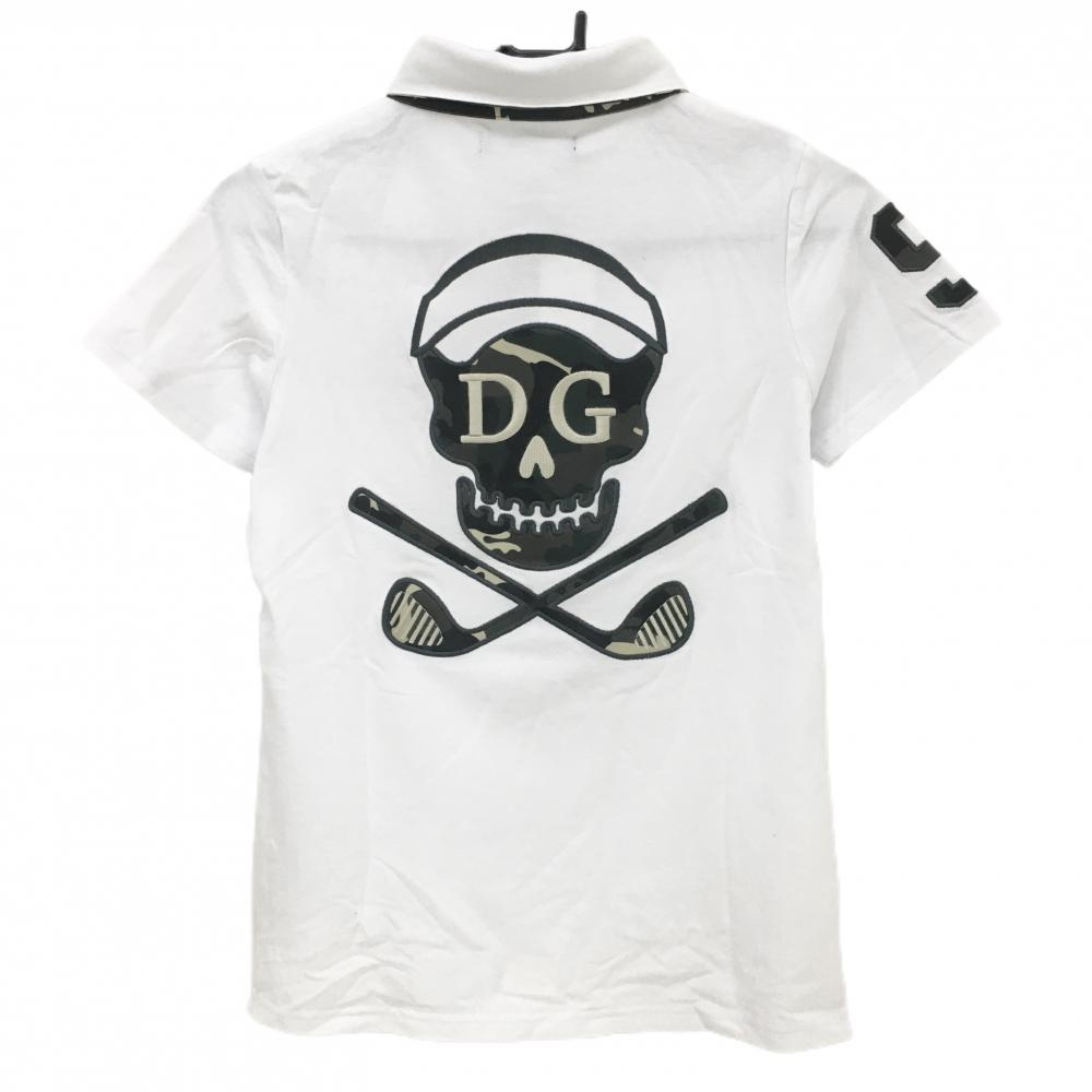 【新品】デルソル 半袖ポロシャツ 白×カーキ 背面ビッグスカル 一部カモフラ柄 迷彩 レディース M ゴルフウェア DELSOL