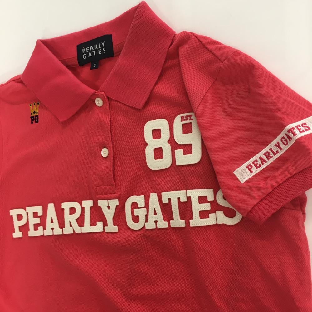 パーリーゲイツ 半袖ポロシャツ レッド フロント・襟裏ロゴ レディース 0(S) ゴルフウェア PEARLY GATES