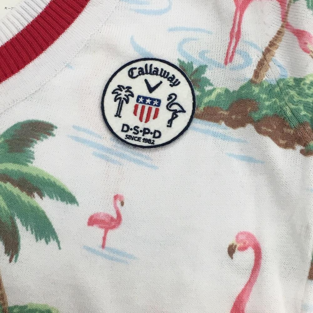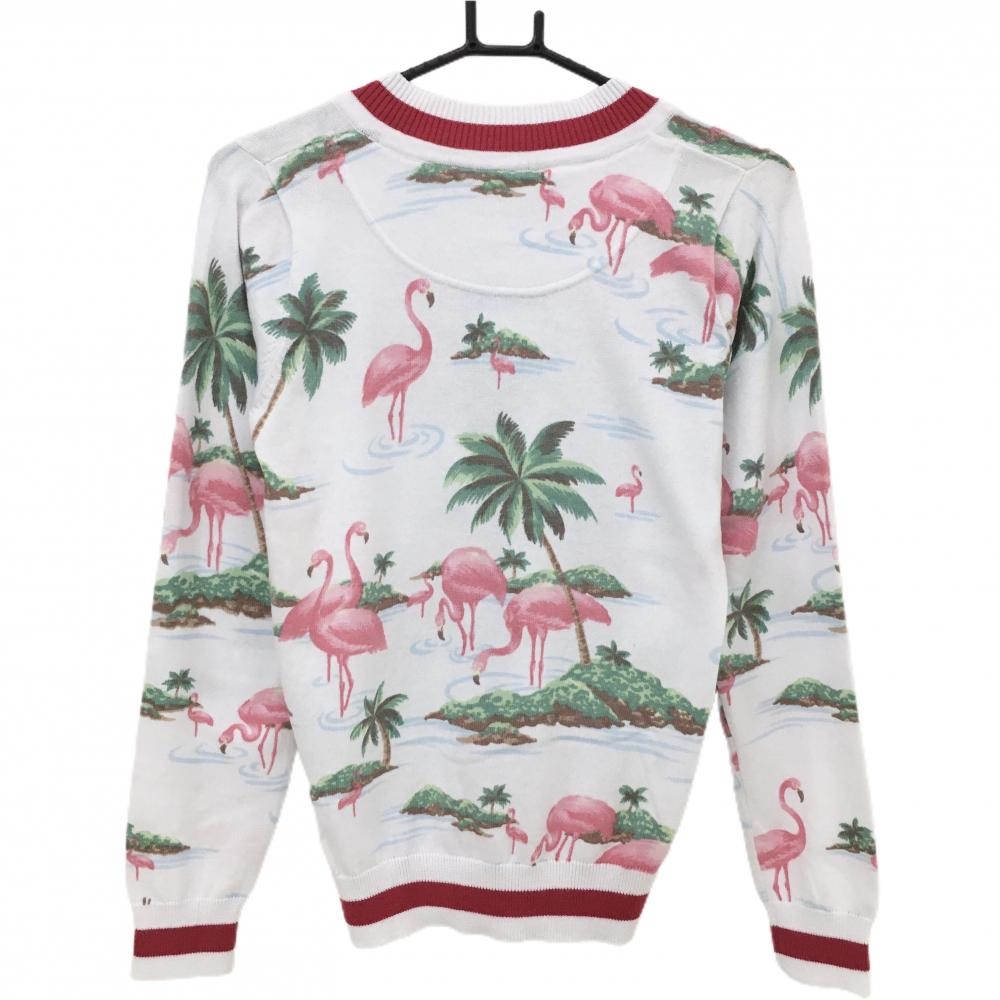 【新品】キャロウェイ セーター 白×ピンク フラミンゴ総柄 コットン混 ニット レディース M ゴルフウェア Callaway