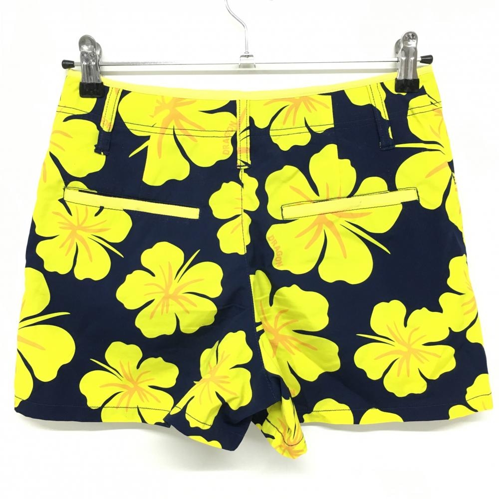 【美品】ダンスウィズドラゴン キュロットスカート ネイビー×イエロー 花柄 レディース 1(S) ゴルフウェア Dance With Dragon