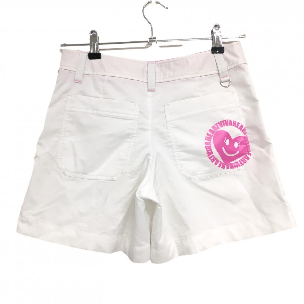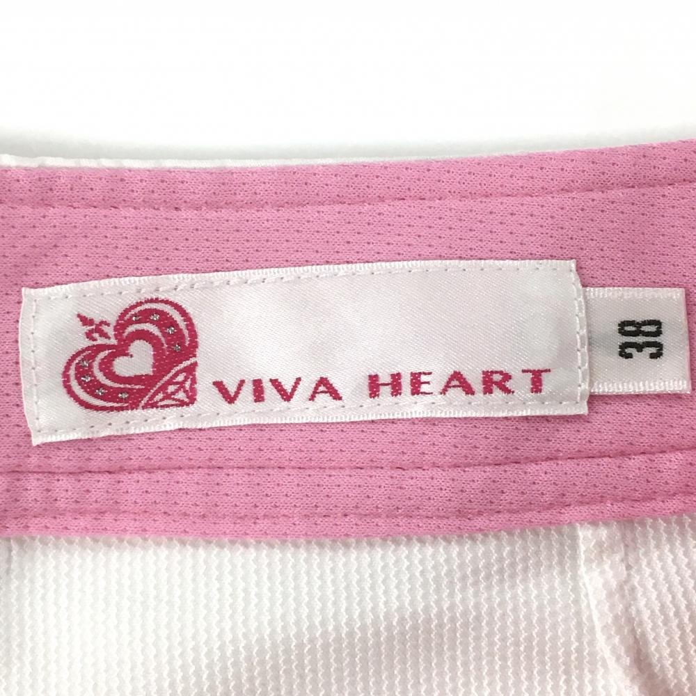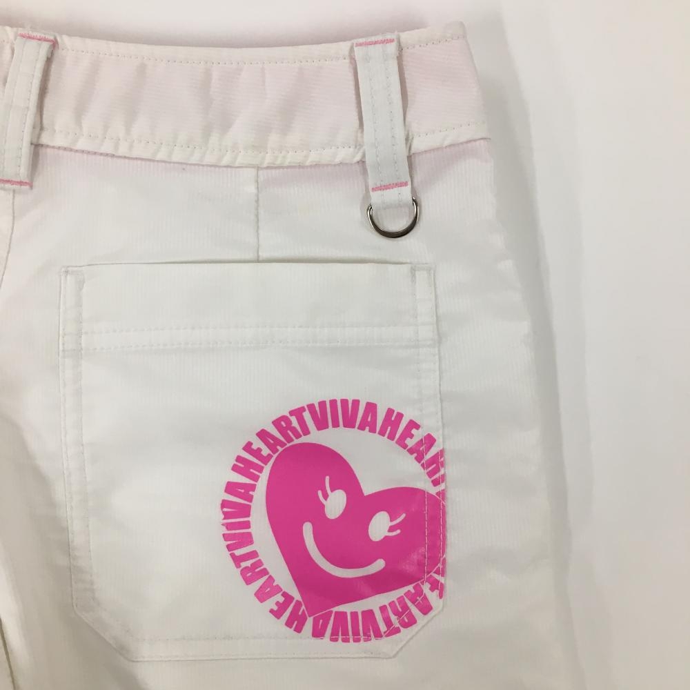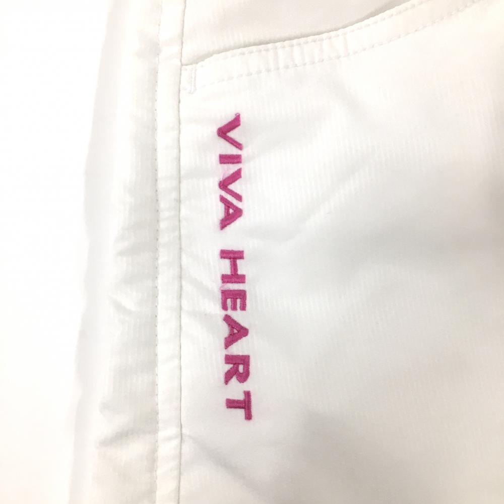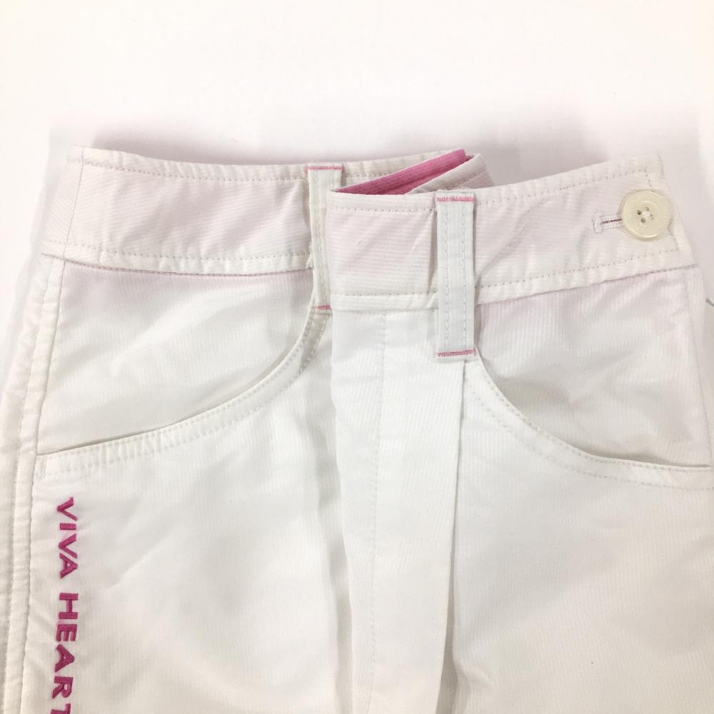 【美品】ビバハート キュロットスカート 白 細ストライプ地模様 ロゴピンク レディース 38(S) ゴルフウェア VIVA HEART