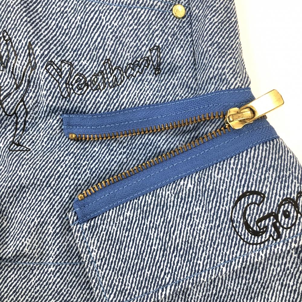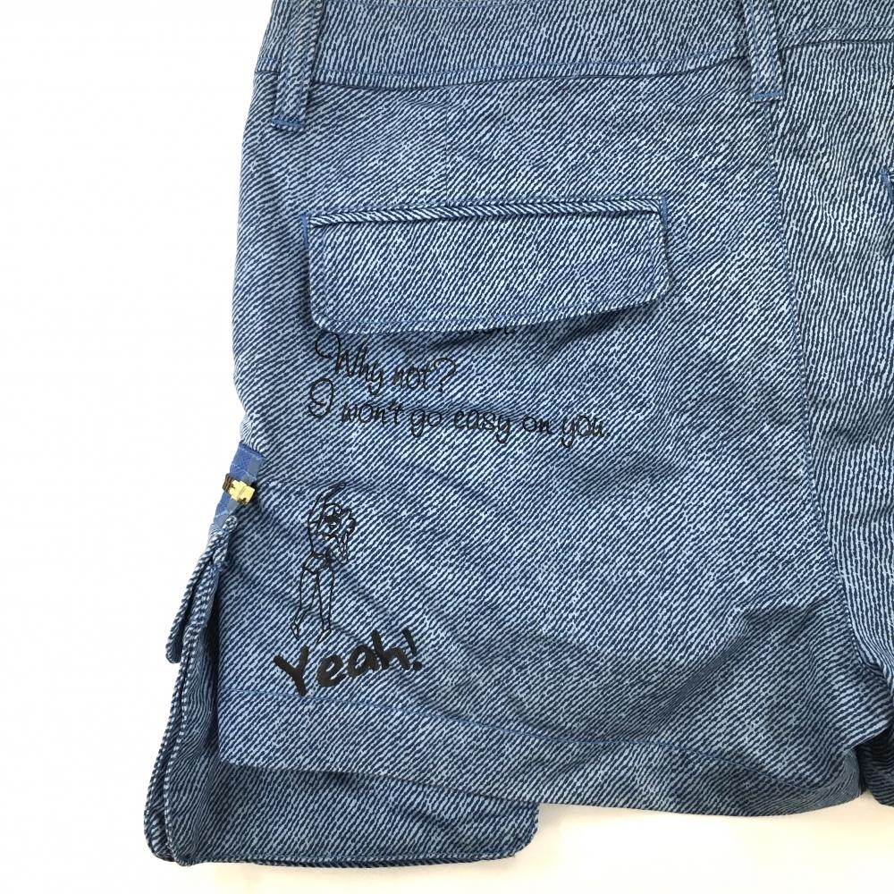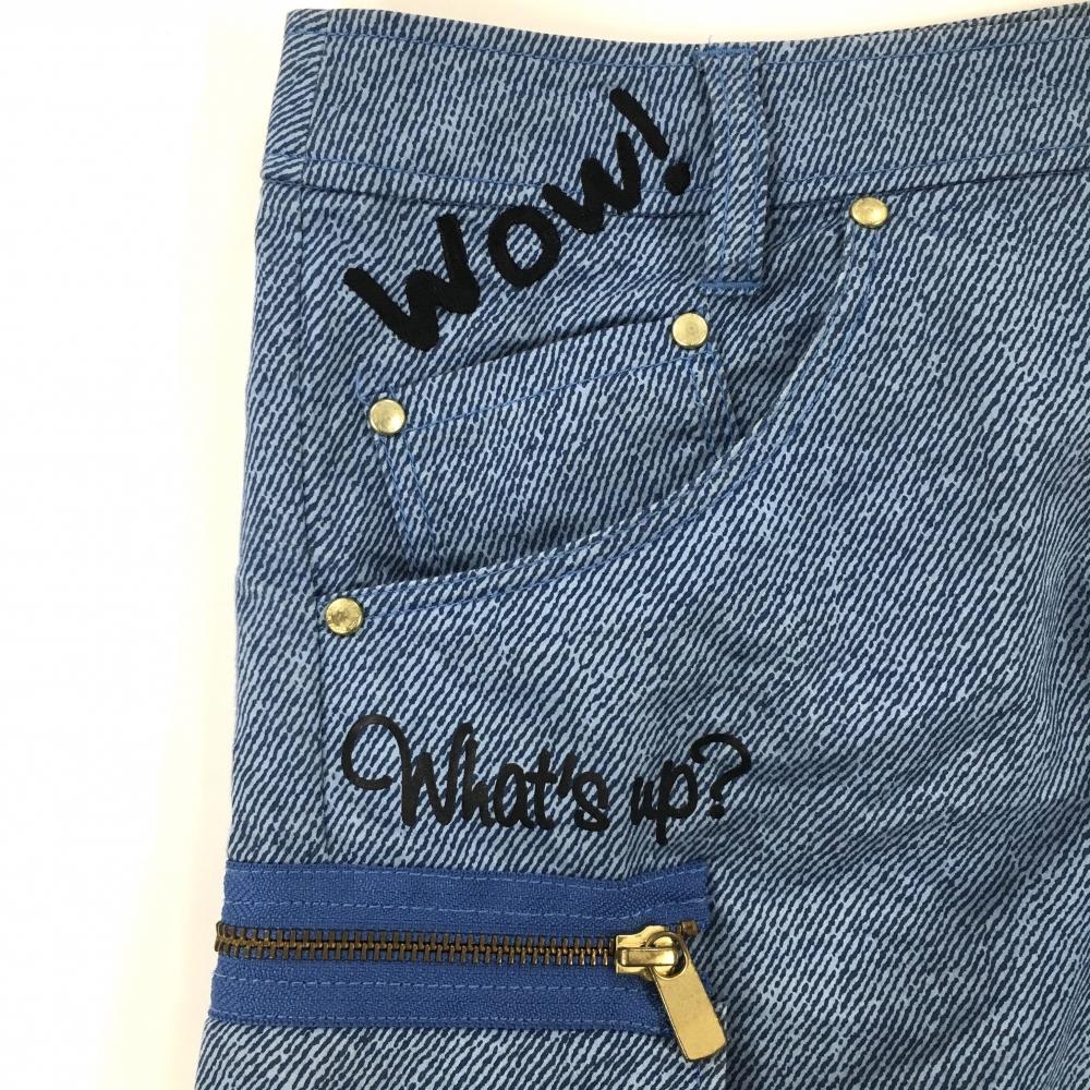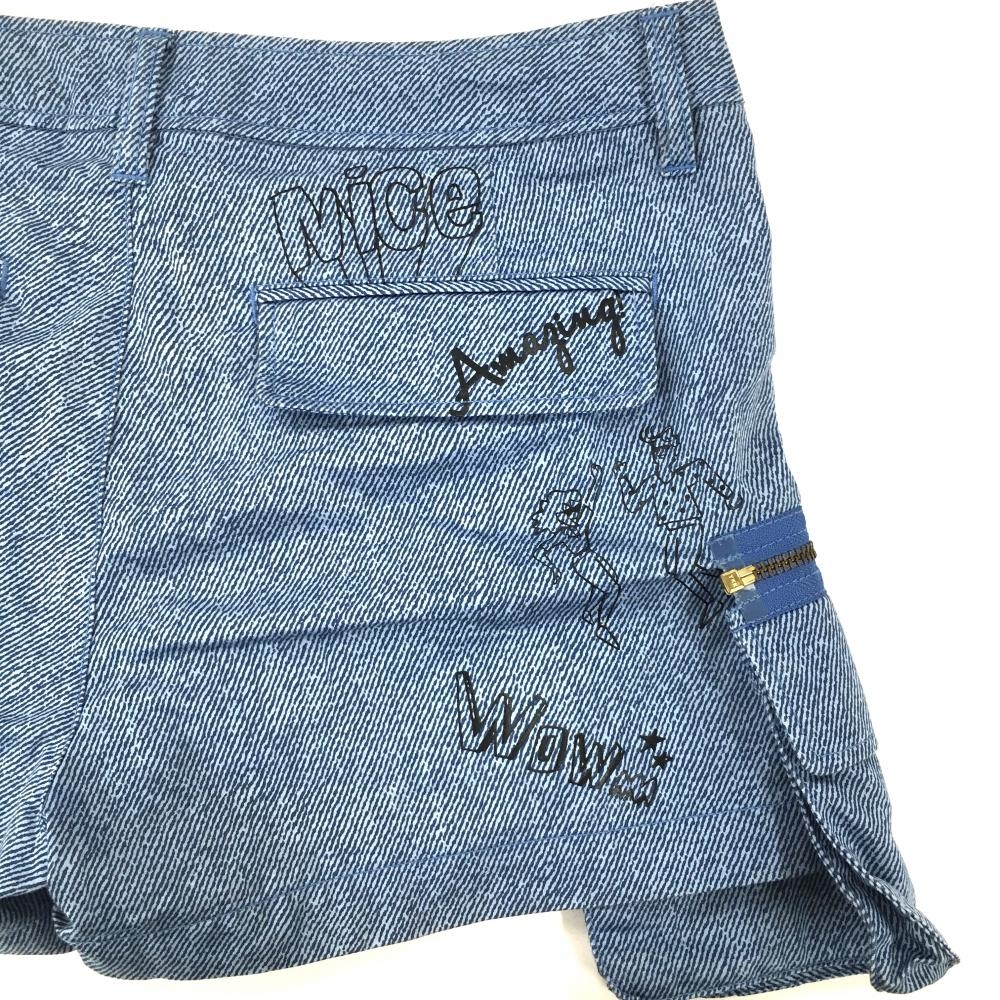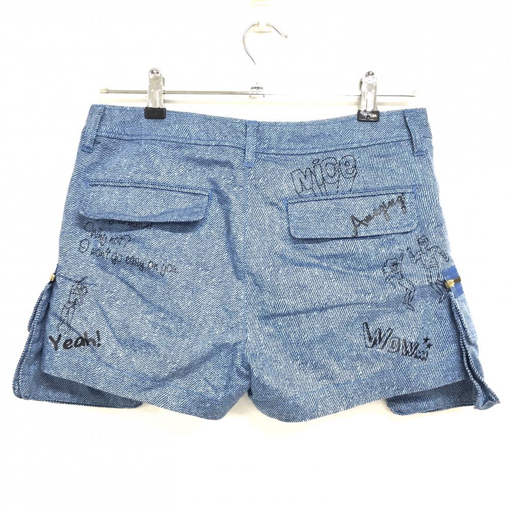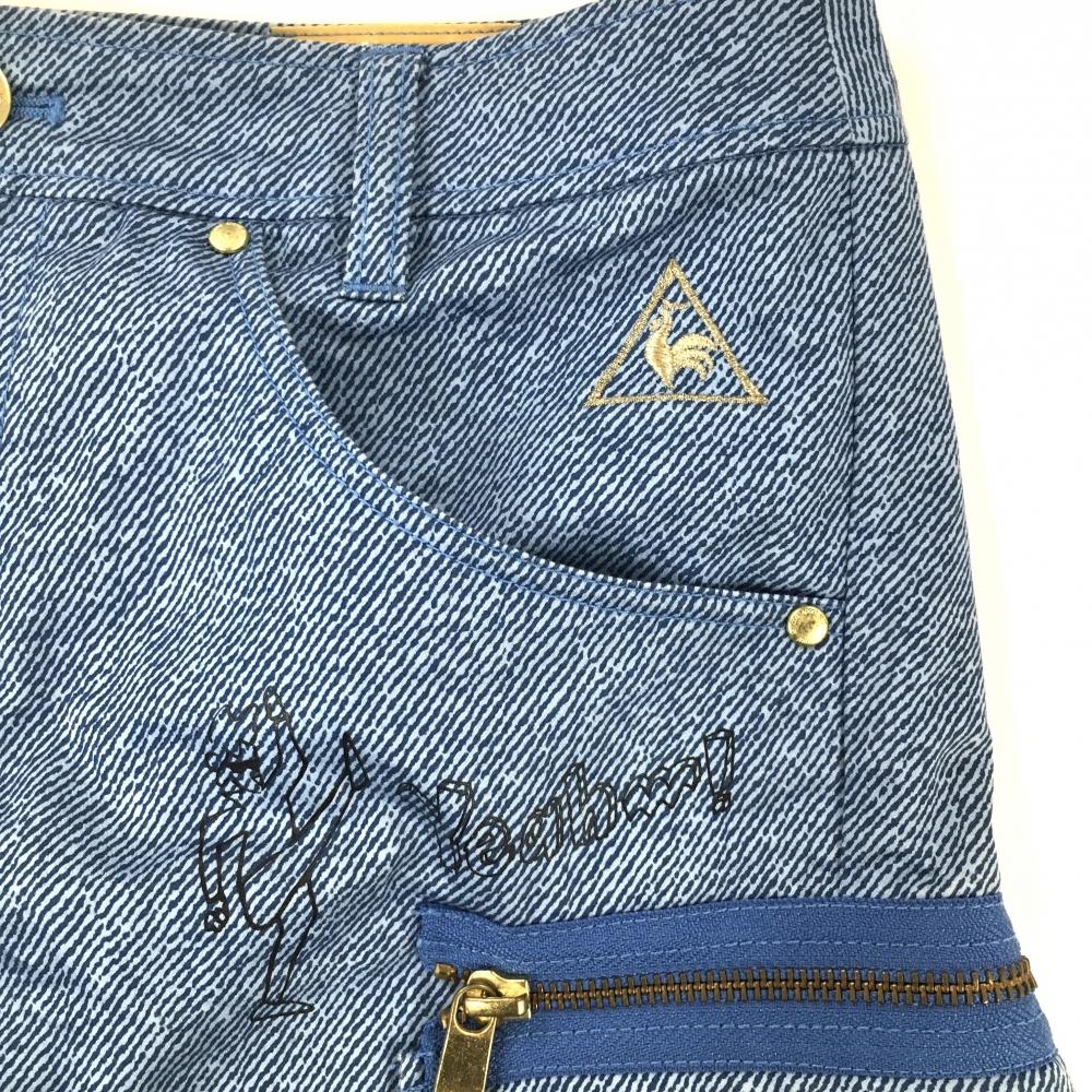 【超美品】ルコックゴルフ ショートパンツ ネイビー×黒 デニム風地模様 手書き風プリント レディース 9 ゴルフウェア le coq sportif
