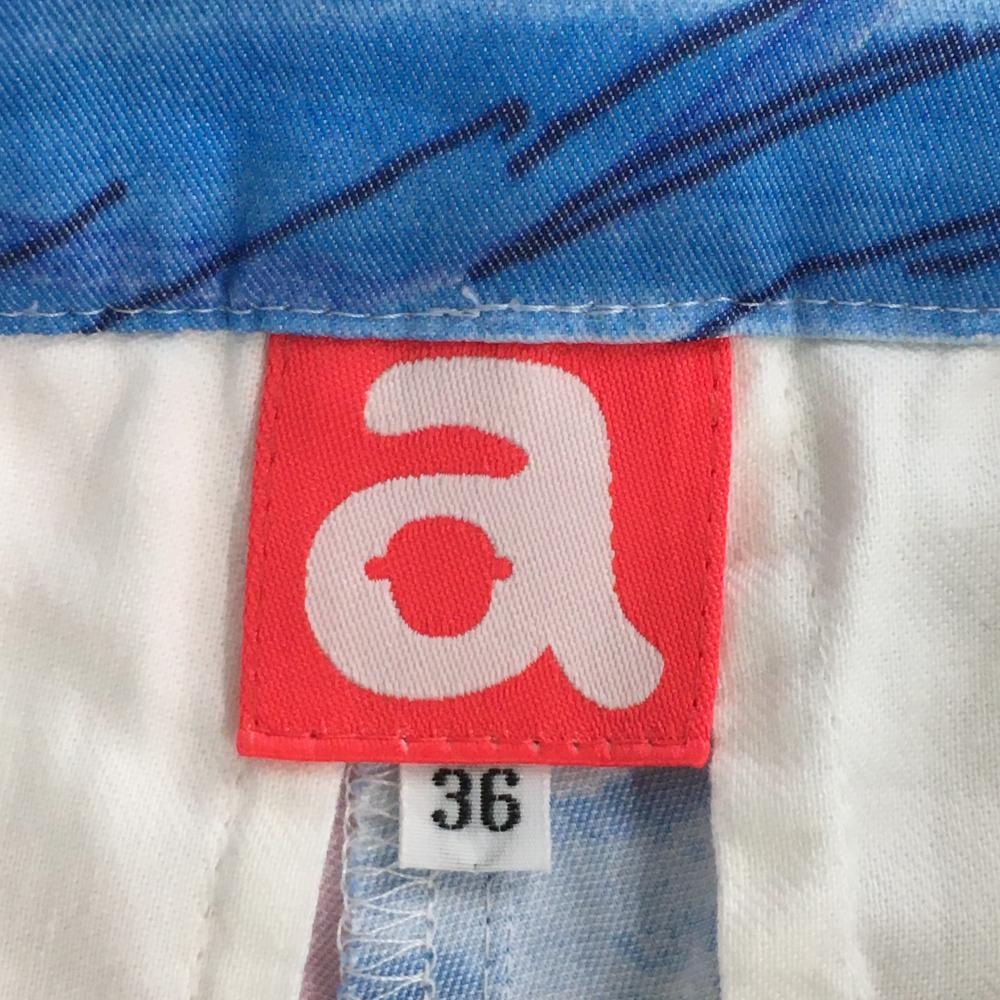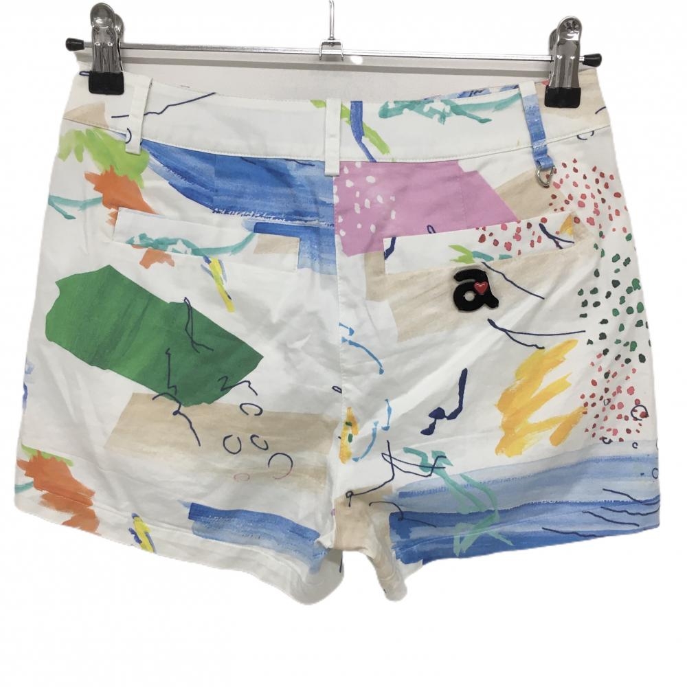 【美品】アルチビオ ショートパンツ 白×ピンク×ブルー 総柄 サイドライン レディース 36(S) ゴルフウェア archivio