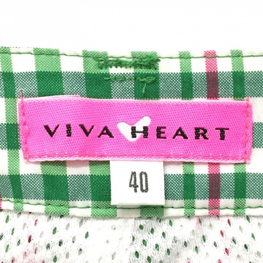 【超美品】ビバハート スカート 白×グリーン チェック柄 内側インナーパンツ レディース 40(M) ゴルフウェア VIVA HEART