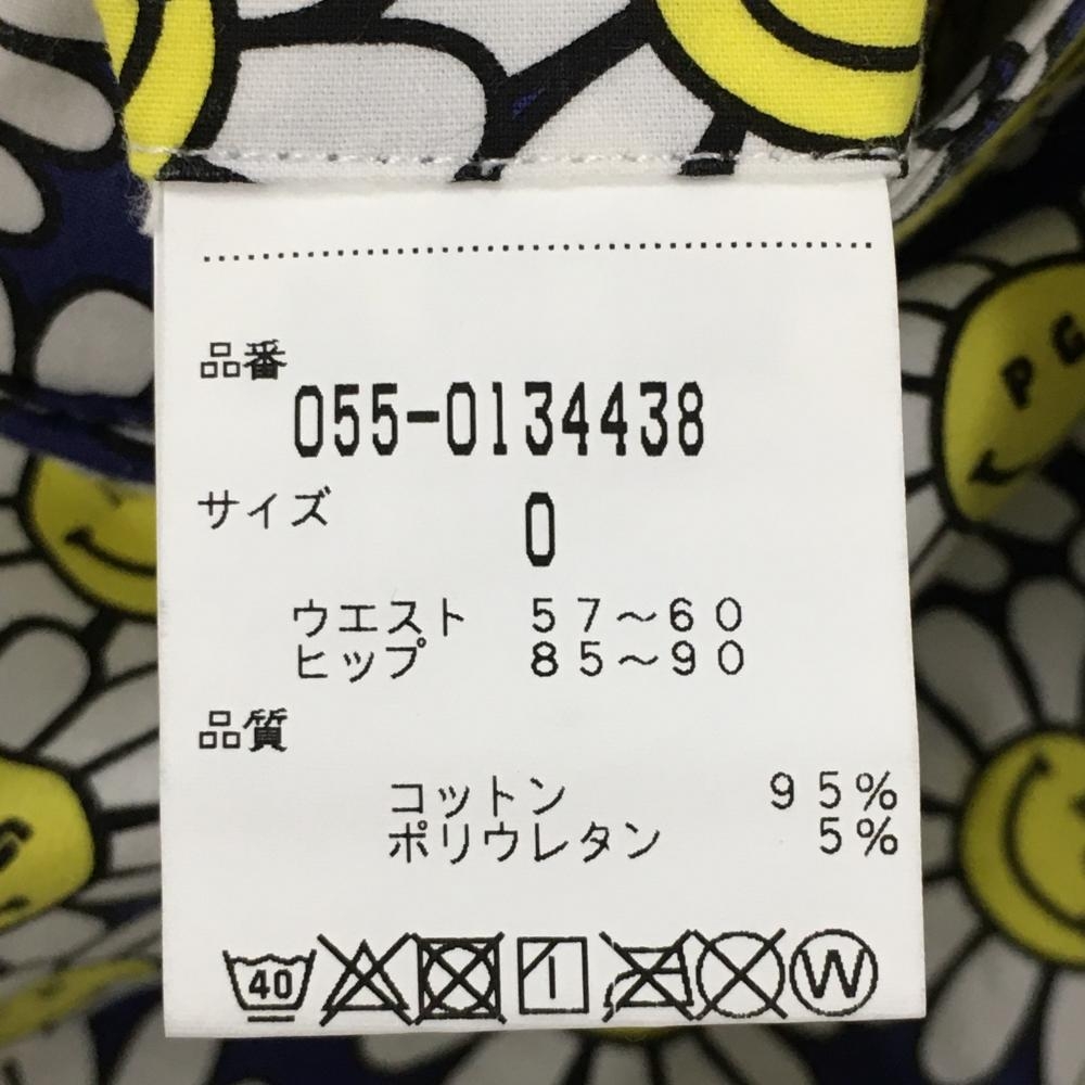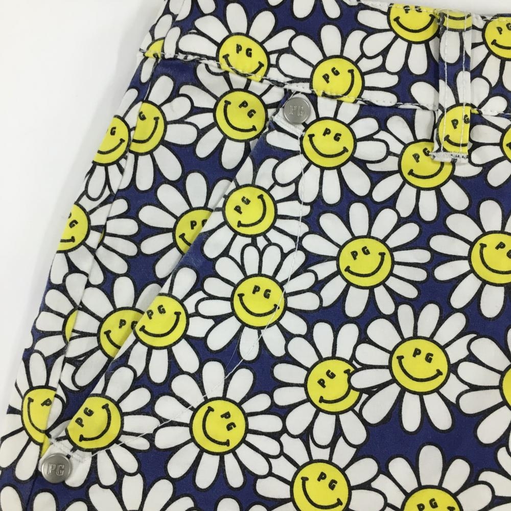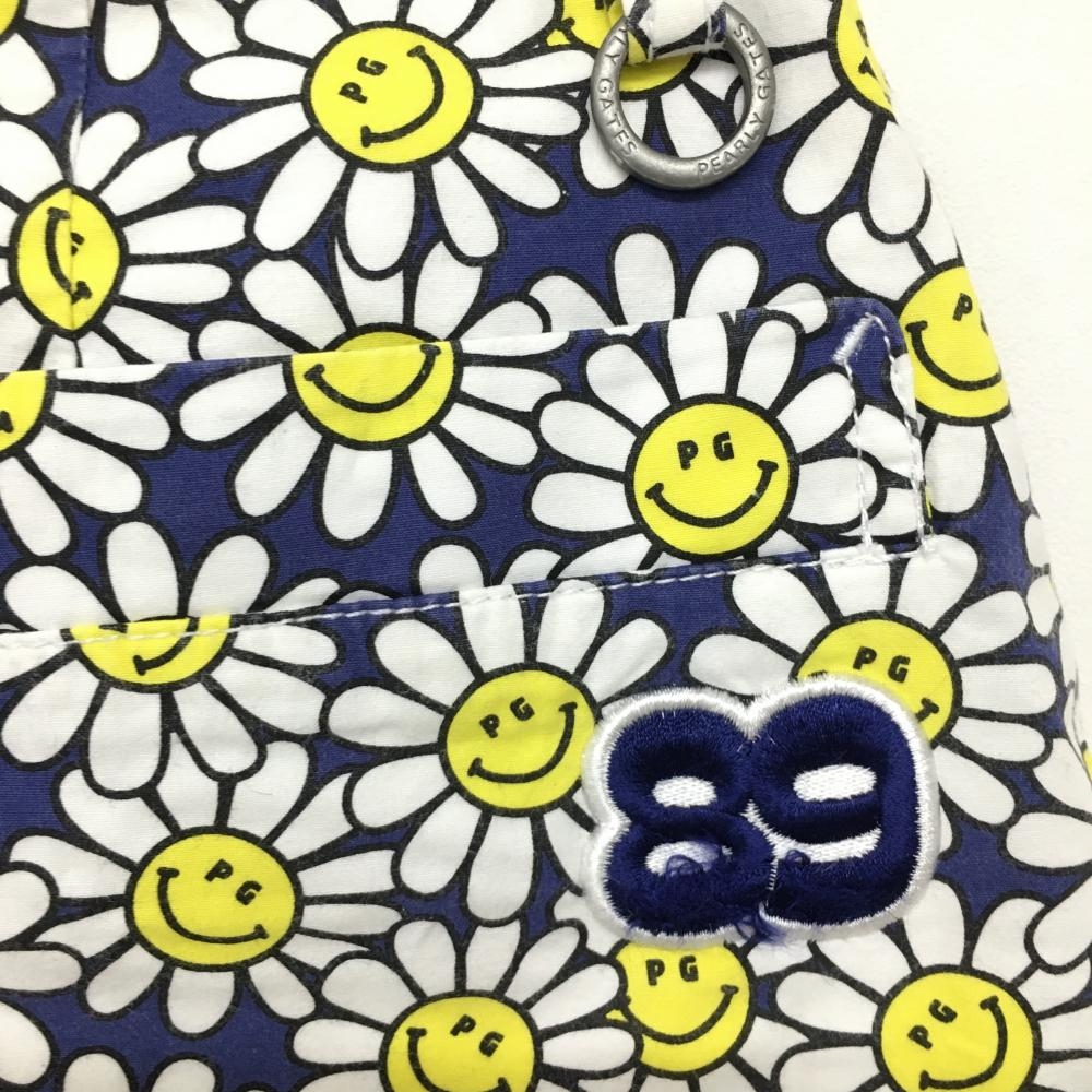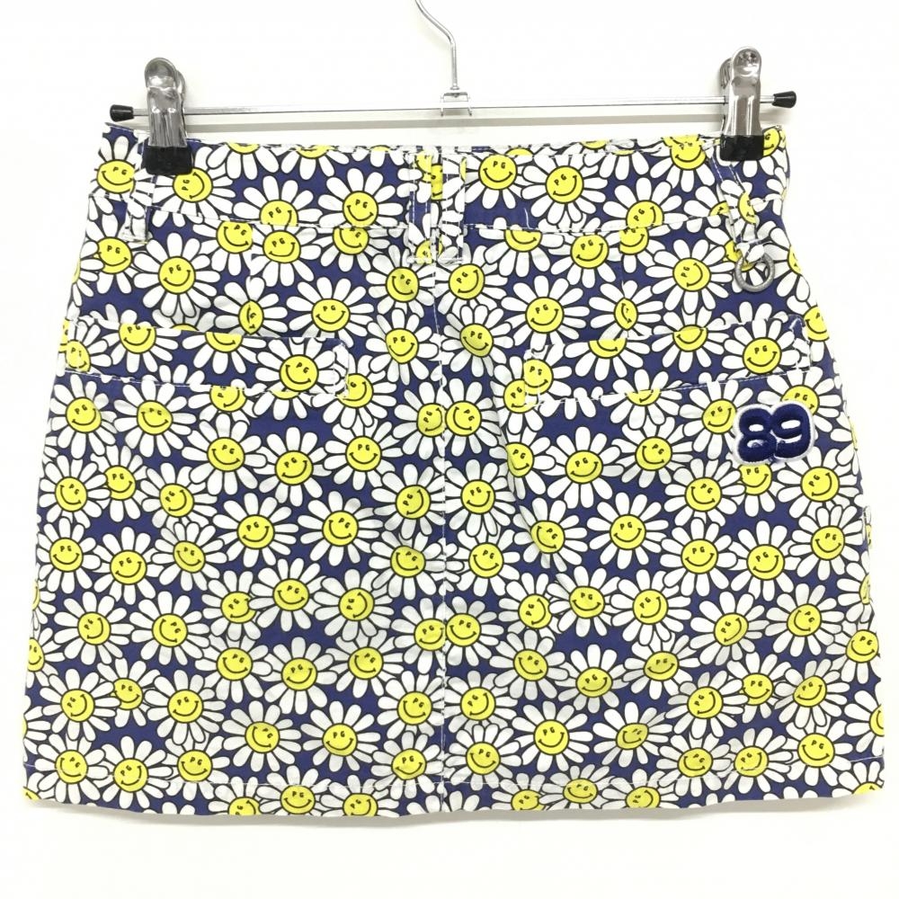 【美品】パーリーゲイツ スカート ネイビー×白×イエロー フラワーニコちゃん総柄 スマイル レディース 0(S) ゴルフウェア PEARLY GATES