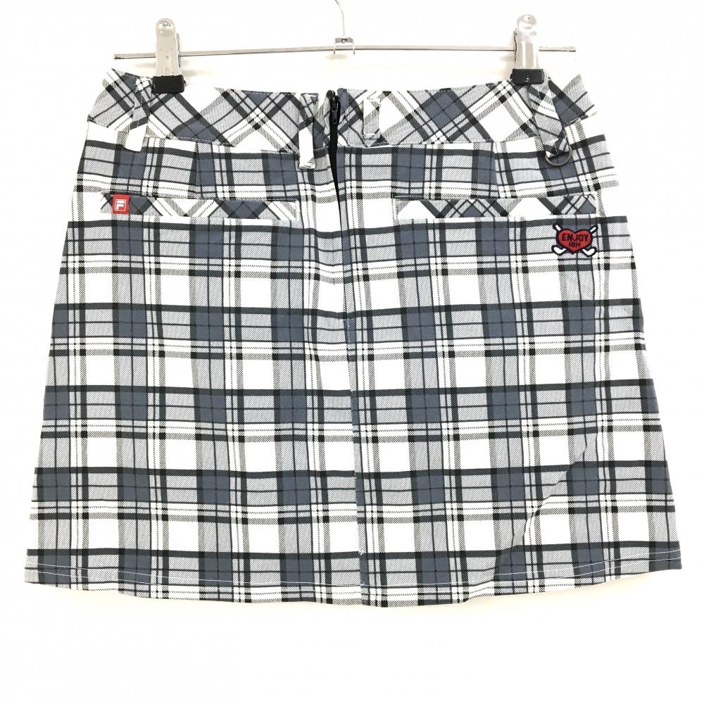 【新品】フィラゴルフ スカート 白×グレー チェック ストレッチ 吸汗速乾 UVカット レディース M ゴルフウェア FILA GOLF