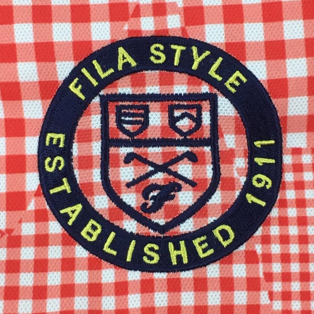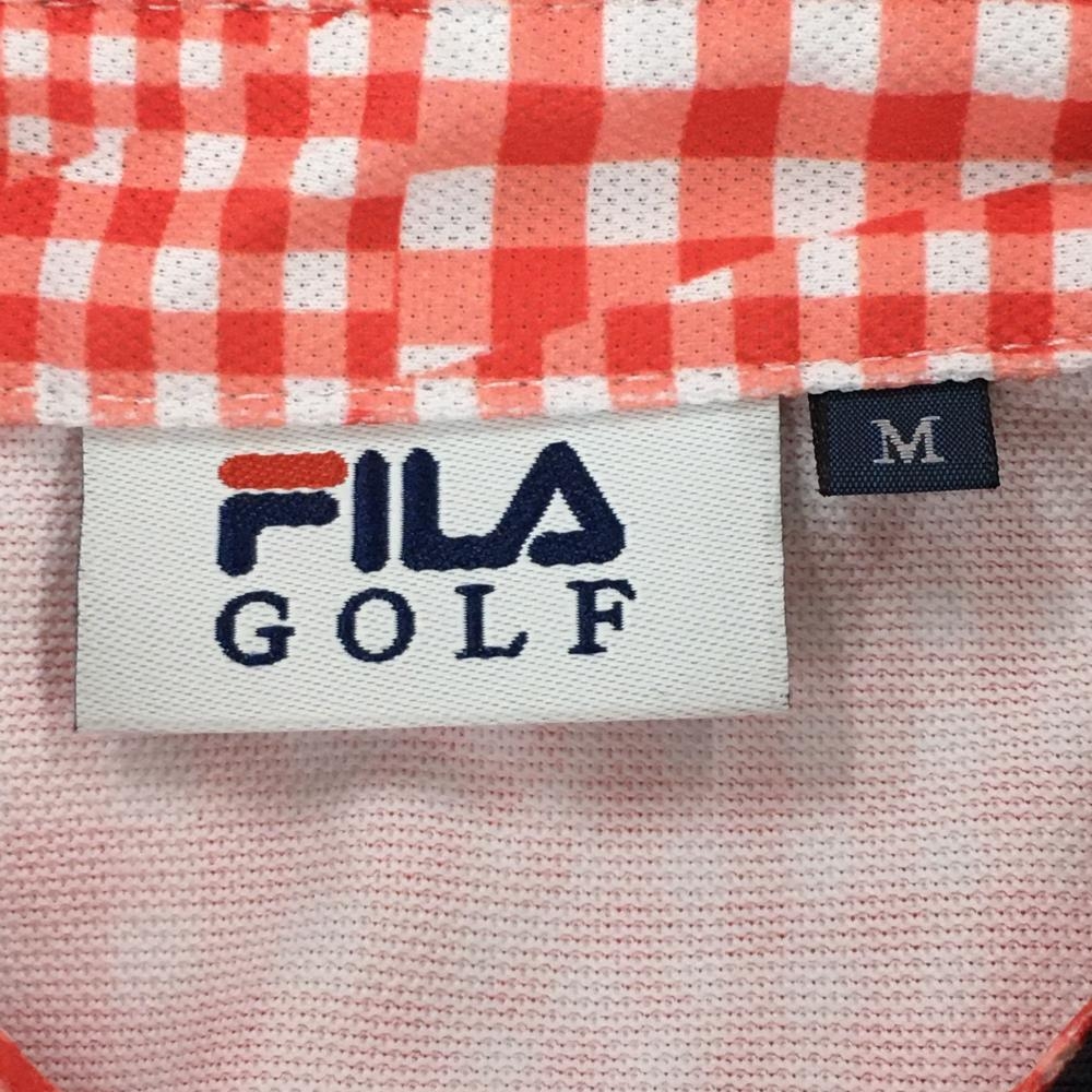 【超美品】フィラゴルフ 半袖ポロシャツ レッド×白 チェック柄 ロゴネイビー レディース M ゴルフウェア FILA GOLF