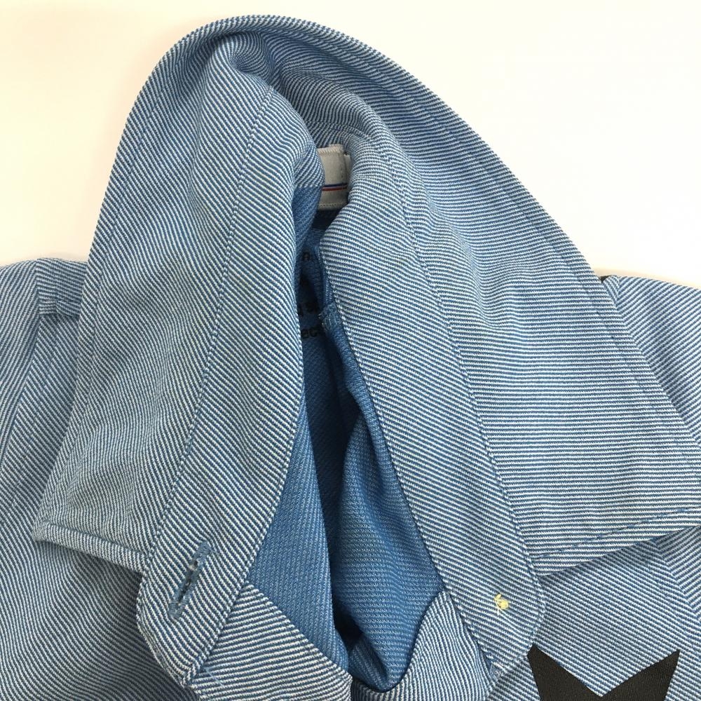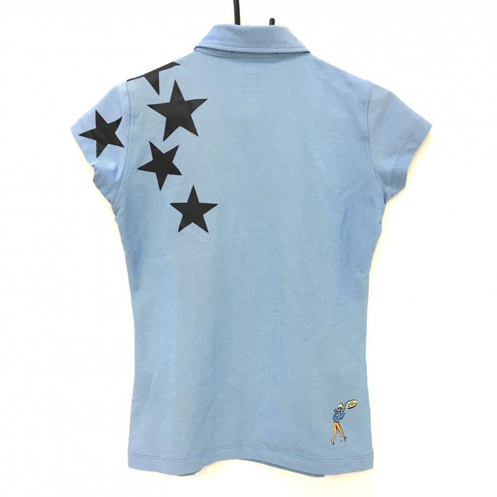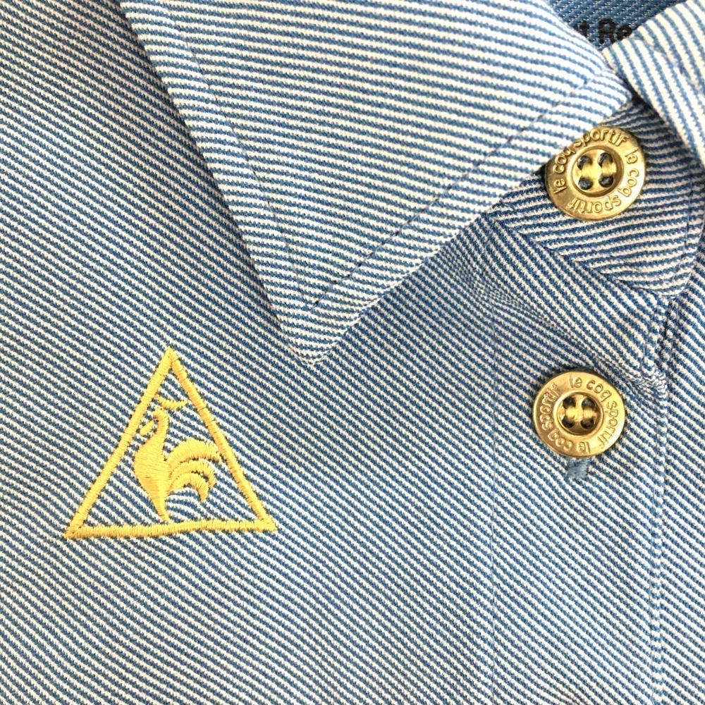 ルコックゴルフ 半袖ポロシャツ ライトブルー×白 斜めストライプ地模様 黒星プリント レディース M ゴルフウェア le coq sportif