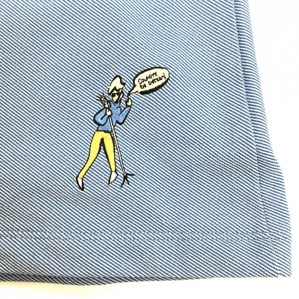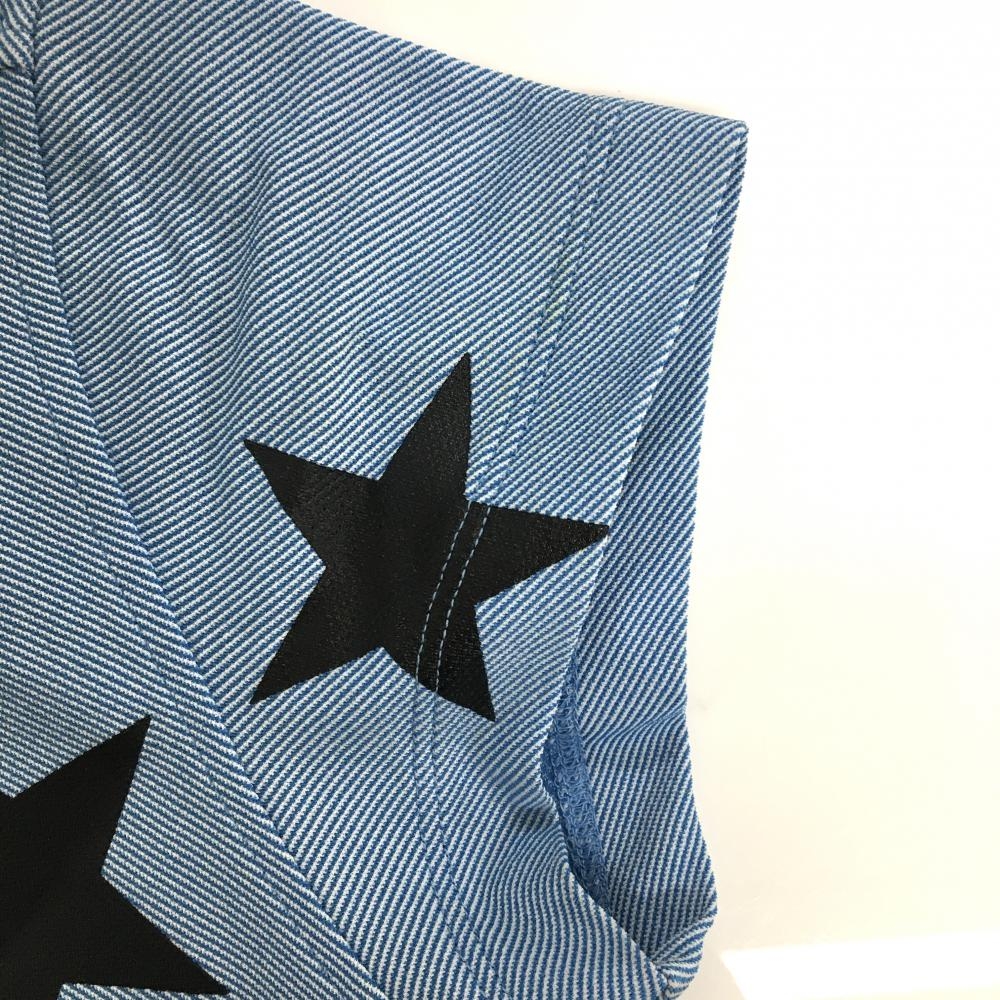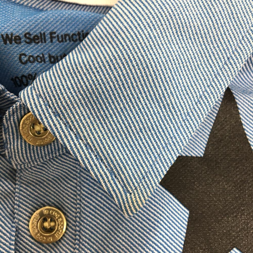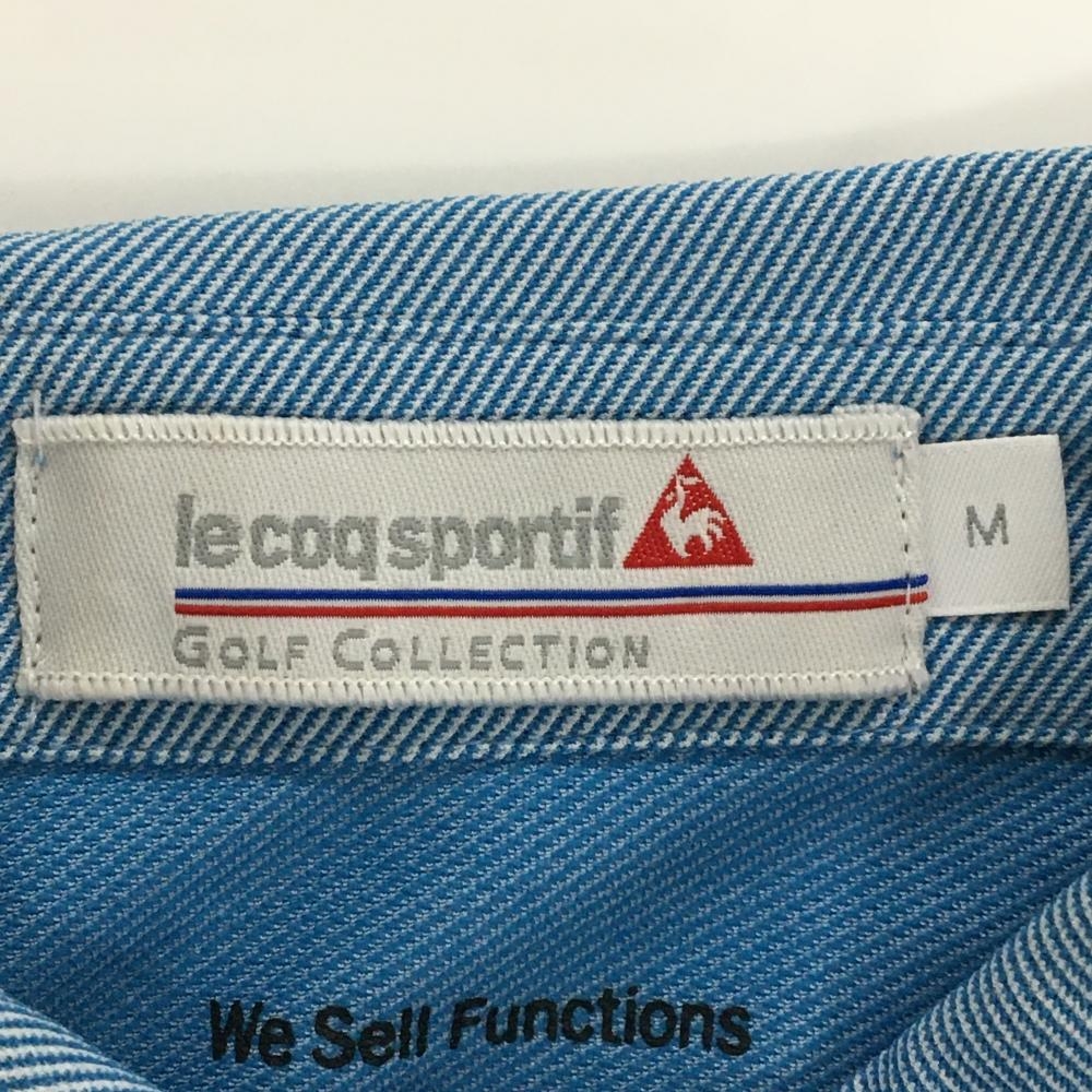 ルコックゴルフ 半袖ポロシャツ ライトブルー×白 斜めストライプ地模様 黒星プリント レディース M ゴルフウェア le coq sportif