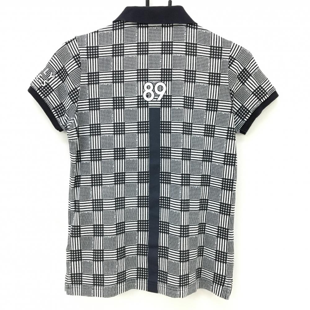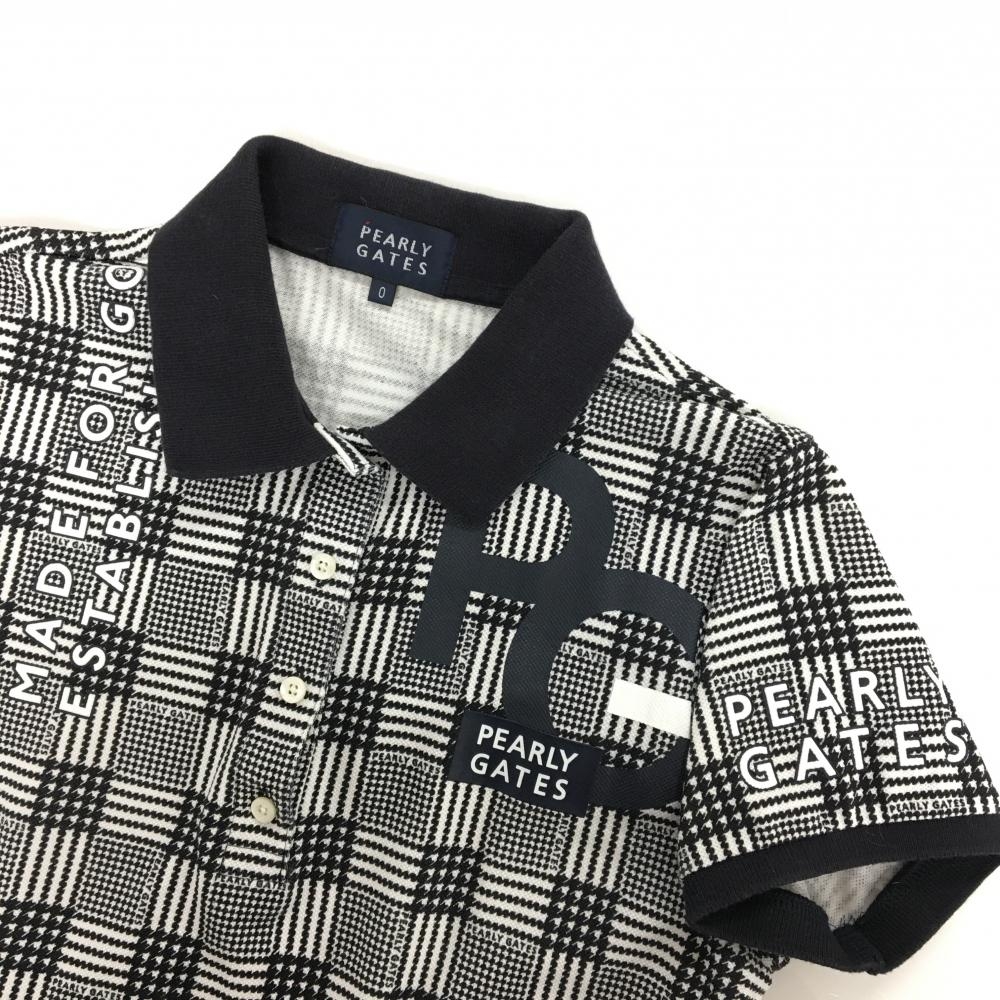 パーリーゲイツ 半袖ポロシャツ 黒×白 チェック レディース 0(S) ゴルフウェア PEARLY GATES