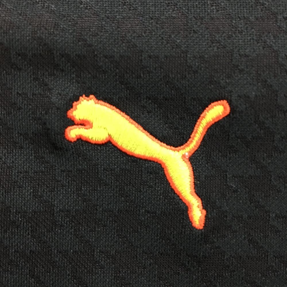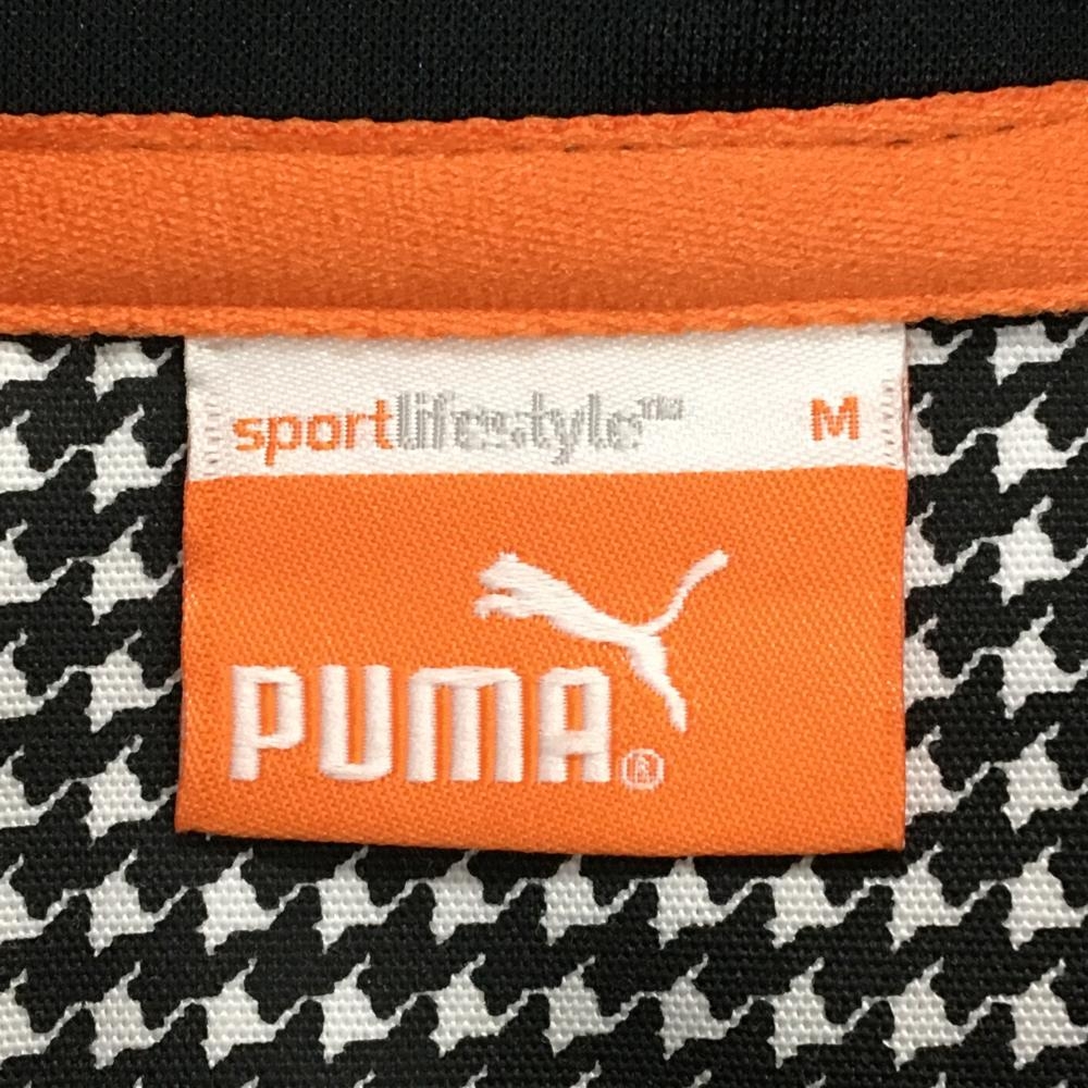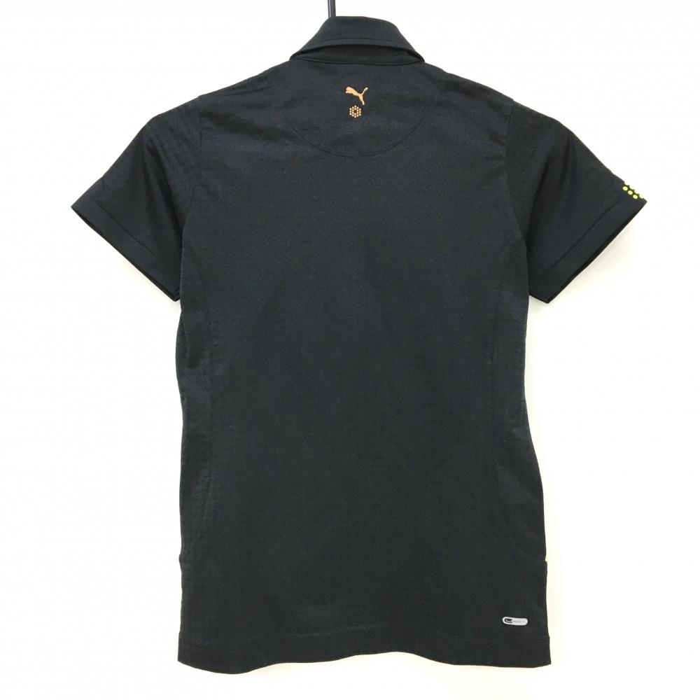【超美品】プーマ 半袖ポロシャツ 黒×イエロー 地模様 サイドパイピングライン ロゴ刺しゅう レディース M ゴルフウェア PUMA