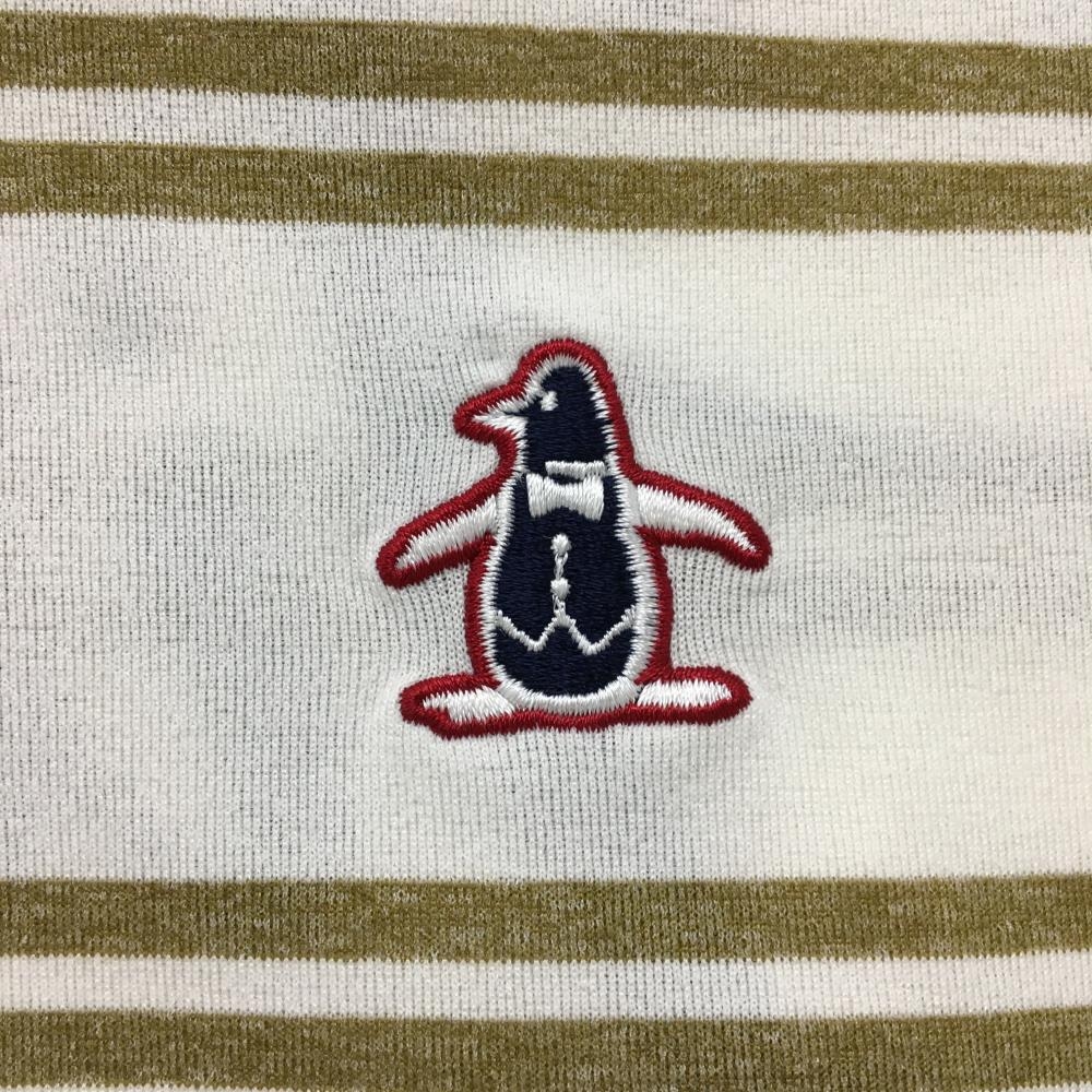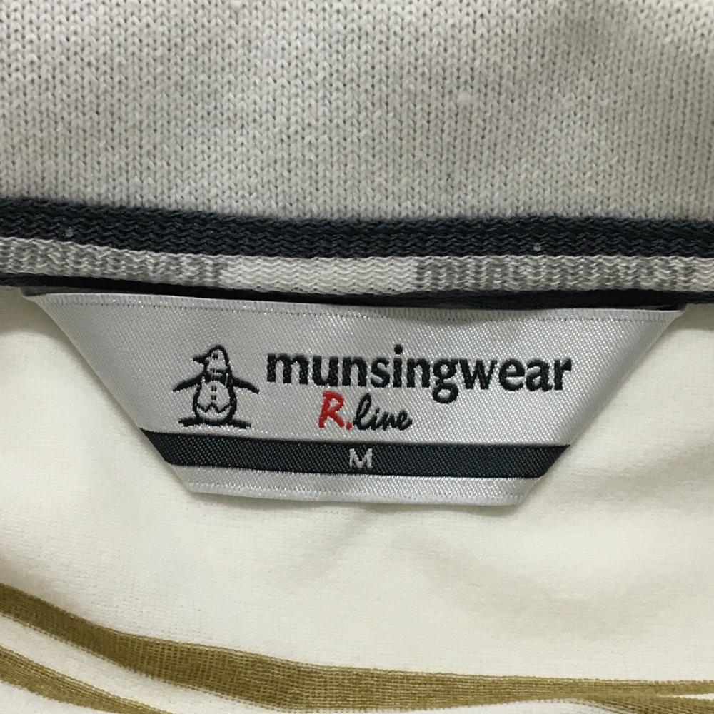 マンシングウェア 半袖ポロシャツ 白×ブラウン ボーダー ロゴ刺しゅう メンズ M ゴルフウェア Munsingwear