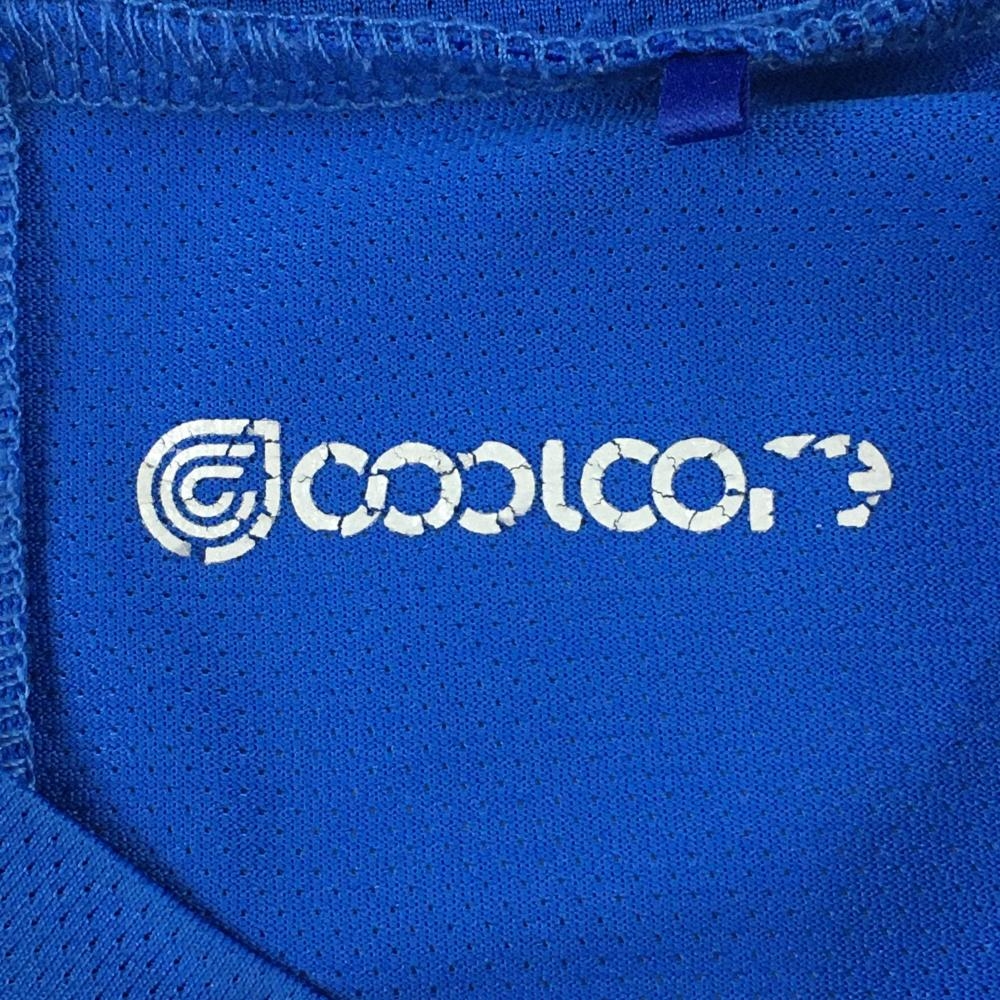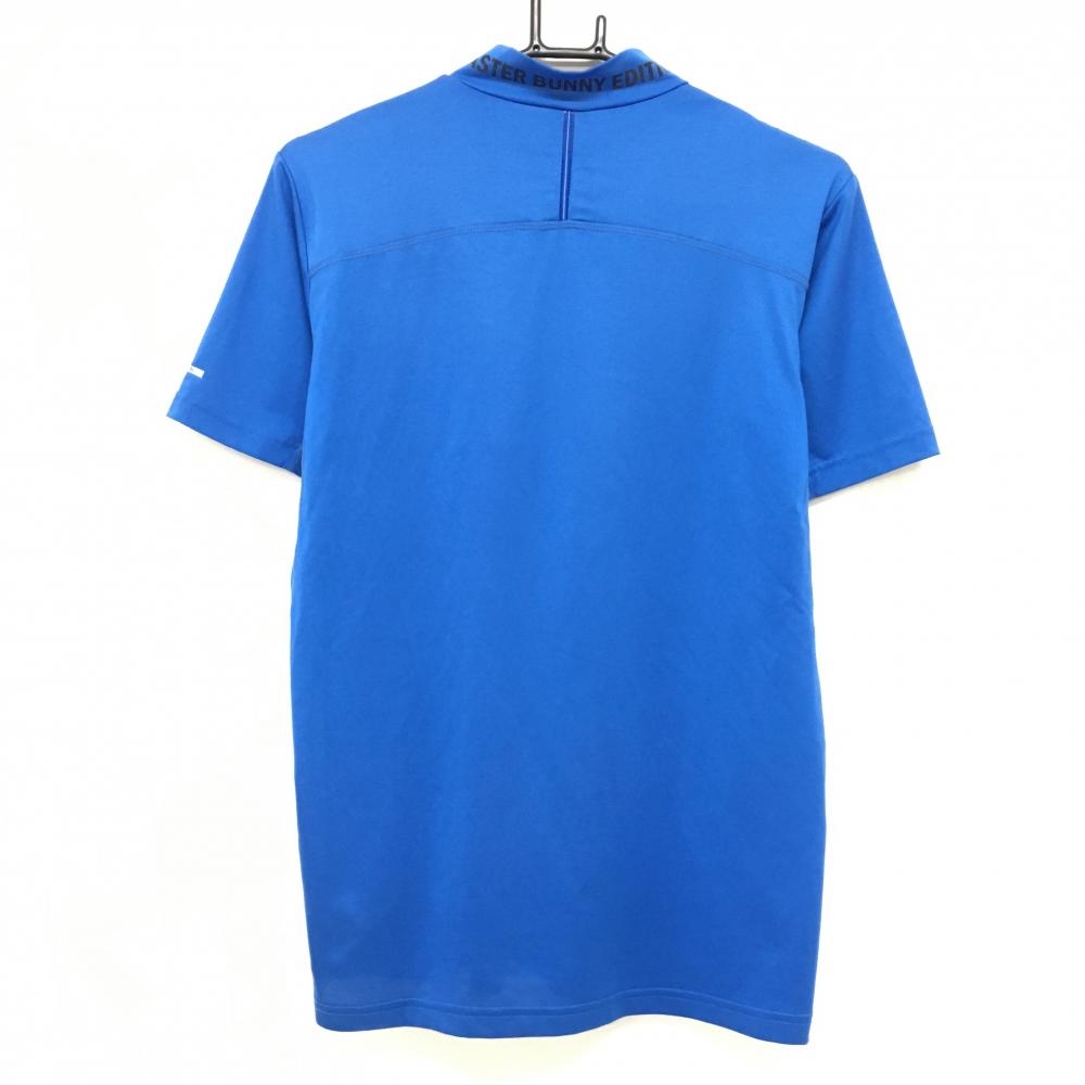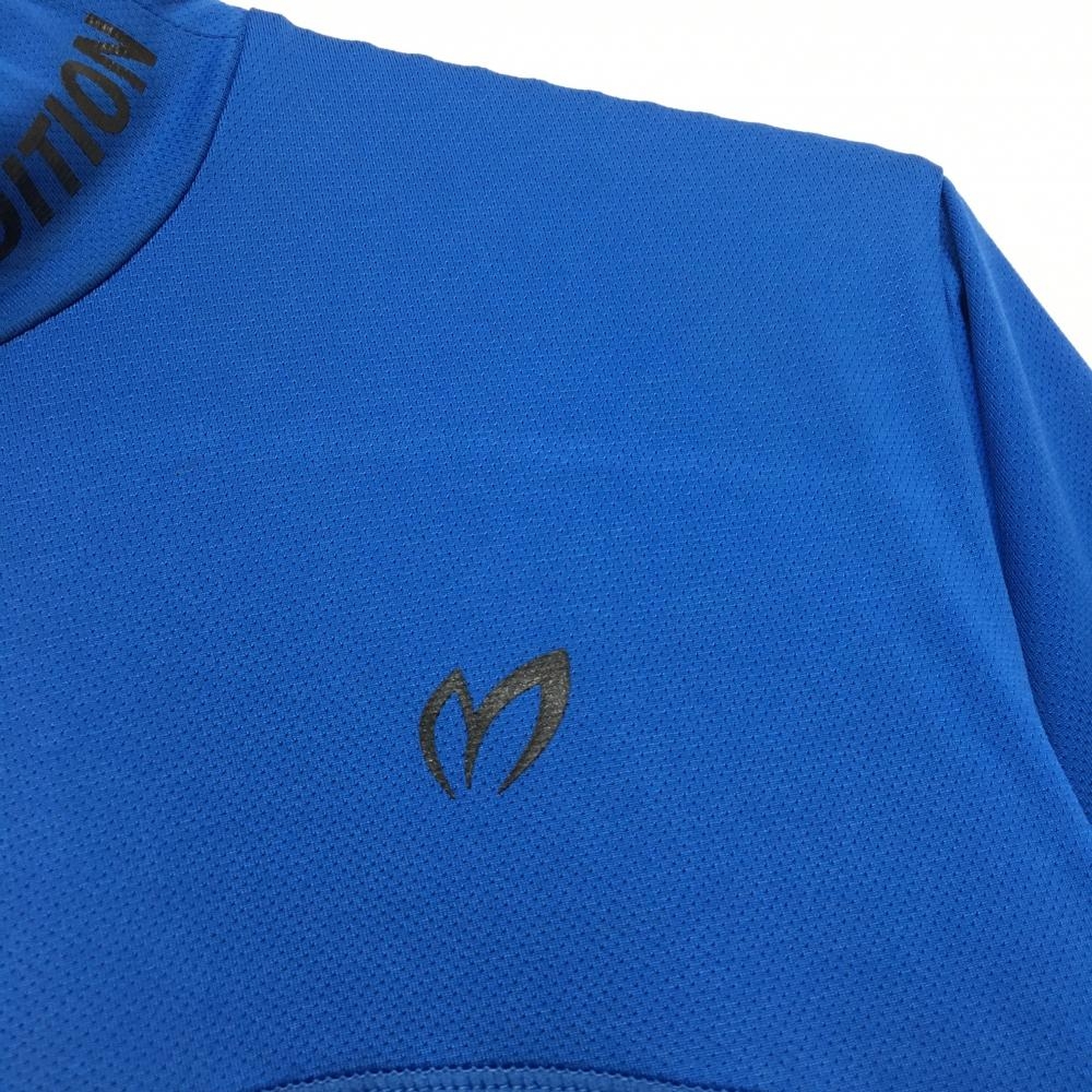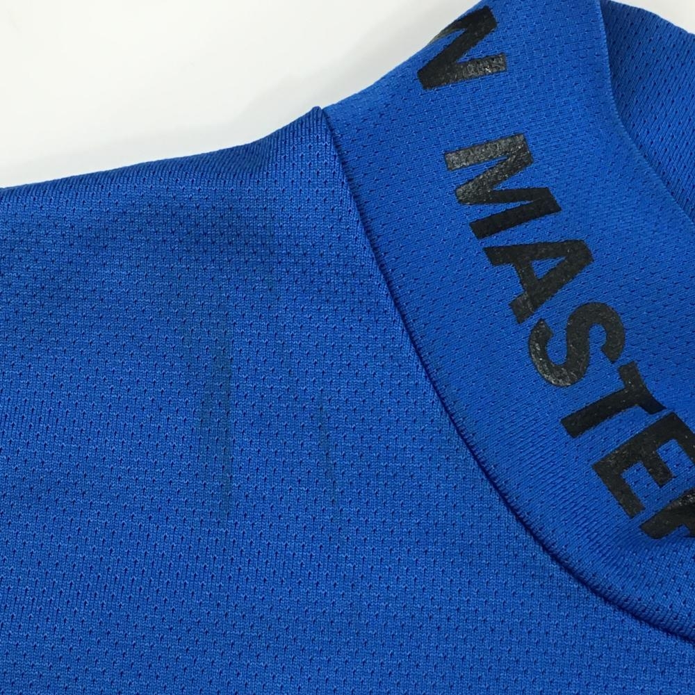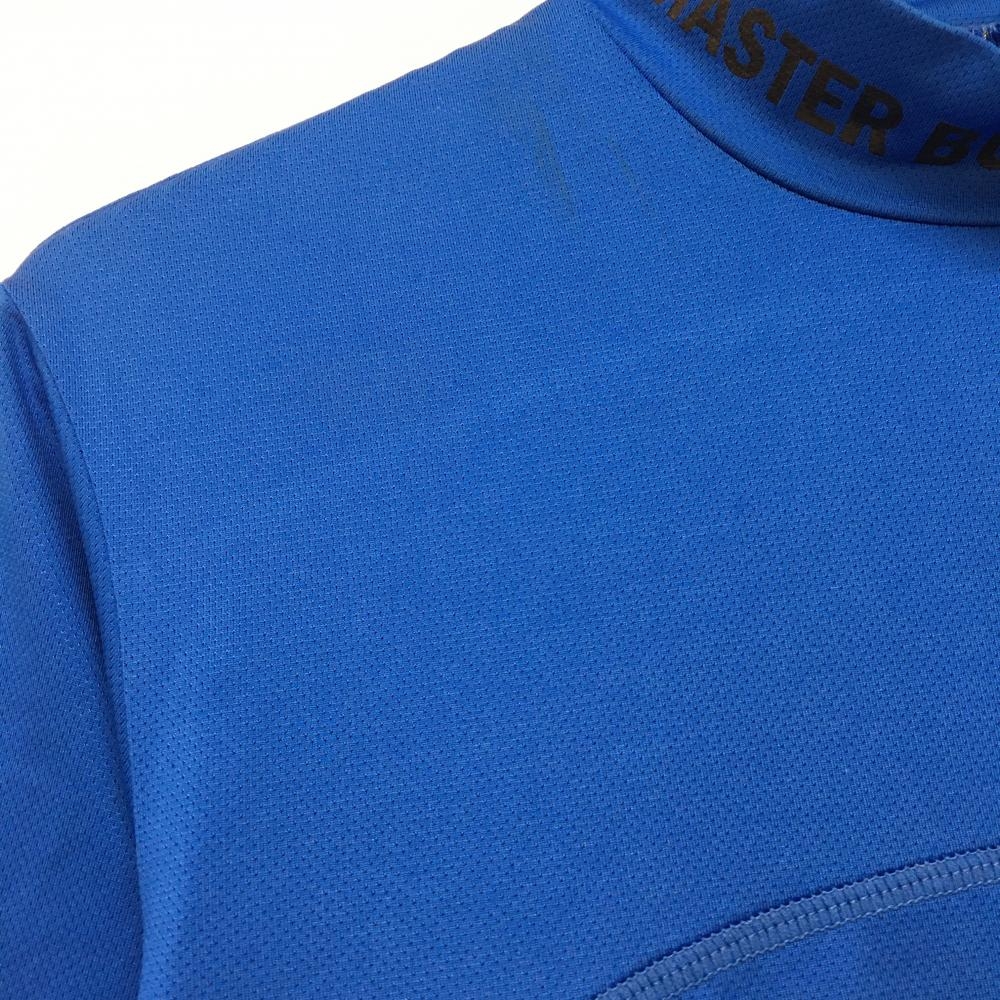 【美品】マスターバニー 半袖ハイネックシャツ ブルー メッシュ生地 ロゴ黒 インナー メンズ 4(M) ゴルフウェア MASTER BUNNY EDITION