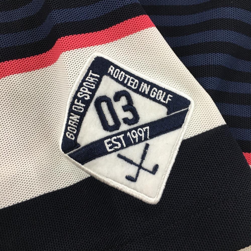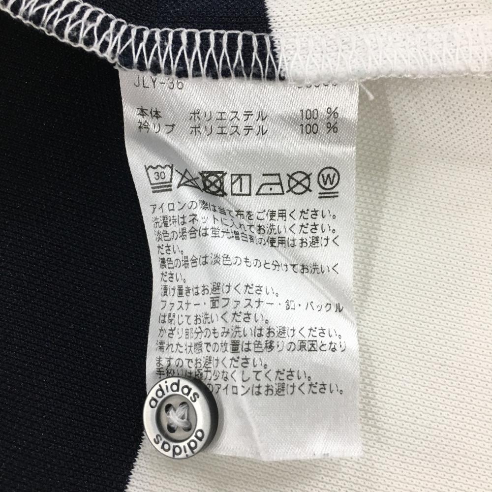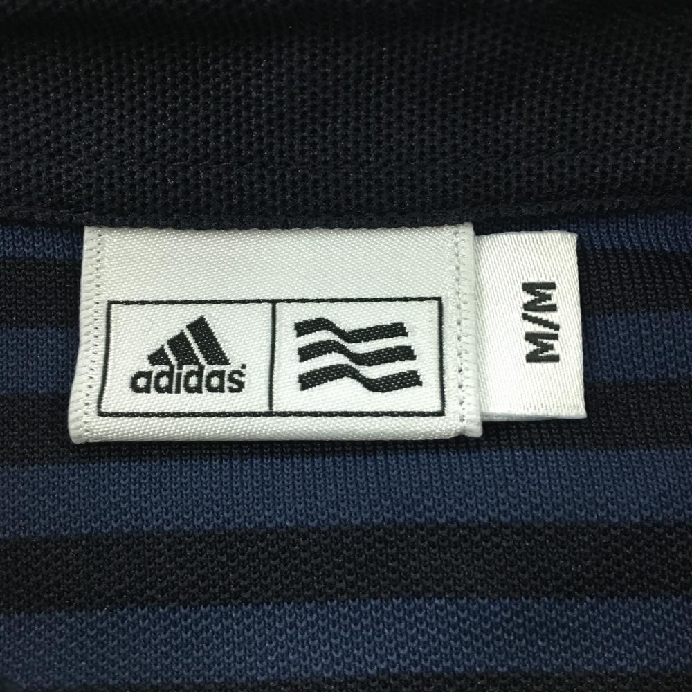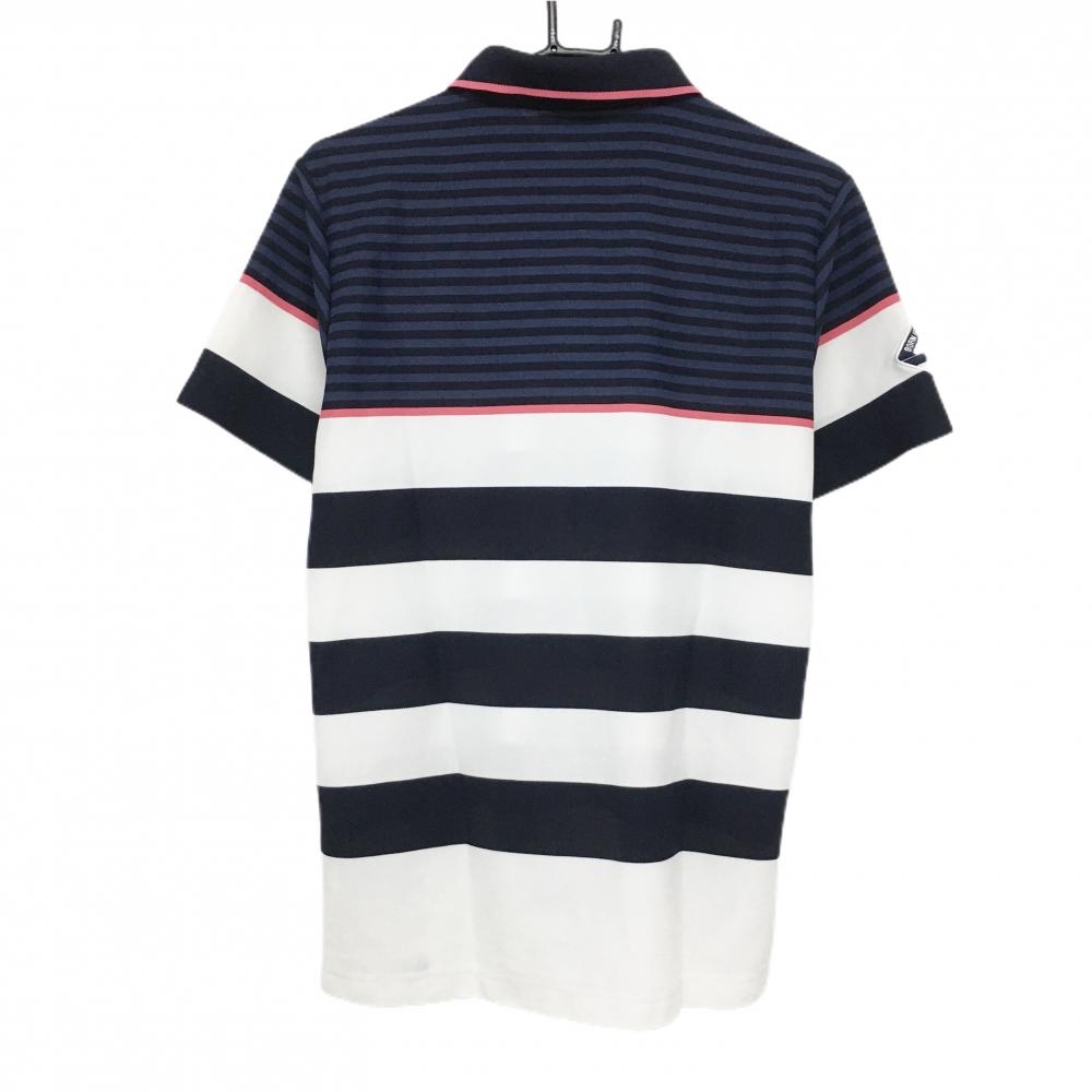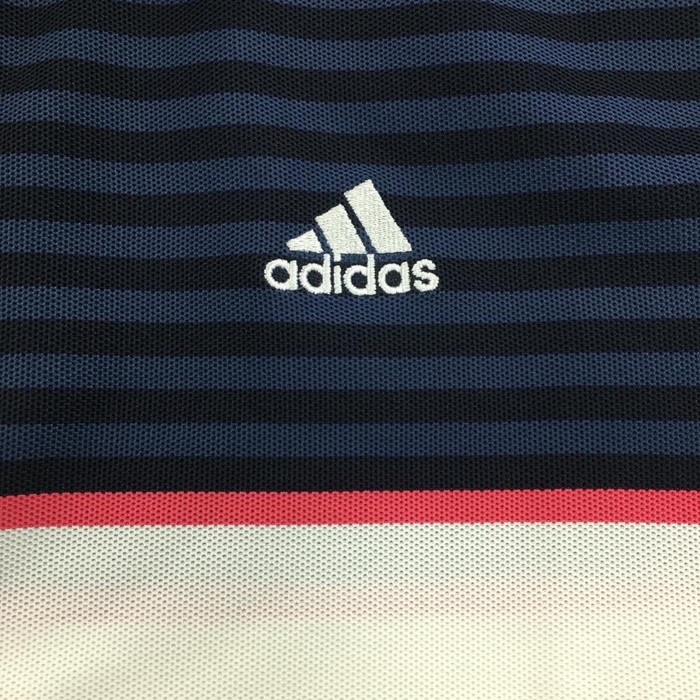 【美品】アディダス 半袖ポロシャツ 白×ダークネイビー ボーダー 襟縁ピンク メンズ M/M ゴルフウェア adidas