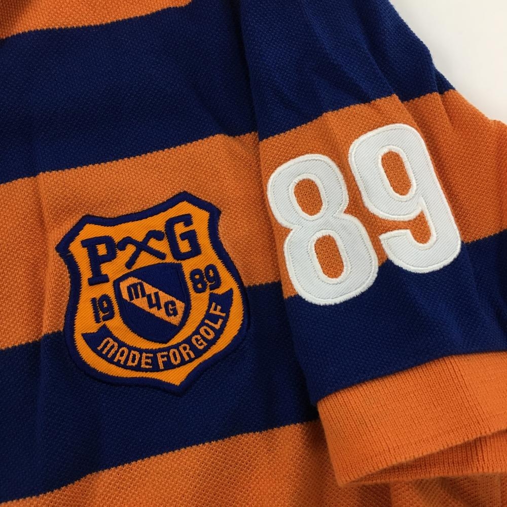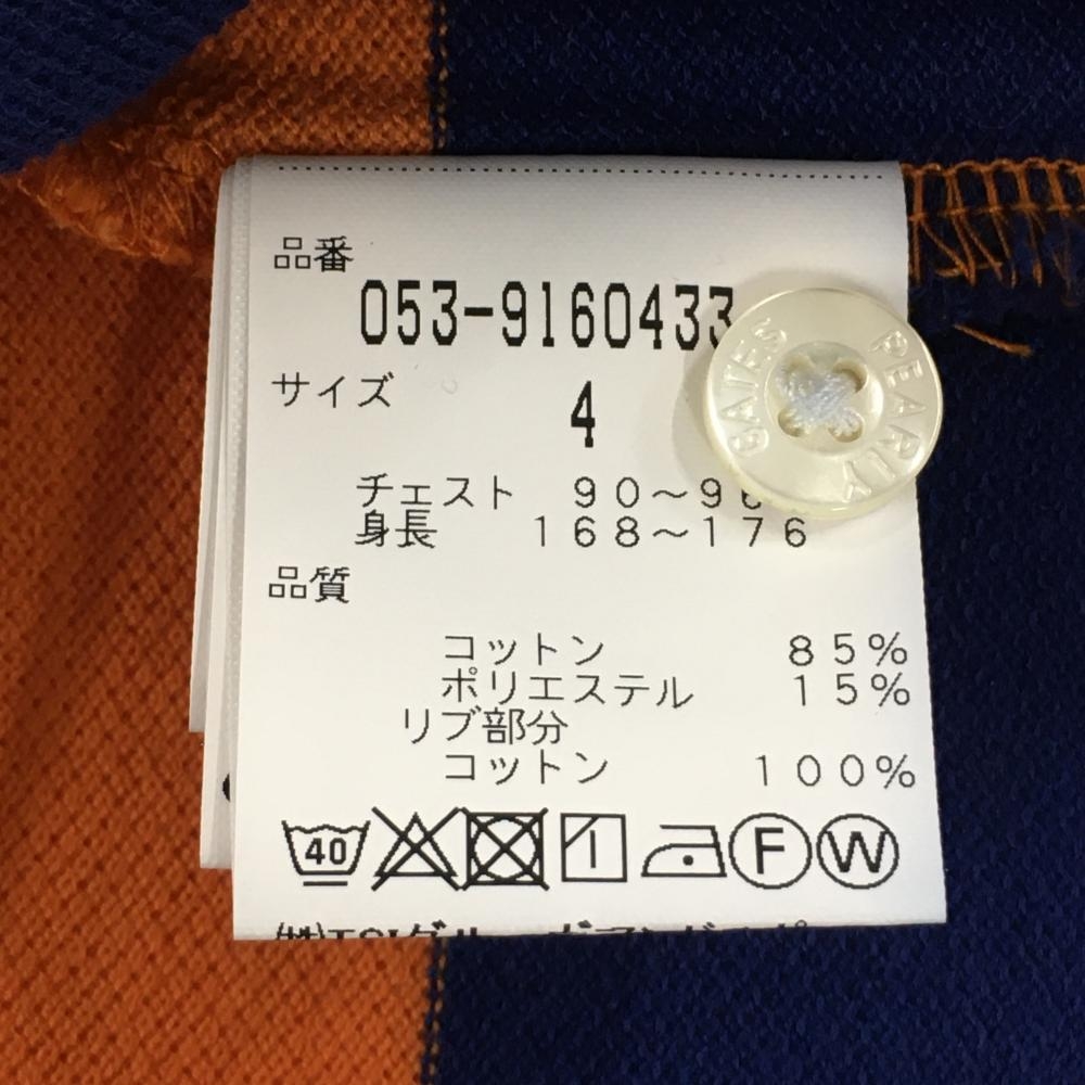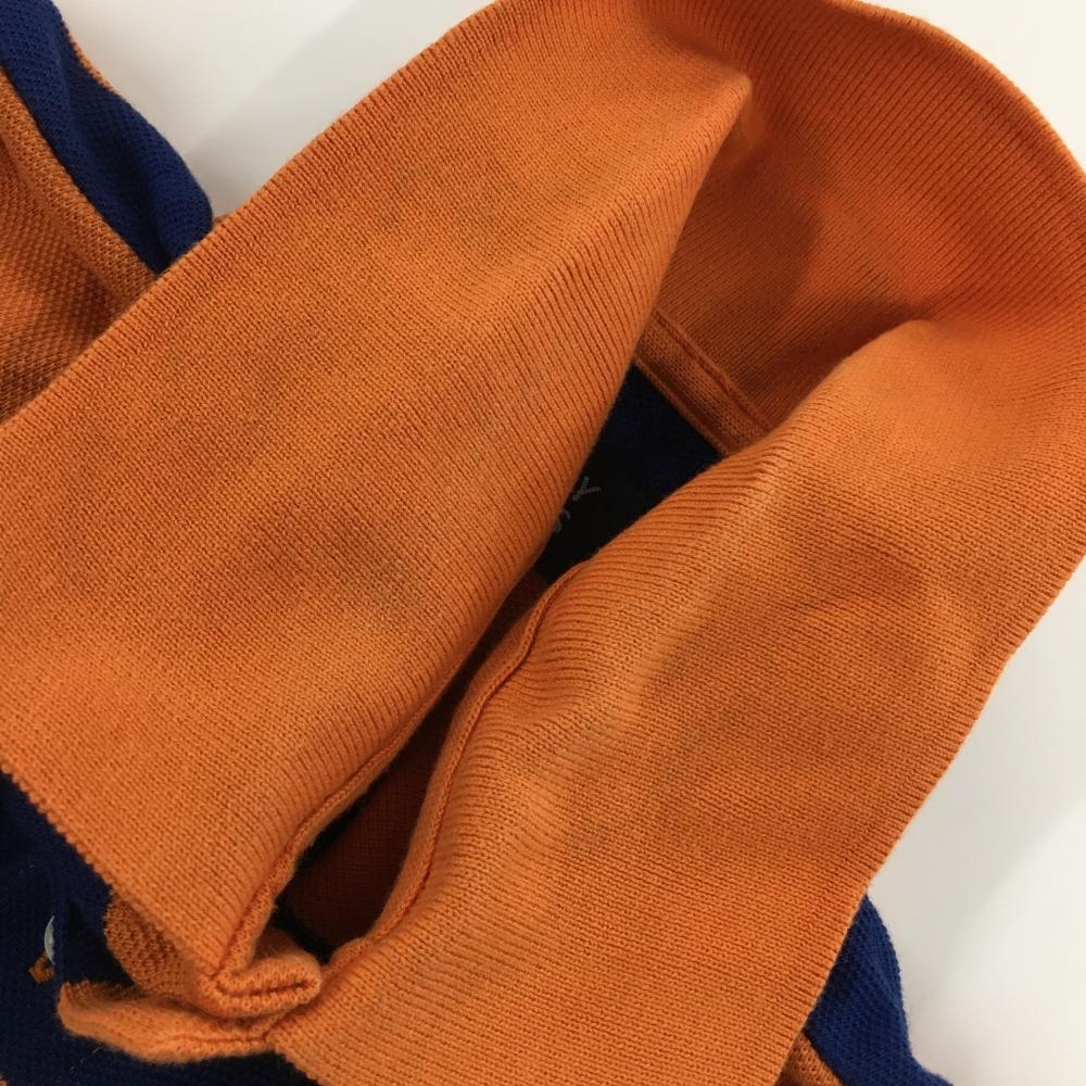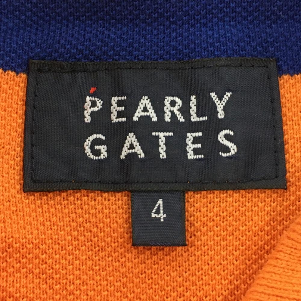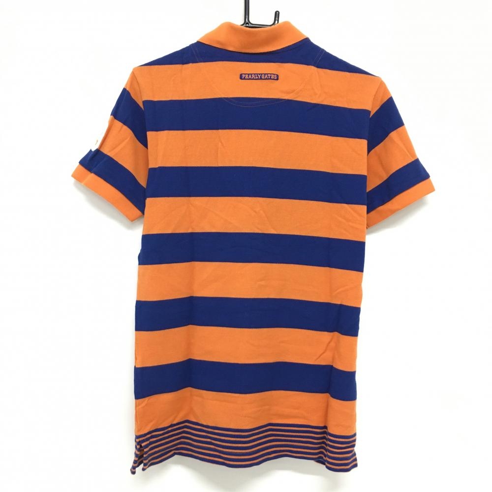 【美品】パーリーゲイツ 半袖ポロシャツ オレンジ×ブルー ボーダー コットン混 メンズ 4(M) ゴルフウェア PEARLY GATES