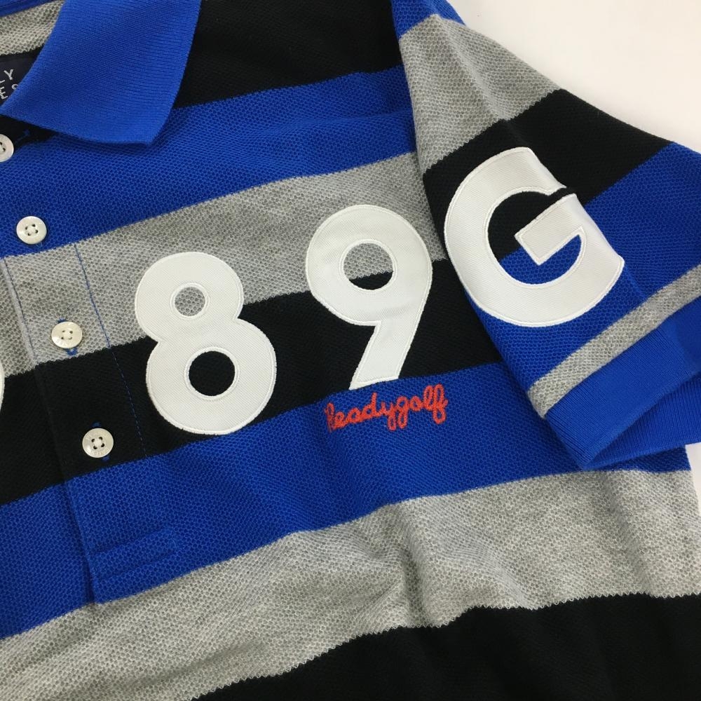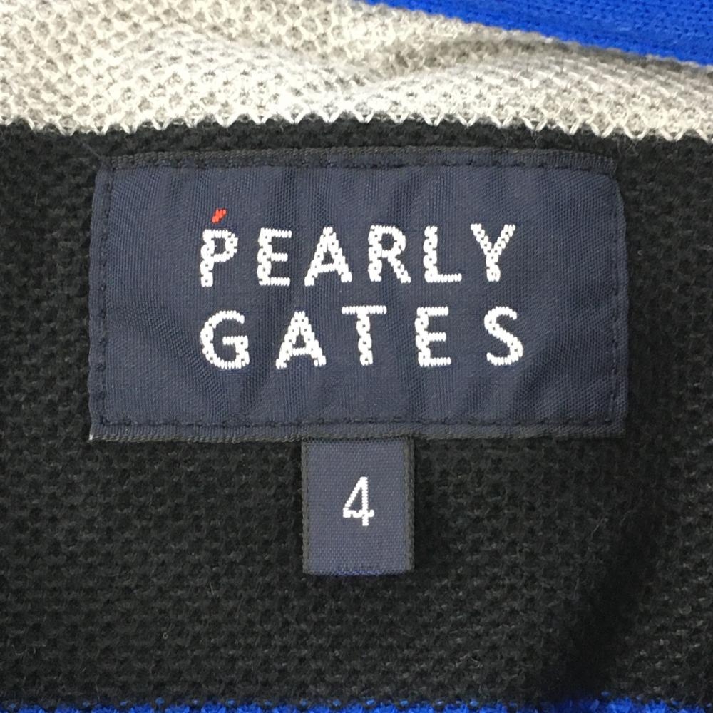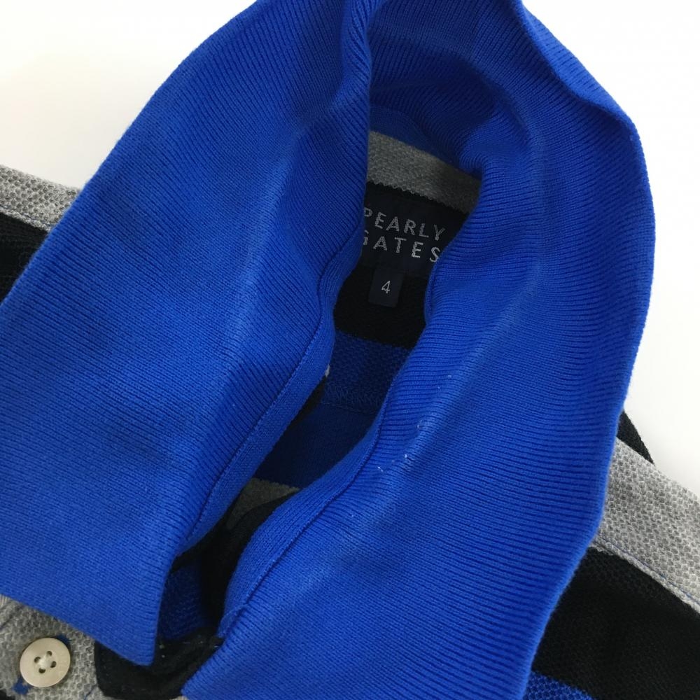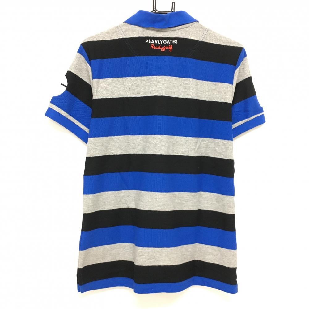 パーリーゲイツ 半袖ポロシャツ ブルー×グレー×黒 太ボーダー メンズ 4(M) ゴルフウェア PEARLY GATES