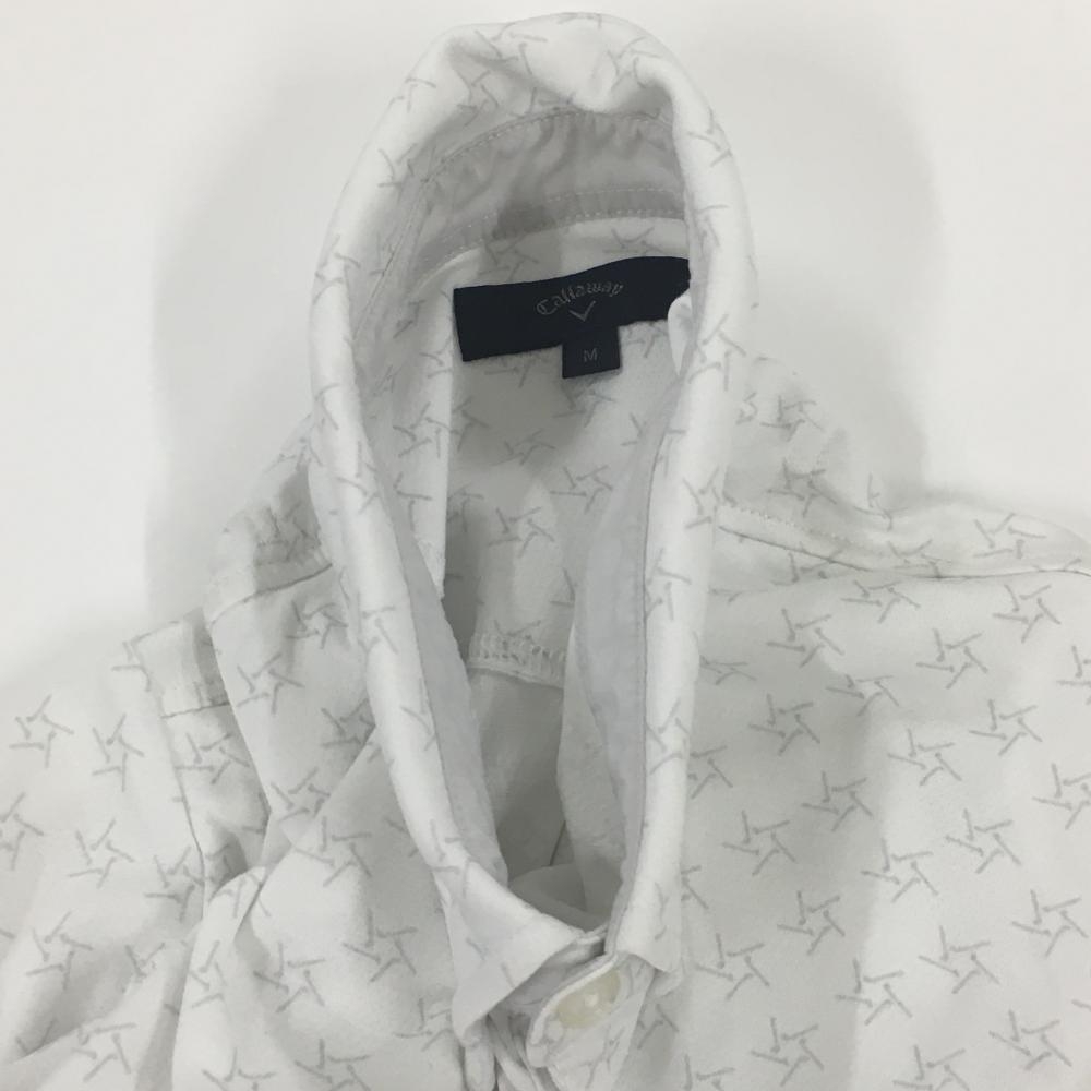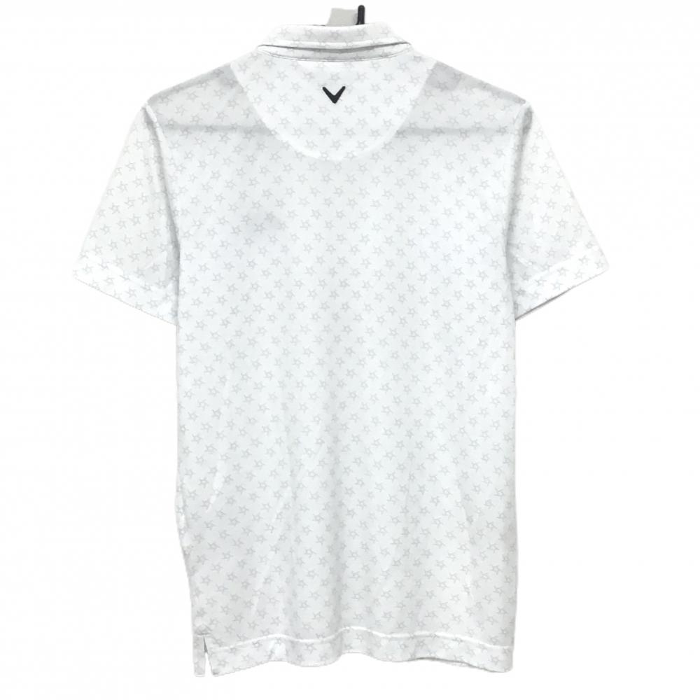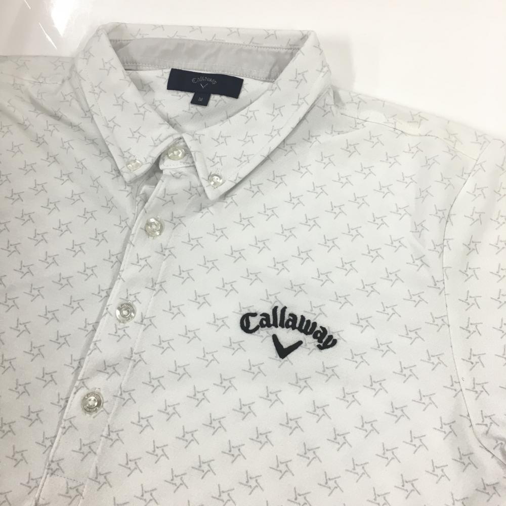 【美品】キャロウェイ 半袖ポロシャツ 白×グレー 星柄風 ボタンダウン ネック薄汚れ メンズ M ゴルフウェア Callaway