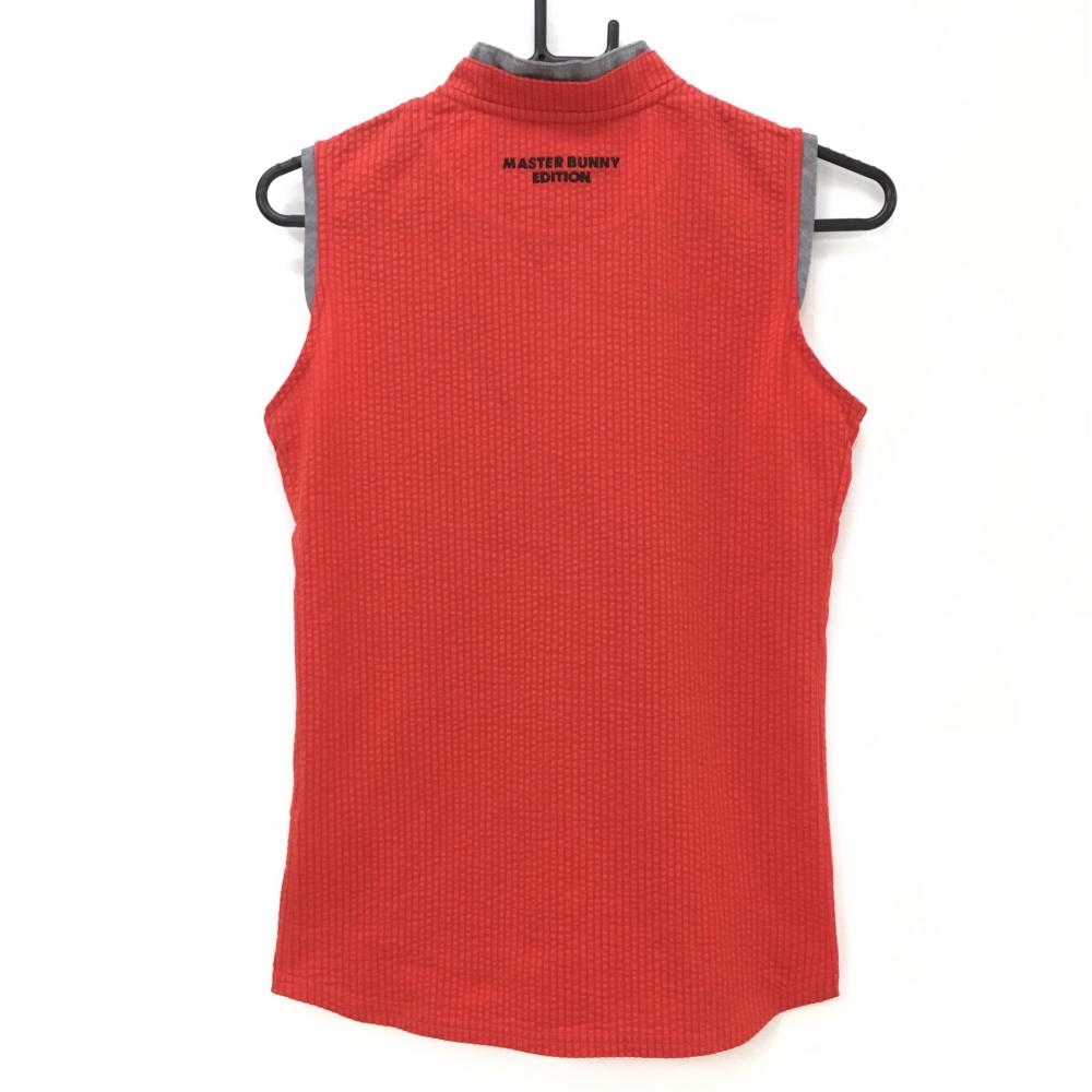 【超美品】マスターバニー ノースリーブポロシャツ レッド スタンドカラー ロゴ黒 レディース 0(S) ゴルフウェア MASTER BUNNY EDITION