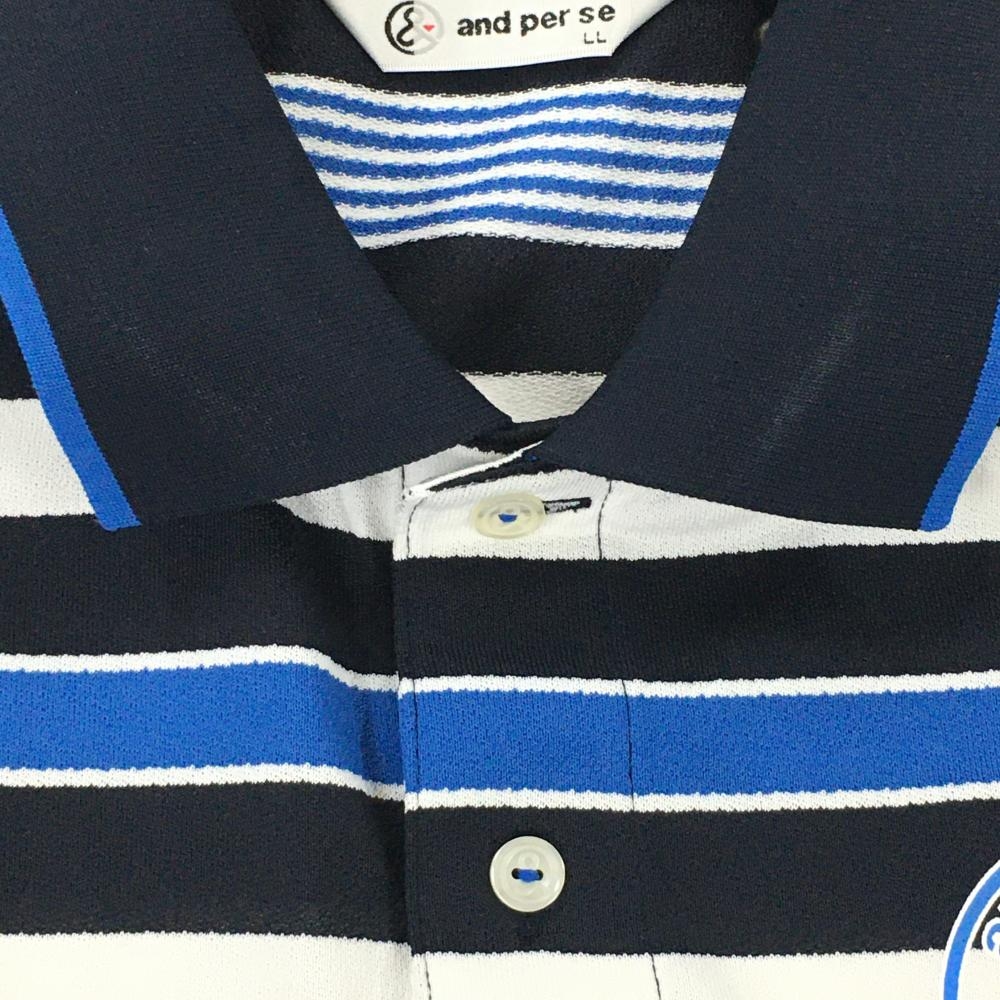 アンパスィ 半袖ポロシャツ ネイビー×白×ブルー ボーダー メンズ LL ゴルフウェア and per se