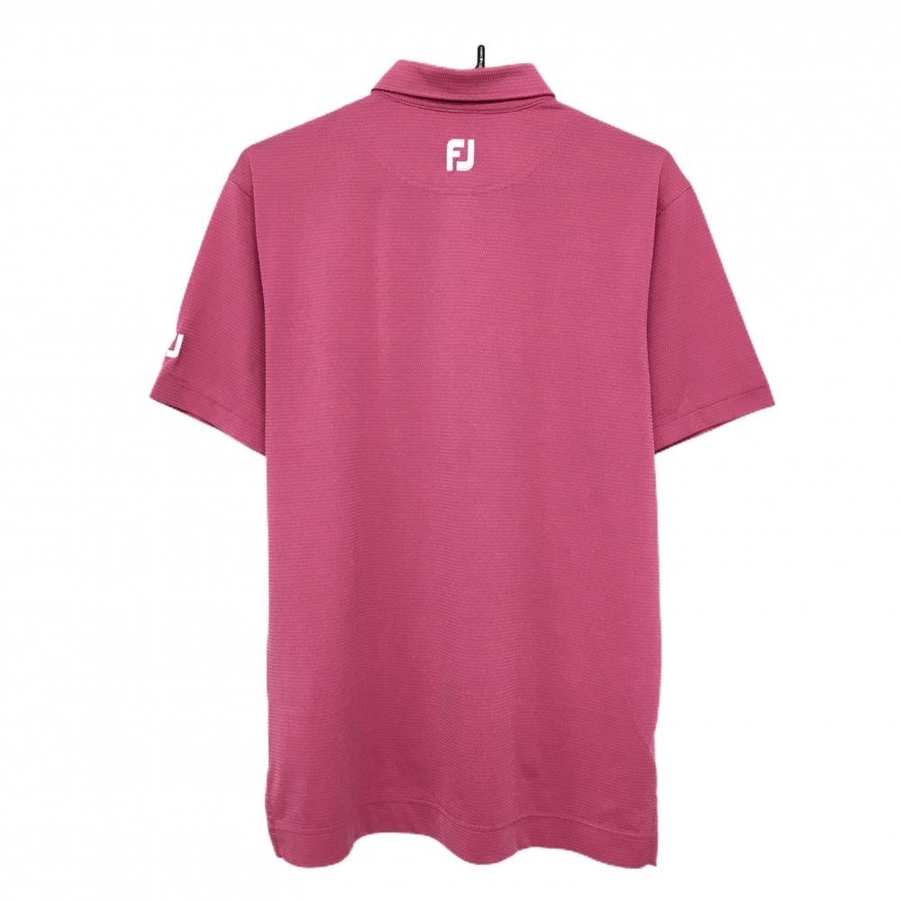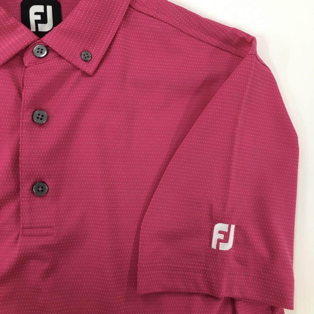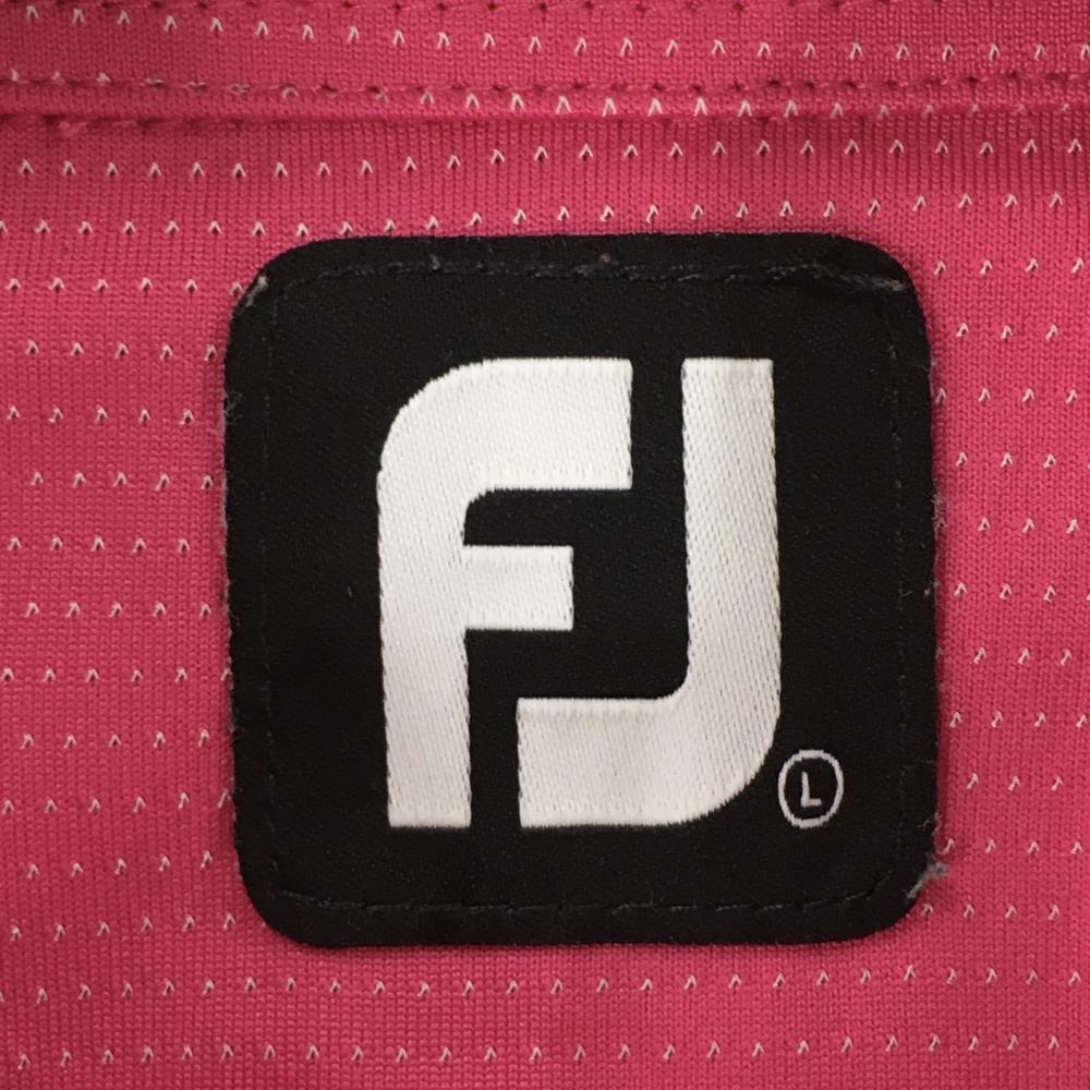 【美品】フットジョイ 半袖ポロシャツ ピンク×白 ボタンダウン ボーダー風 メンズ L ゴルフウェア FootJoy