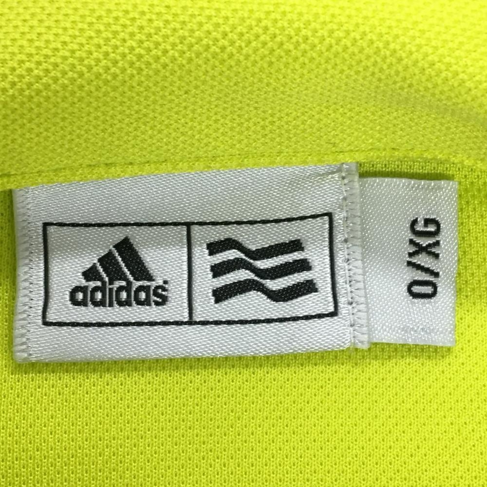 【美品】アディダス 半袖ポロシャツ グリーンイエロー 斜め3ライン メンズ O/XG ゴルフウェア adidas