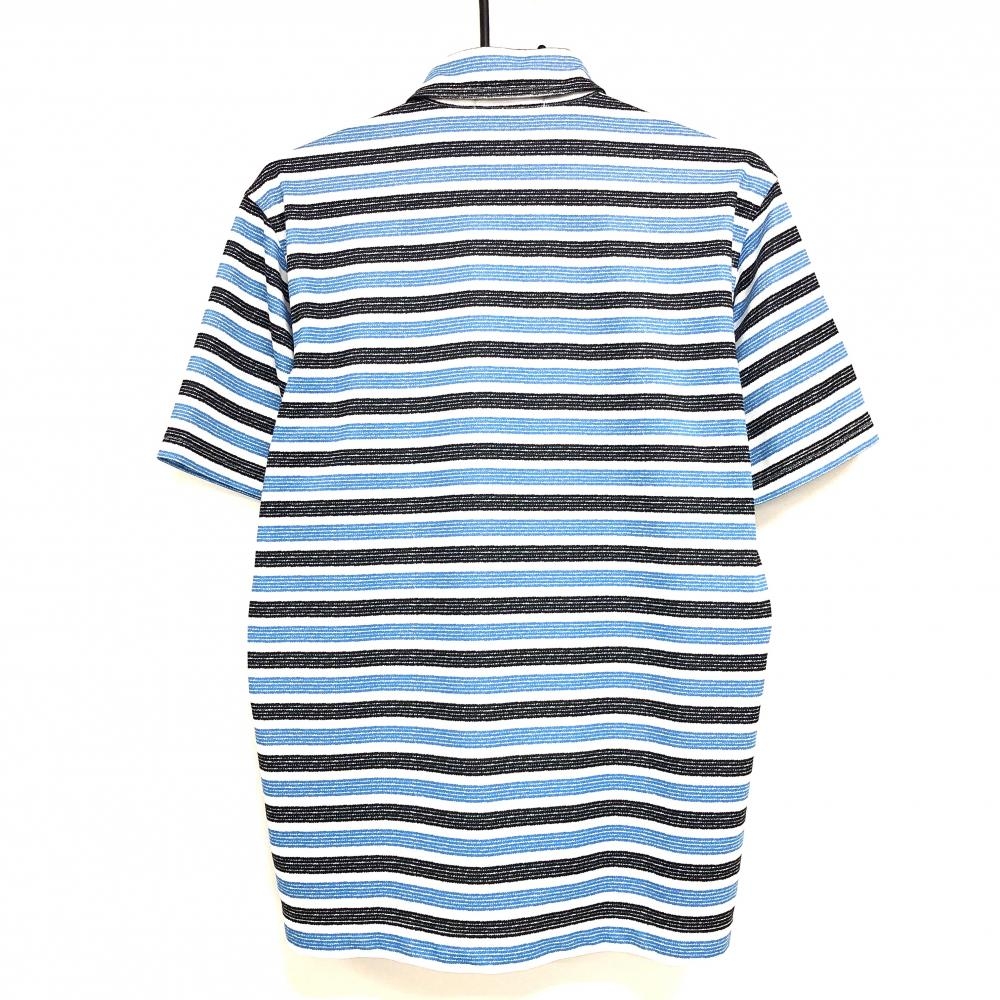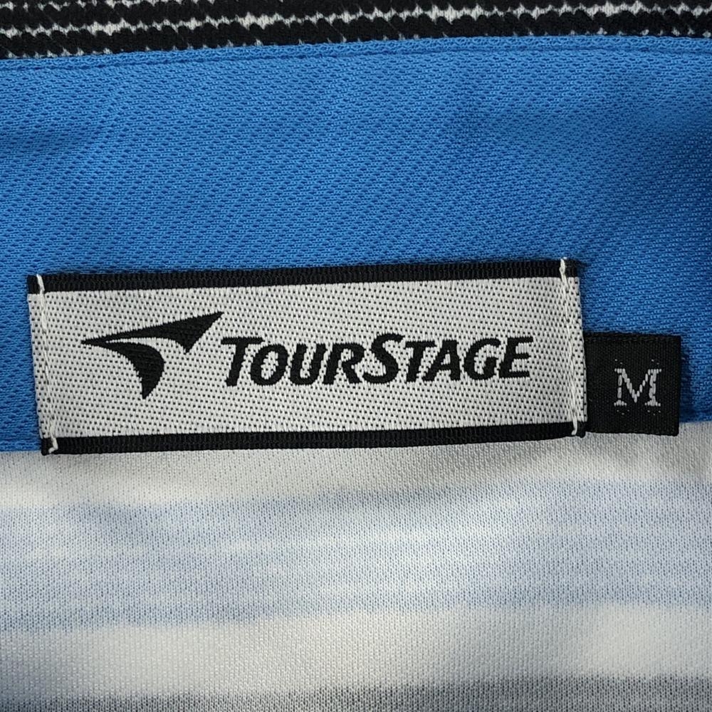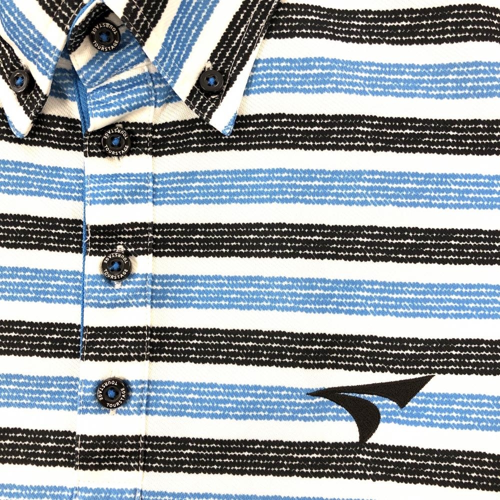 【美品】ツアーステージ 半袖ポロシャツ ブルー×黒×白 ボーダー ボタンダウン メンズ M ゴルフウェア TOURSTAGE