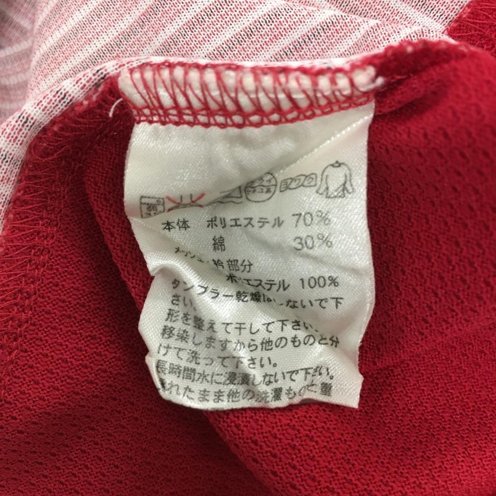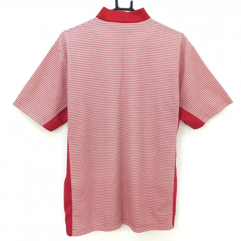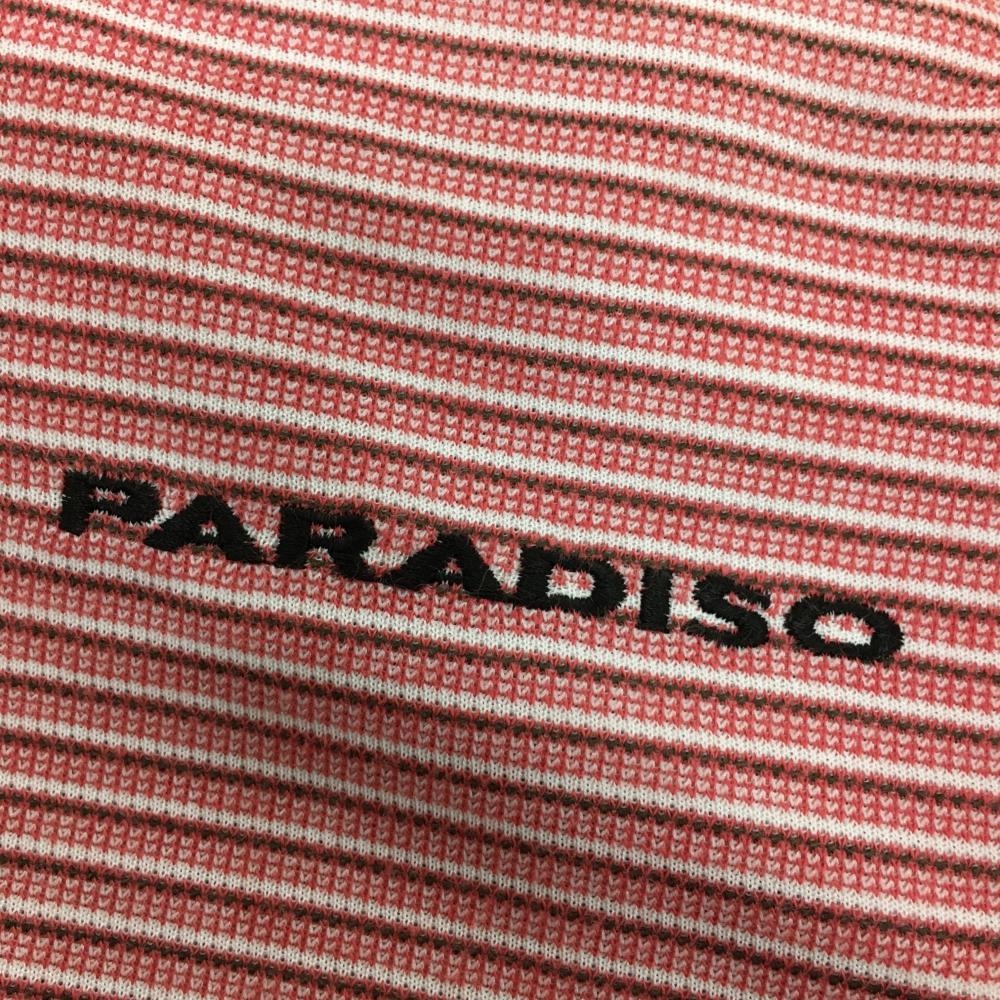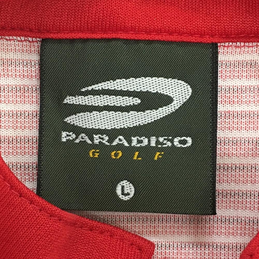 【超美品】パラディーゾ 半袖ハイネックシャツ レッド×白 ボーダー ハーフジップ サイド切替 メンズ L ゴルフウェア Paradiso
