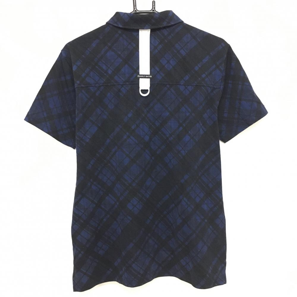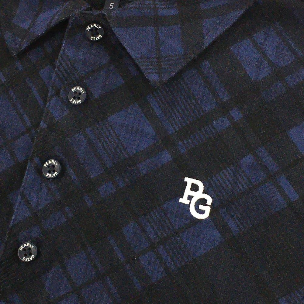 【超美品】パーリーゲイツ 半袖ポロシャツ ネイビー×黒 チェック メンズ 5(L) ゴルフウェア 2024年モデル PEARLY GATES