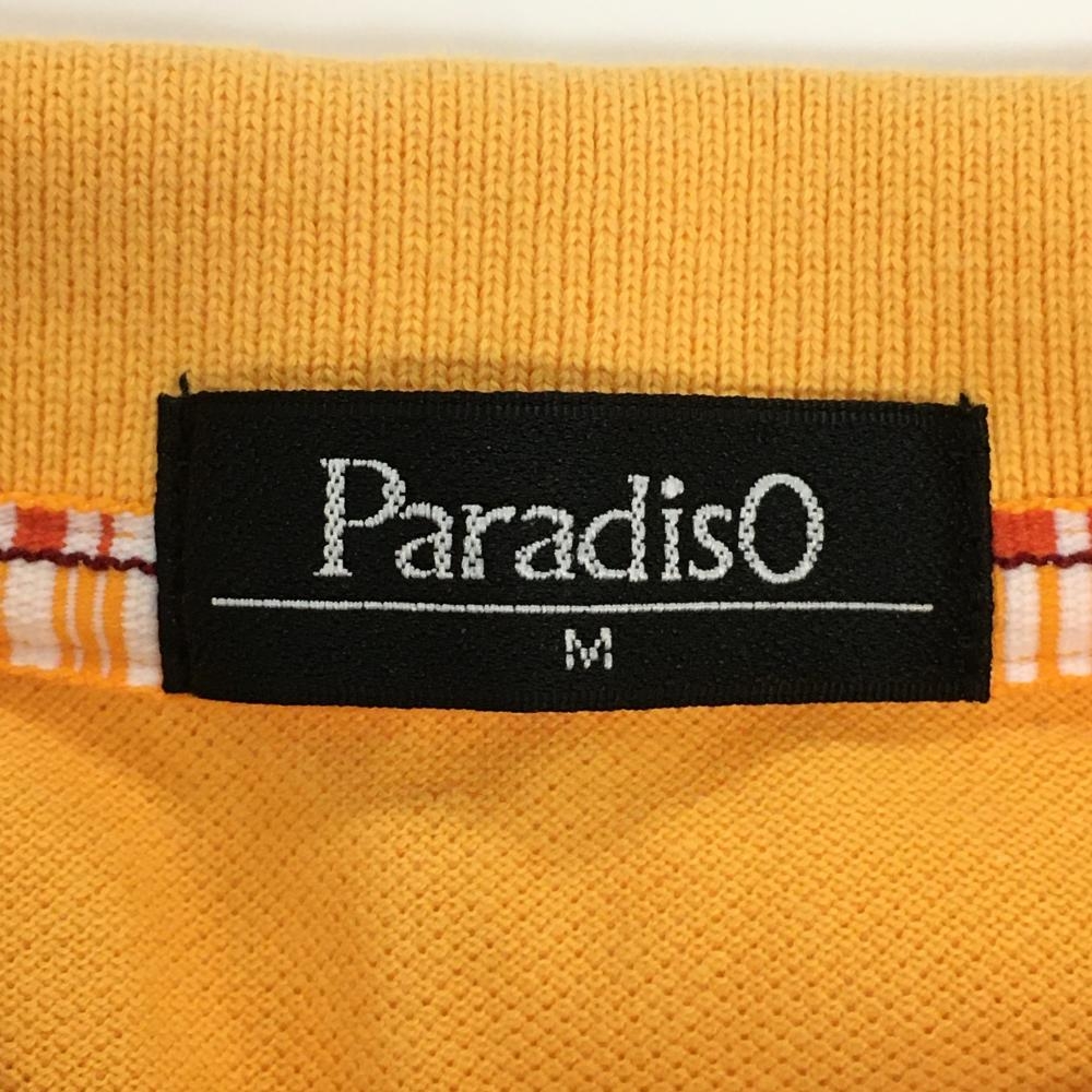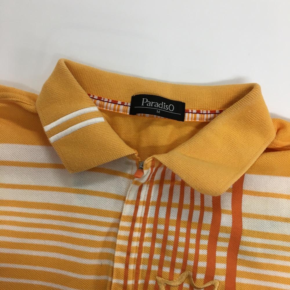 パラディーゾ 半袖ポロシャツ オレンジ系×白 ハーフジップ ライン メンズ M ゴルフウェア Paradiso