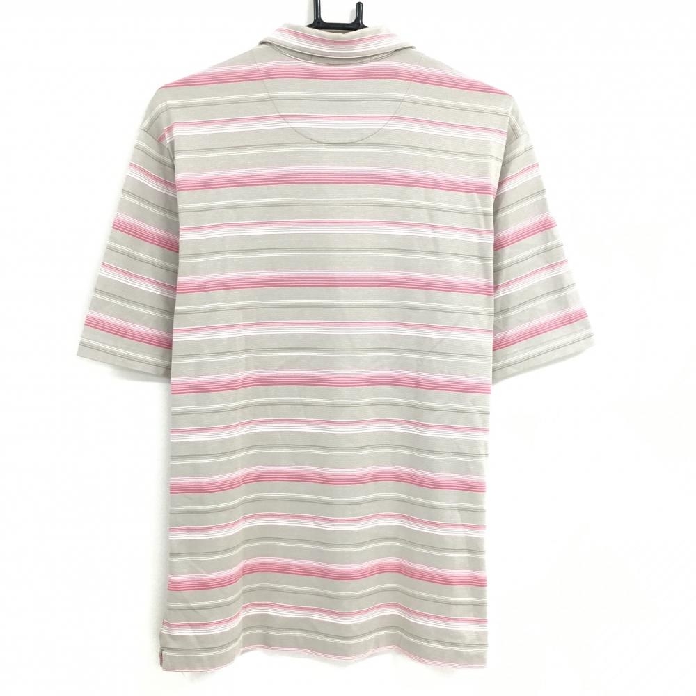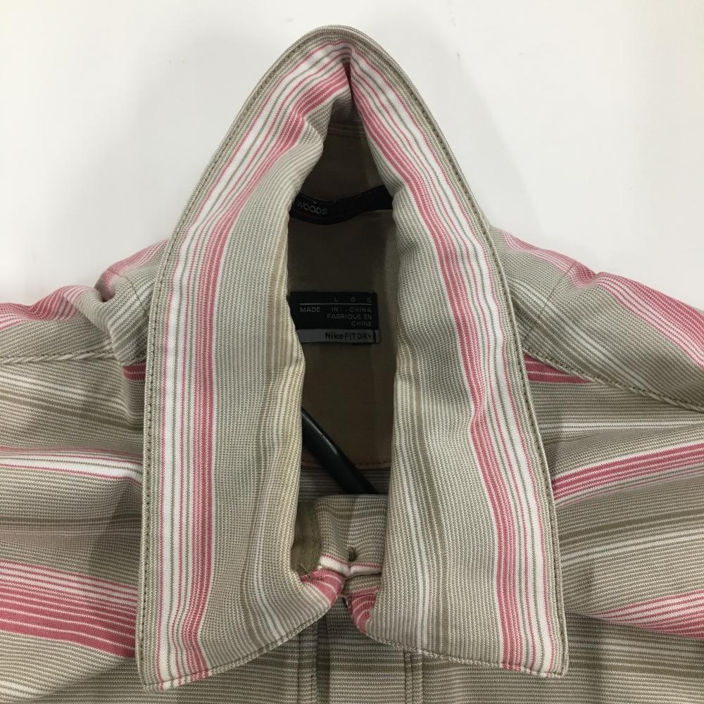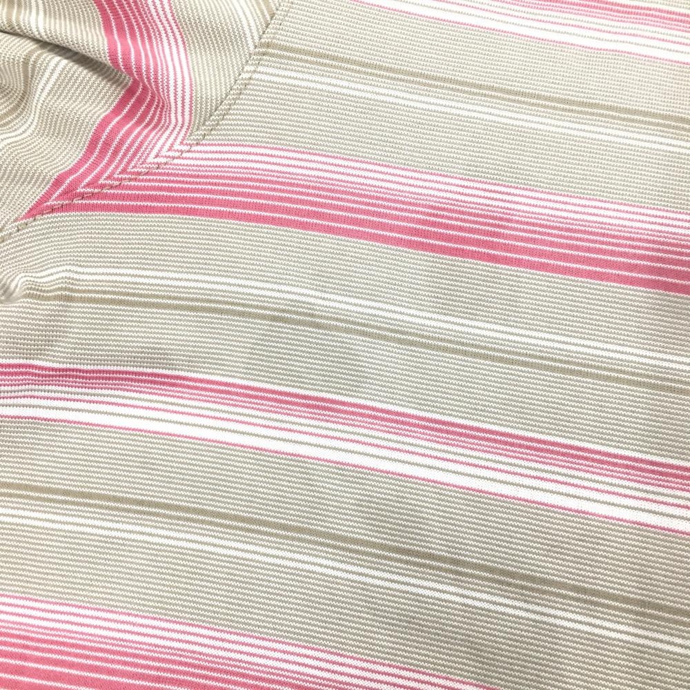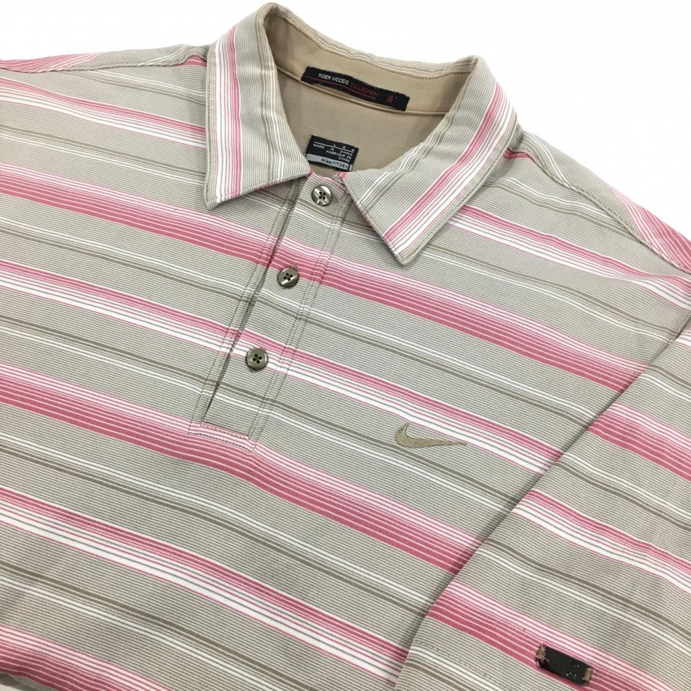 ナイキ タイガーウッズコレクション 半袖ポロシャツ ベージュ系×ピンク ボーダー メンズ LGG ゴルフウェア NIKE