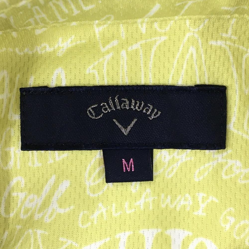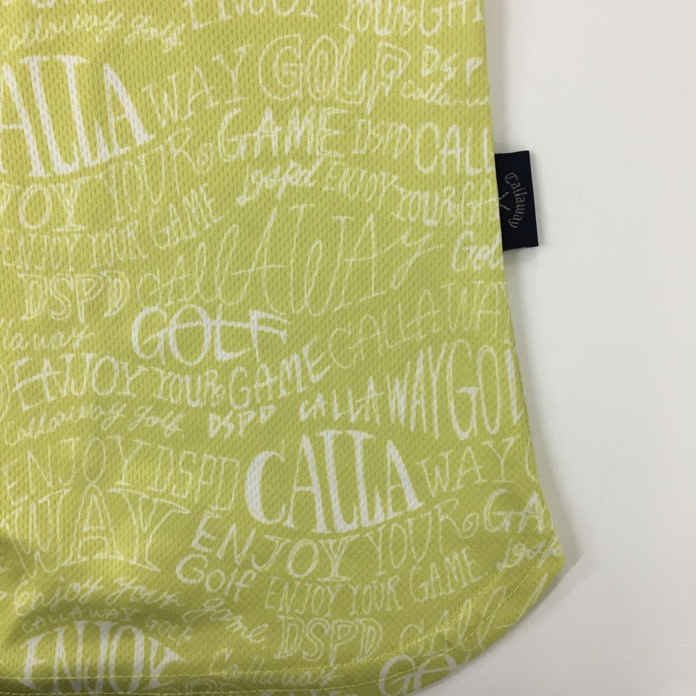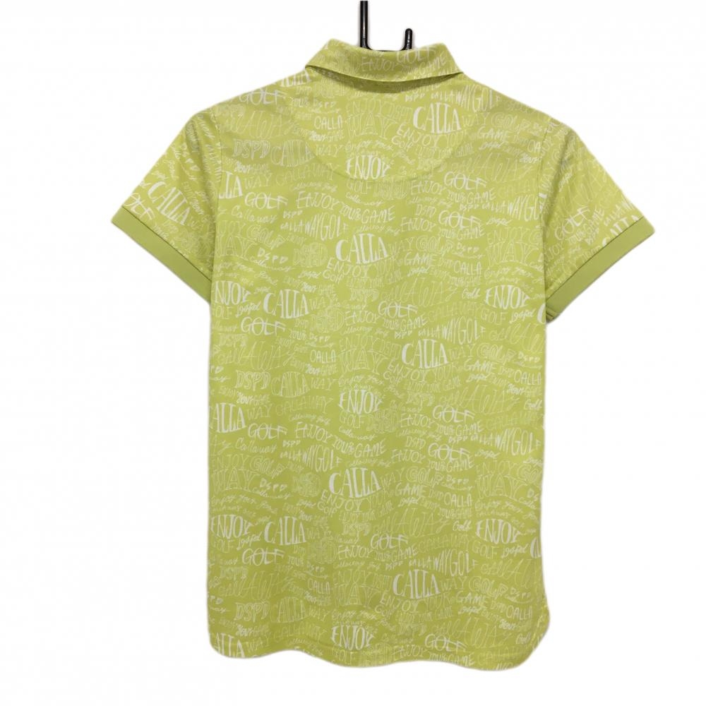 キャロウェイ 半袖ポロシャツ ライムグリーン×白 英字総柄 レディース M ゴルフウェア Callaway